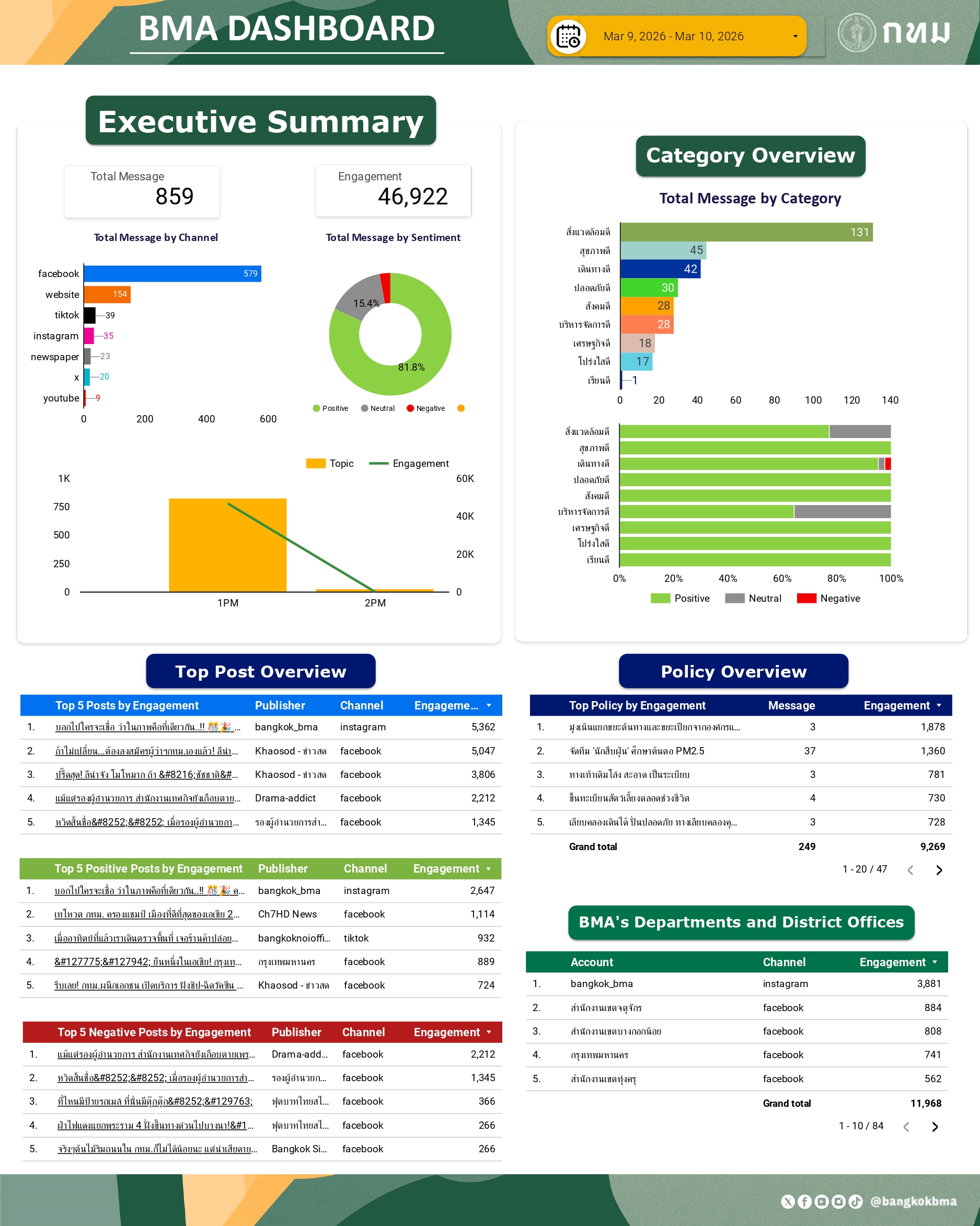 ภาพรวมการกล่าวถึงกรุงเทพมหานครในสื่อออนไลน์ วันที่ 10 มี.ค. 69