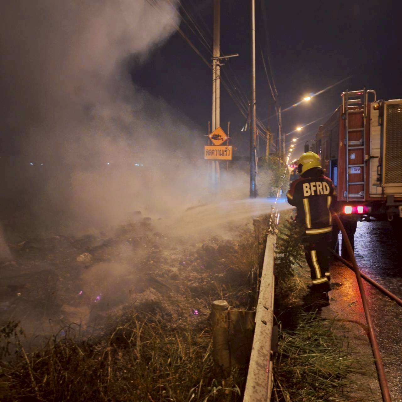 สถานีดับเพลิงกู้ภัยสายไหม ระงับเหตุ เพลิงไหม้หญ้าและขยะ ใช้น้ำทำการดับไฟ พื้นที่ประมาณ 100 ตารางวา เพลิงสงบ สถานที่เกิดเหตุ : หมู่บ้านแกรนด์ดิโอถนนกาญจนาภิเษก แขวงท่าแร้ง เขตบางเขน กทม.