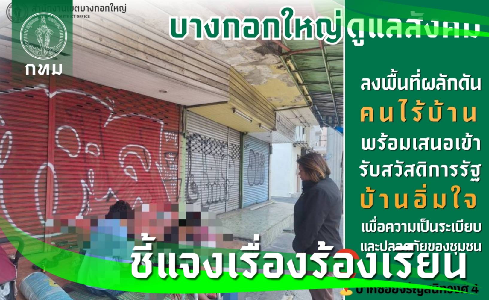 นายเกียรติวิสุทธิ์ เพ็ชรหมื่นไวย ผู้อำนวยการเขตบางกอกใหญ่ กทม. กล่าวกรณีมีข้อร้องเรียนพบคนไร้บ้านเข้ามาหลับนอนบริเวณหน้าอาคารร้างบริเวณปากซอยจรัญสนิทวงศ์ 4 ว่า สำนักงานเขตฯ ได้จัดเจ้าหน้าที่ฝ่ายพัฒนาชุมชนและสวัสดิการสังคมร่วมกับฝ่ายรักษาความสะอาดและสวนสาธารณะลงพื้นที่ตรวจสอบข้อร้องเรียนดังกล่าว พร้อมพูดคุยกับบุคคลที่ประสบปัญหาและเสนอแนวทางการช่วยเหลือ โดยแนะนำการเข้ารับการคุ้มครองตามพระราชบัญญัติการคุ้มครองคนไร้ที่พึ่ง พ.ศ. 2557 รวมถึงประชาสัมพันธ์โครงการ “บ้านอิ่มใจ” ของ กทม. ซึ่งเป็นที่พักพิงชั่วคราวและศูนย์ฟื้นฟูศักยภาพสำหรับคนไร้บ้านและผู้ไร้ที่พึ่ง อย่างไรก็ตาม บุคคลดังกล่าวได้ปฏิเสธการเข้ารับการคุ้มครอง โดยการช่วยเหลือต้องเป็นไปตามความสมัครใจและความยินยอมของผู้ประสบปัญหาสำหรับโครงการ “บ้านอิ่มใจ” ของ กทม. ตั้งอยู่บริเวณอาคารประปาแม้นศรีเก่า ย่านถนนบำรุงเมือง จัดตั้งขึ้นเพื่อเป็นพื้นที่ปลอดภัย (Safe Zone) สำหรับคนไร้บ้าน โดยมีสิ่งอำนวยความสะดวกพื้นฐาน เช่น ห้องน้ำและพื้นที่อาบน้ำที่สะอาด พร้อมทั้งจัดกิจกรรมฟื้นฟูและฝึกทักษะอาชีพ เพื่อช่วยให้ผู้เข้าพักสามารถตั้งหลักและกลับคืนสู่สังคมได้อย่างยั่งยืน ภายใต้แนวคิด “Housing First” ที่มุ่งเน้นให้ที่อยู่อาศัยเป็นปัจจัยแรกในการฟื้นฟูคุณภาพชีวิต โดยผู้ที่ประสงค์เข้าพักในโครงการ “บ้านอิ่มใจ” จะต้องมีอายุ 18 ปีขึ้นไป สามารถช่วยเหลือตนเองได้ หากมีโรคประจำตัวต้องสามารถควบคุมอาการได้และสามารถปฏิบัติตามระเบียบของสถานที่ได้ โดยผู้เข้าพักรายใหม่จะต้องเข้าร่วมกิจกรรมทดลองการเข้าพักเป็นเวลา 7 คืน ประกอบด้วย การบันทึกประวัติส่วนบุคคล การตรวจสุขภาพ การตรวจสอบสิทธิการรักษาพยาบาลและสวัสดิการที่เกี่ยวข้อง รวมถึงการเรียนรู้ทักษะการใช้ชีวิตและการอยู่ร่วมกันในสังคมทั้งนี้ สำนักงานเขตฯ ยังคงติดตามสถานการณ์และพร้อมให้การช่วยเหลือกลุ่มผู้ประสบปัญหาทางสังคมอย่างต่อเนื่อง เพื่อให้ทุกคนได้รับโอกาสในการเข้าถึงสวัสดิการและมีคุณภาพชีวิตที่ดีขึ้นต่อไป