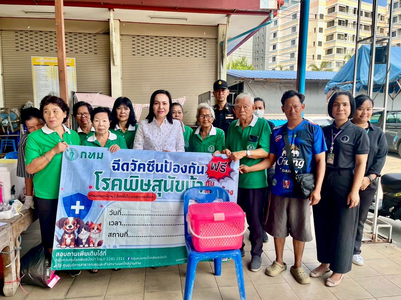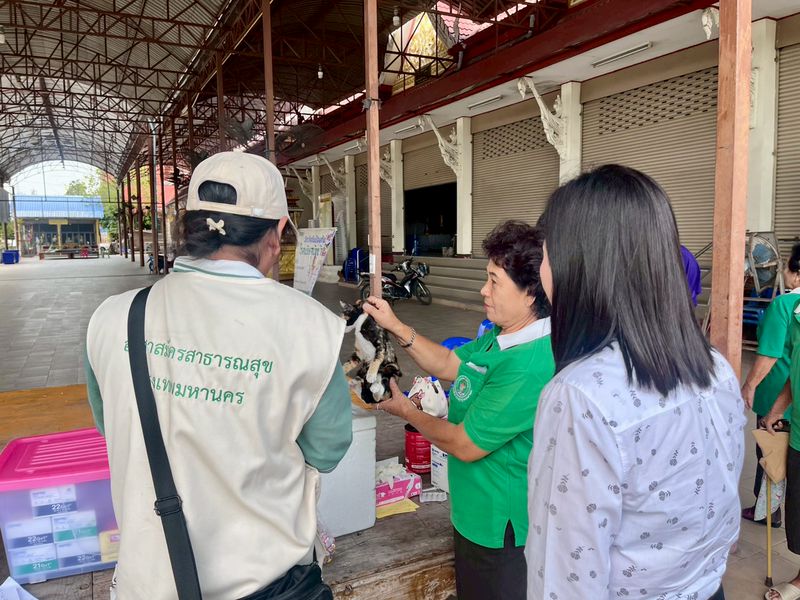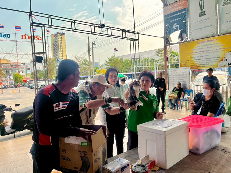 13 มี.ค. 69 นางธราพร อำนวยสาร ผู้อำนวยการเขตภาษีเจริญ นำเจ้าหน้าที่ฝ่ายสิ่งแวดล้อมฯ และเจ้าหน้าที่ฝ่ายเทศกิจ ลงพื้นที่ตรวจเยี่ยมการออกหน่วยเคลื่อนที่ฉีดวัคซีนป้องกันโรคพิษสุนัขบ้าในสัตว์เลี้ยง เพื่อสร้างภูมิคุ้มกันโรคให้กับสุนัขและแมวในพื้นที่ ลดความเสี่ยงการแพร่ระบาดของโรคพิษสุนัขบ้า และสร้างความปลอดภัยให้กับประชาชน ณ ลานวัดรางบัว