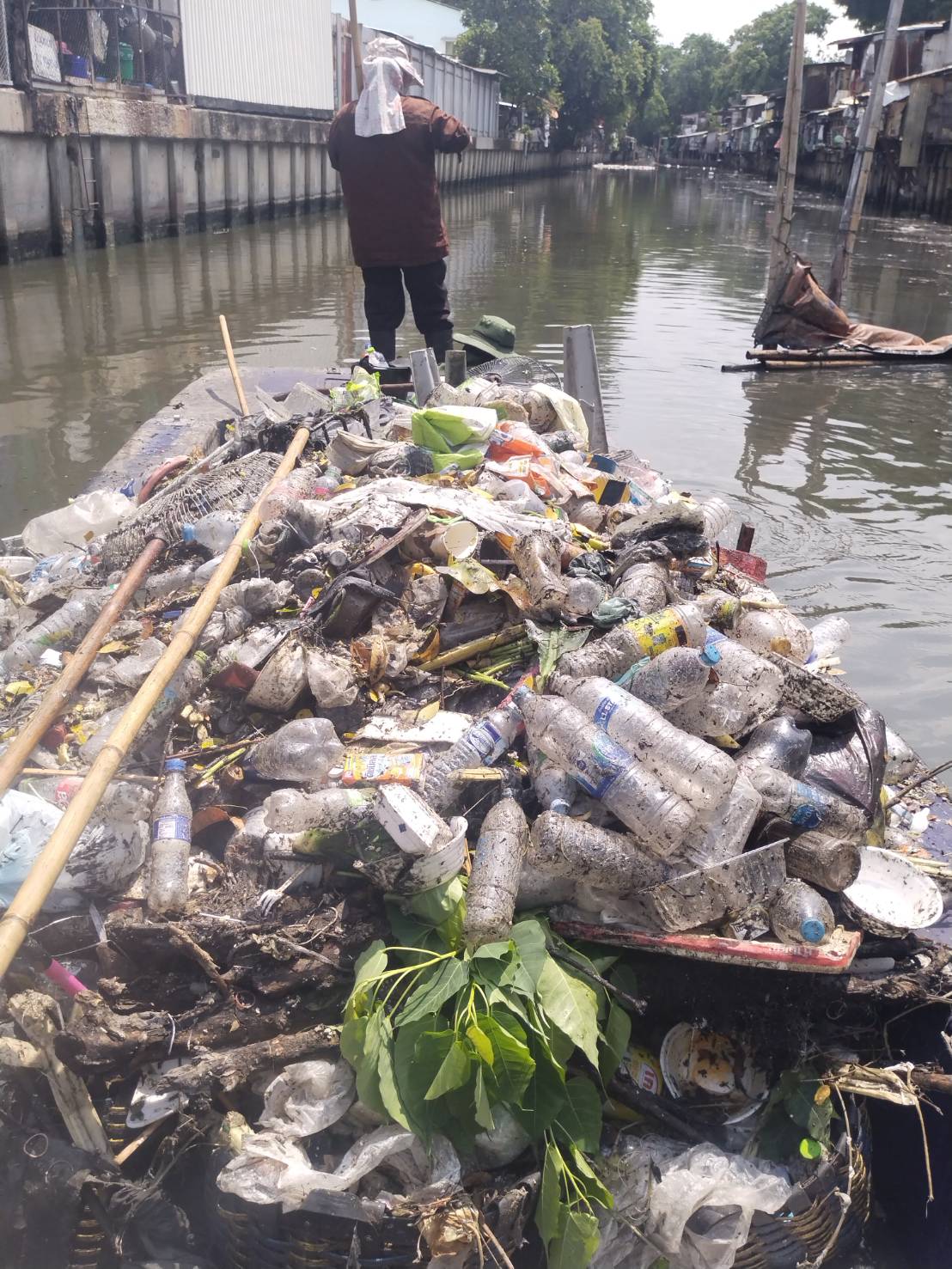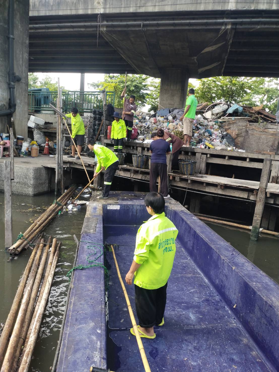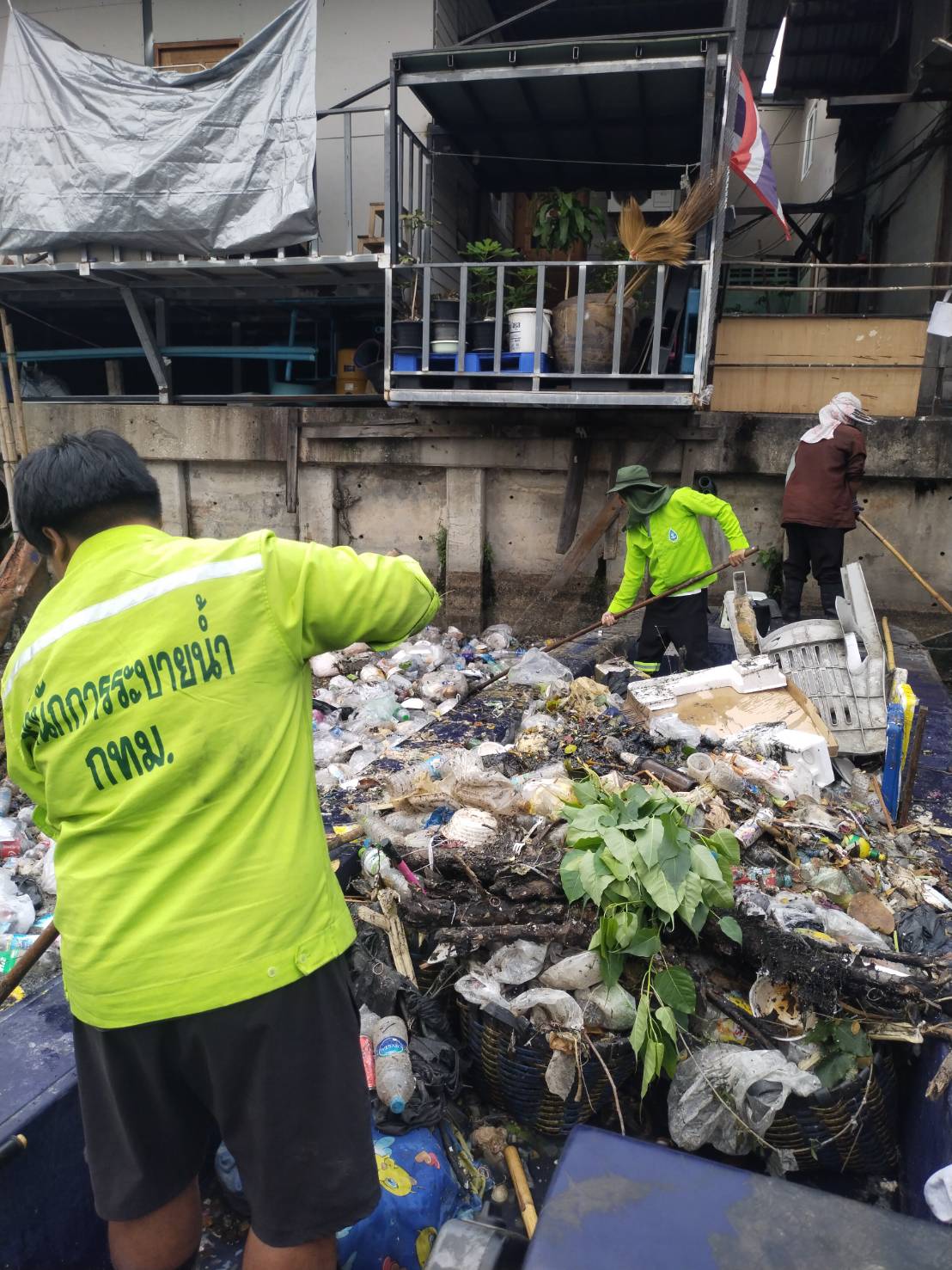 เจ้าหน้าที่ ตักขยะและวัชพืชคลองเตย(คลองหัวลำโพง)ช่วงสถานีสูบน้ำคลองเตยถึงตลาดคลองเตย พื้นที่เขตคลองเตย