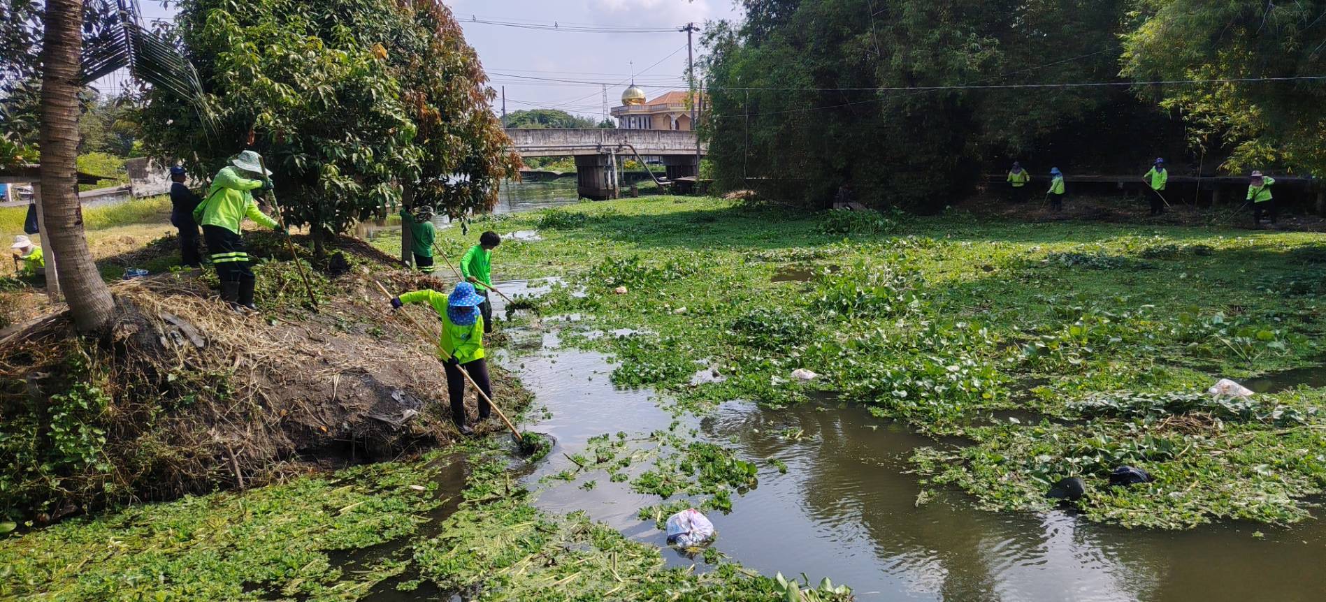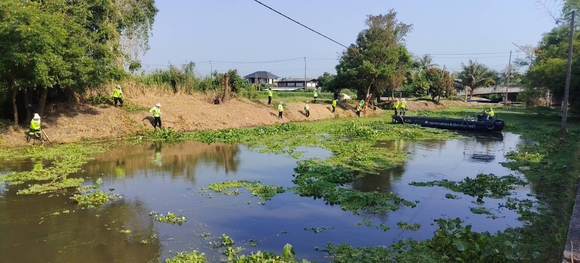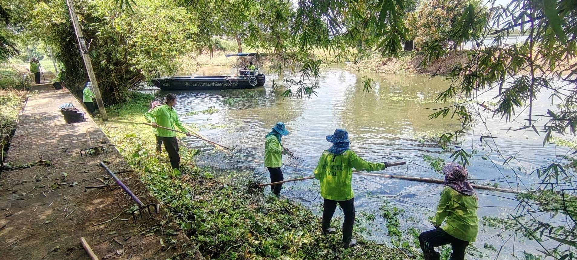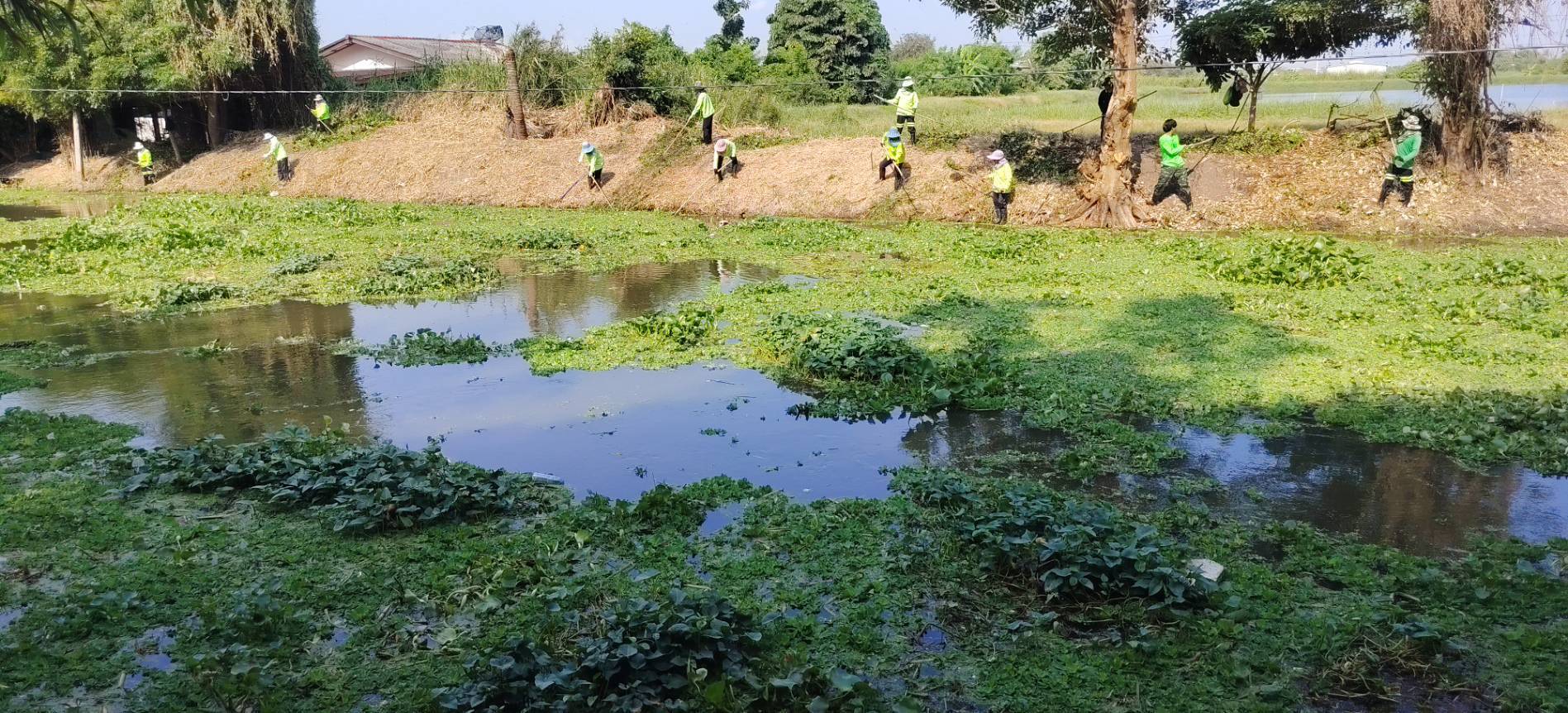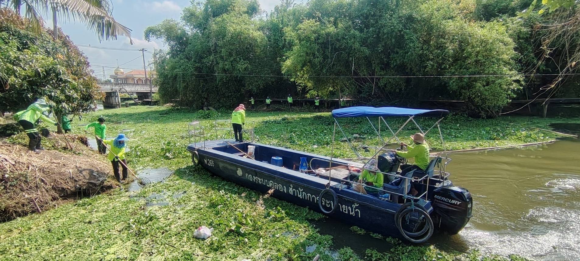 เจ้าหน้าที่ จัดเก็บวัชพืชคลองทับยาว พื้นที่เขตลาดกระบัง
