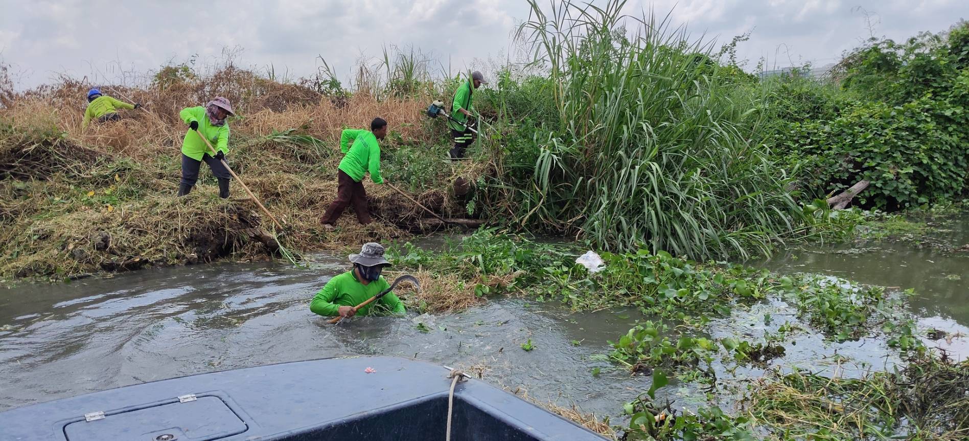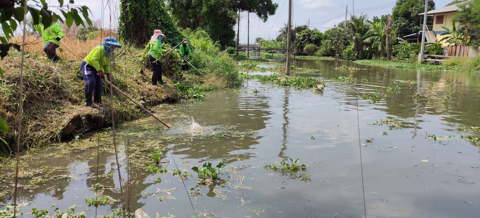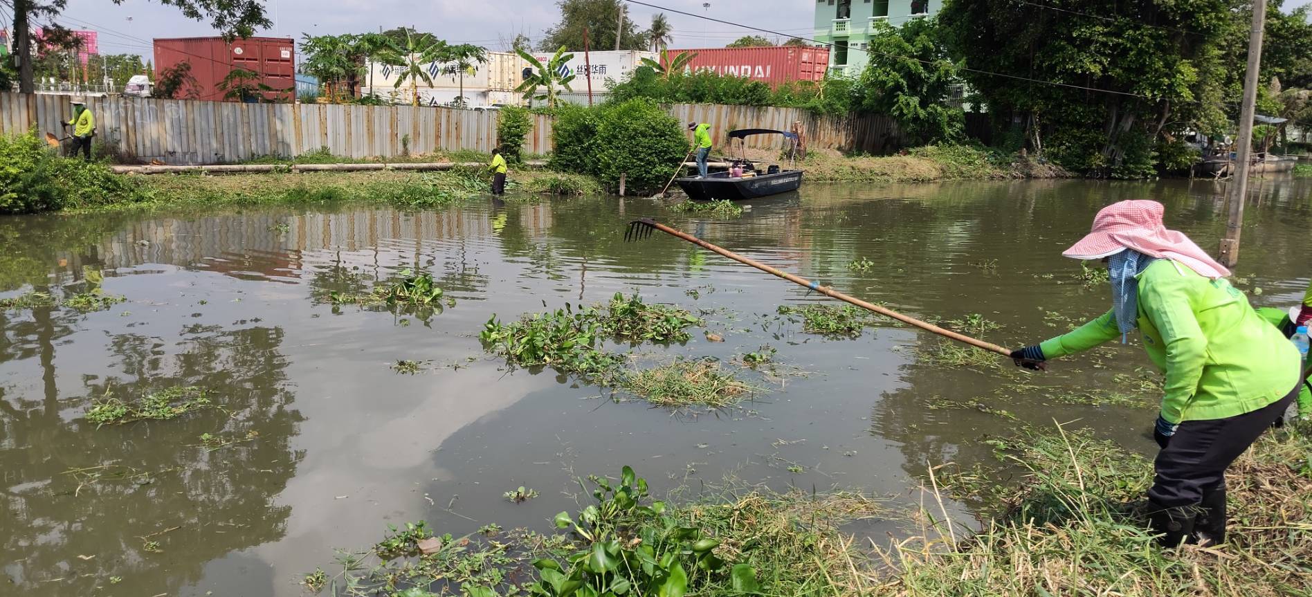 เจ้าหน้าที่ จัดเก็บขยะวัชพืชคลองสี่ประเวศ พื้นที่เขตลาดกระบัง