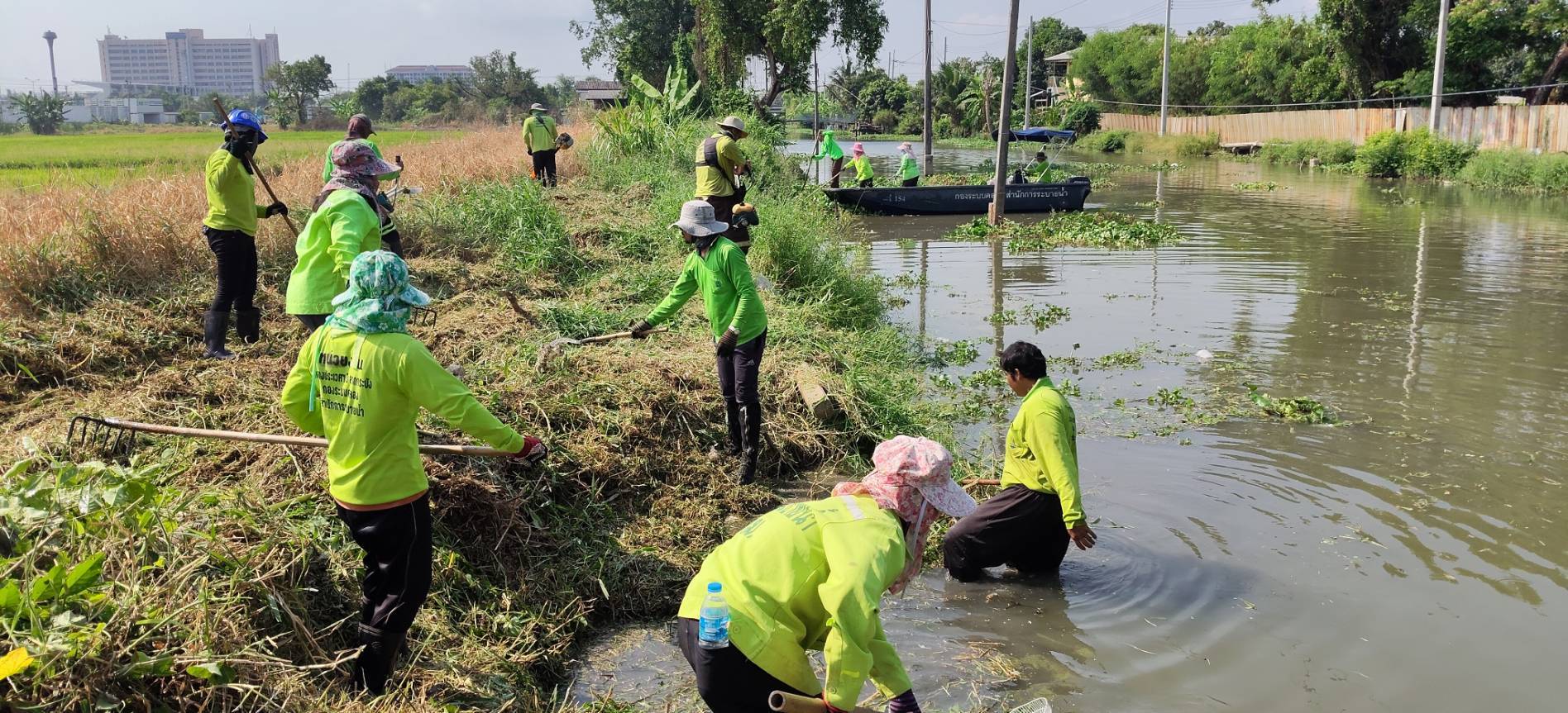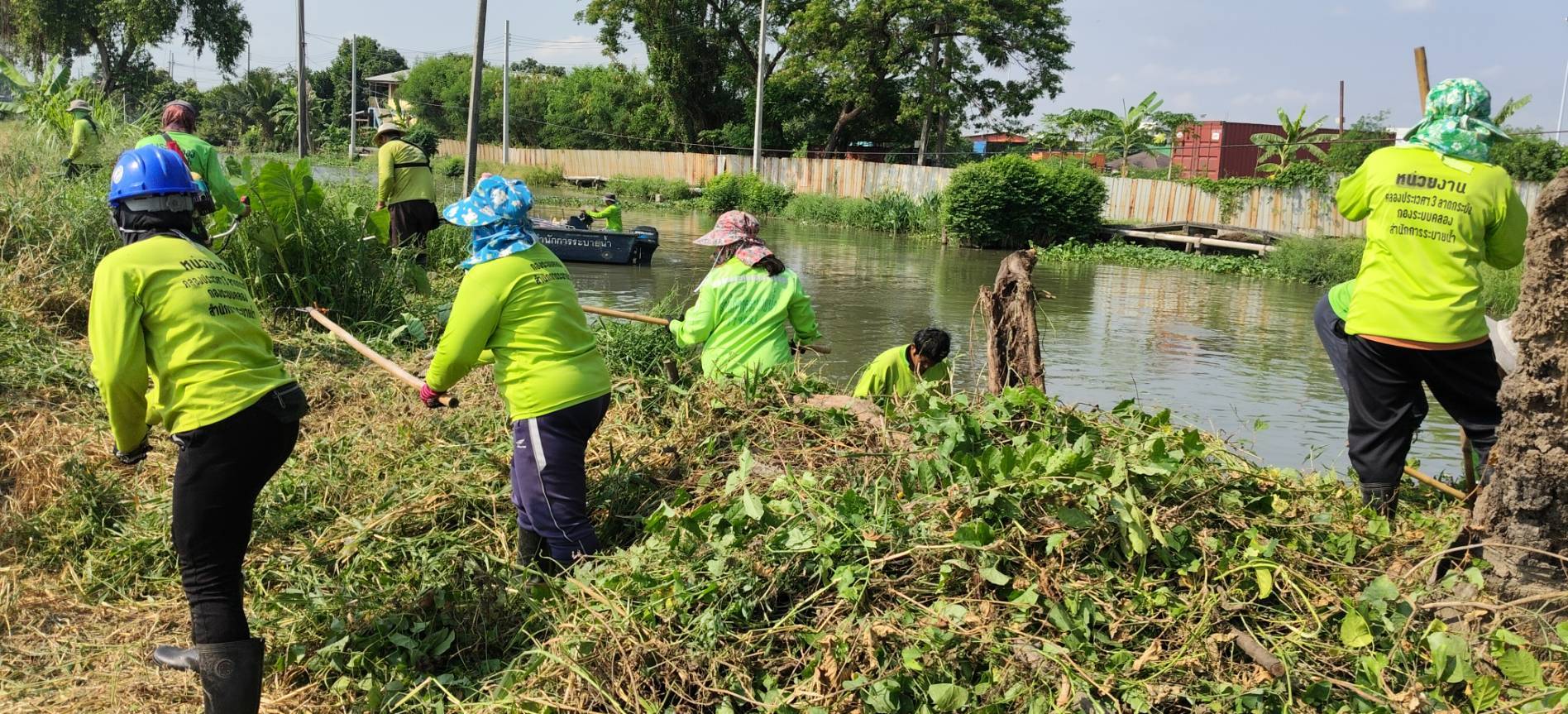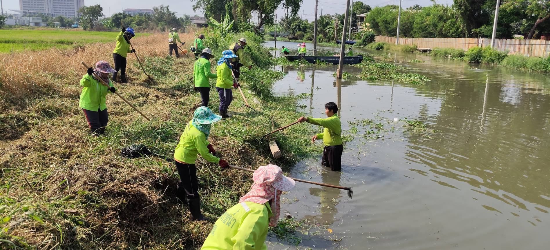 เจ้าหน้าที่ จัดเก็บขยะวัชพืชคลองสี่ประเวศ พื้นที่เขตลาดกระบัง