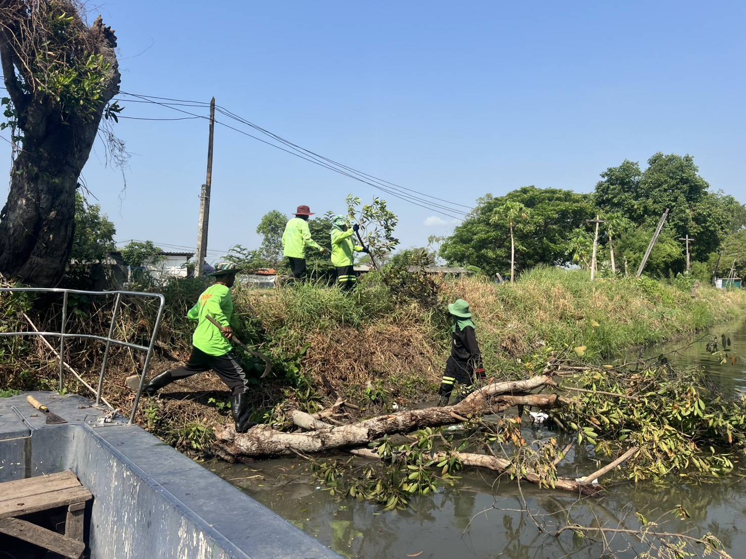 สำนักการระบายน้ำ จัดเก็บขยะและวัชพืชคลองลำหินฝั่งใต้-คลองลำไทร-คลองลำนกแขวก-คลองลำบึงใหญ่ พื้นที่เขตมีนบุรี
