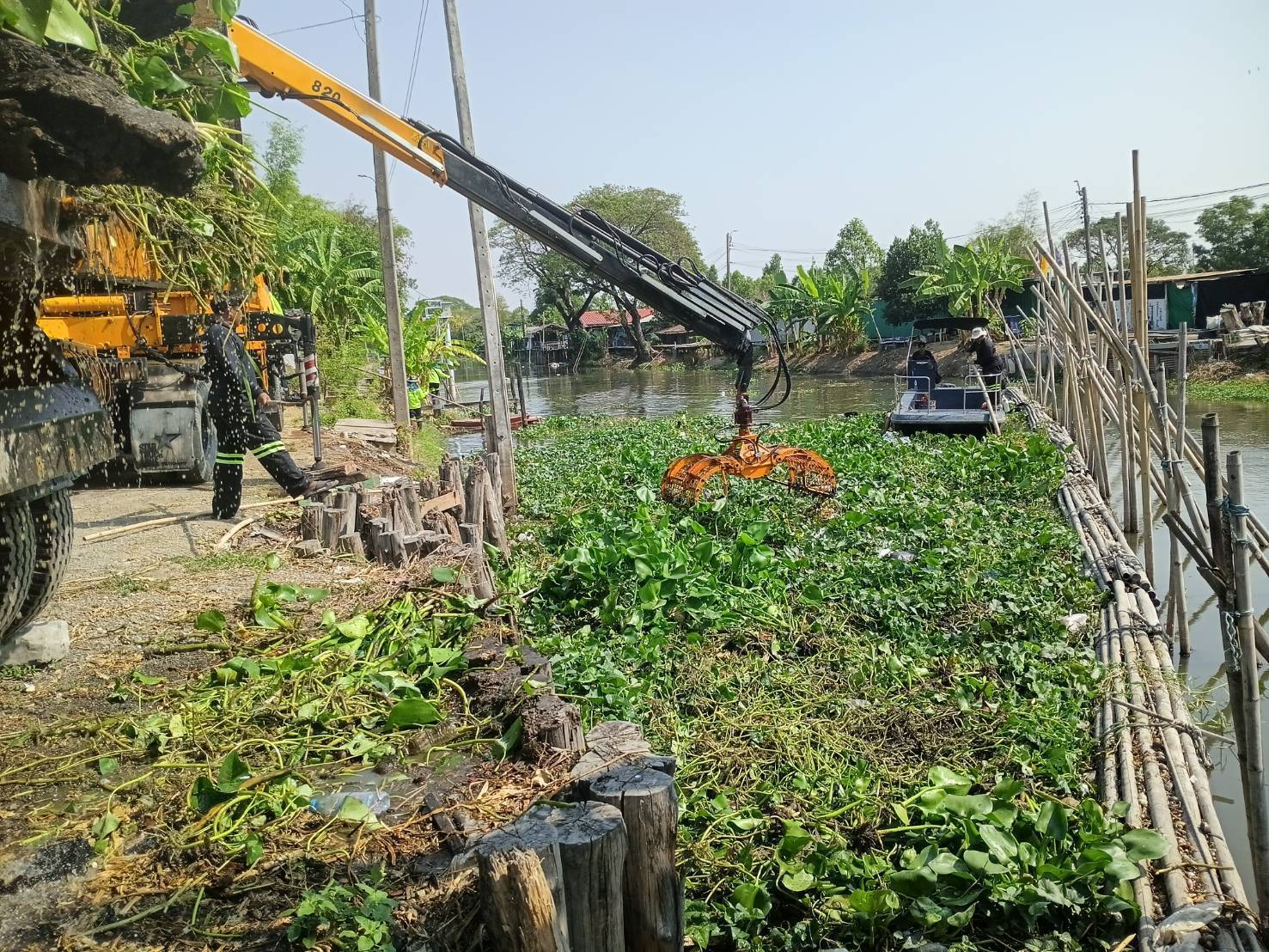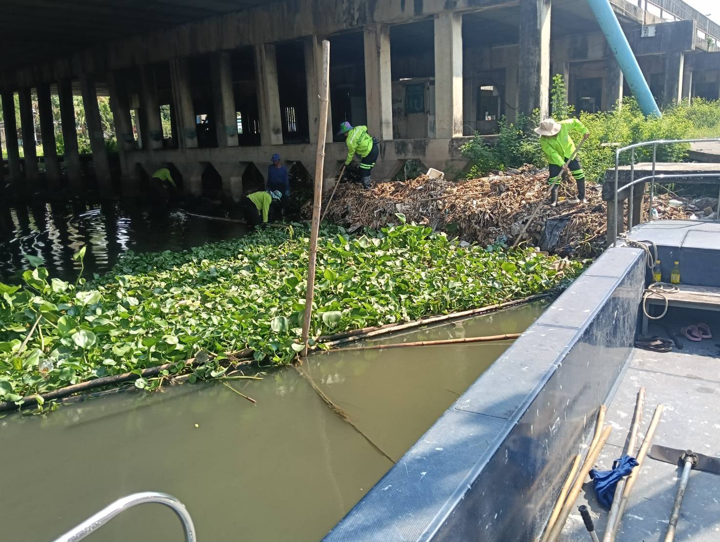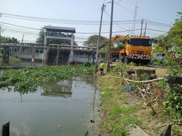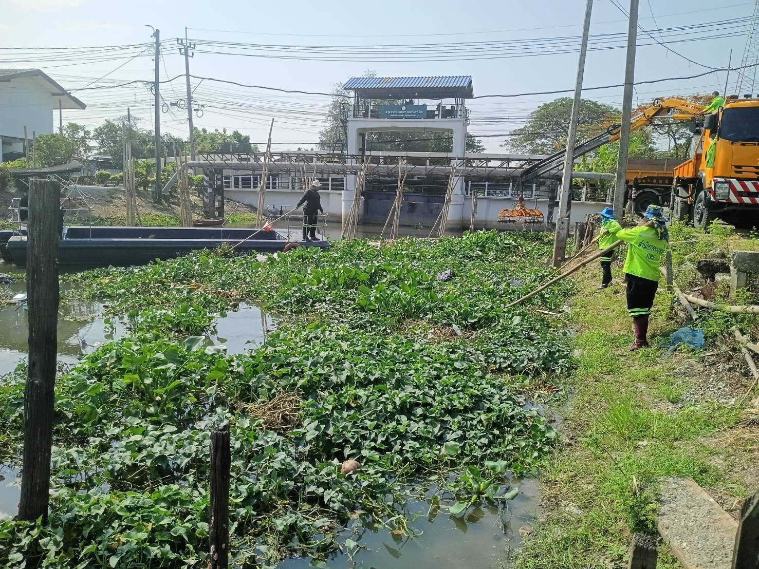 สำนักการระบายน้ำ จัดเก็บขยะและวัชพืช คลองสามวาจากคลองแสนแสบถึงสุดเขตกทม. พื้นที่เขตคลองสามวา