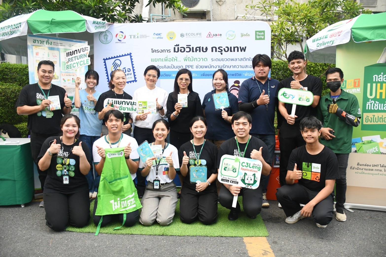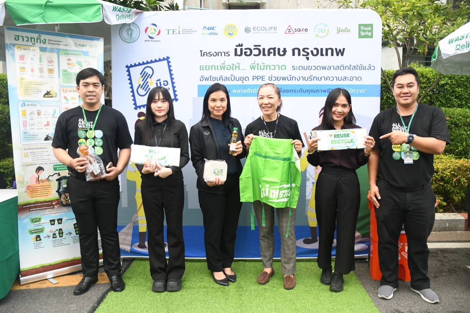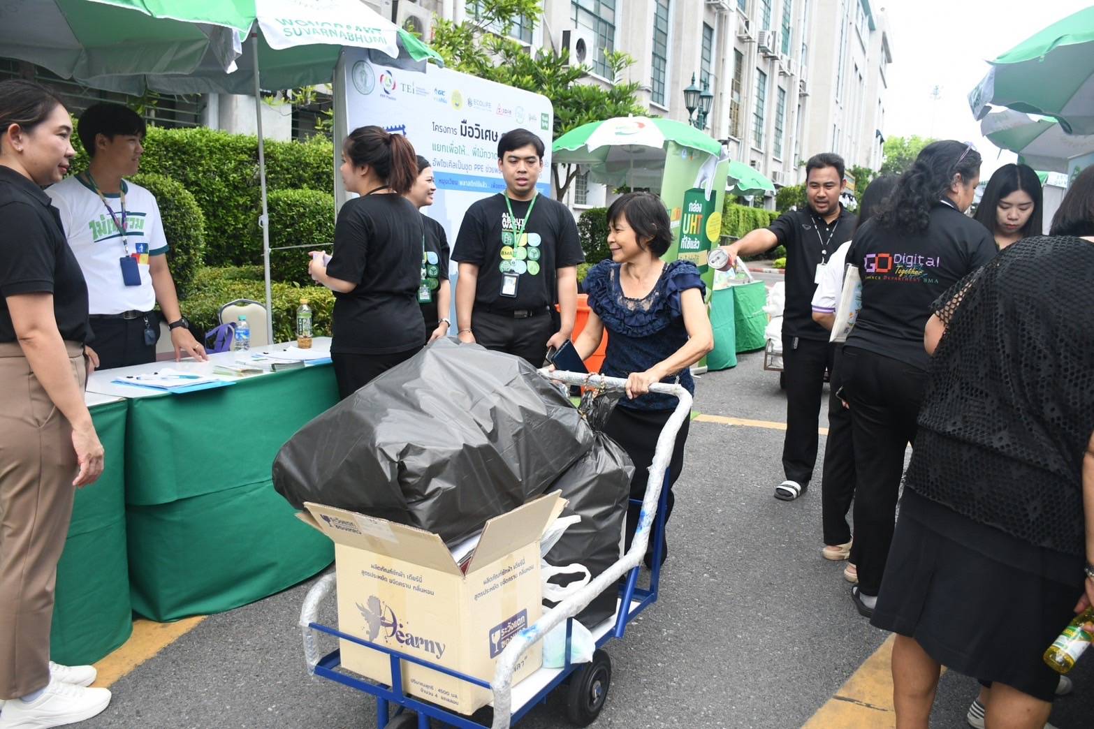 ในการนี้ ที่ปรึกษาฯ ผู้ว่าฯ กทม. ผู้อำนวยการสำนักสิ่งแวดล้อม และรองผู้อำนวยการสำนักสิ่งแวดล้อม ได้เยี่ยมชมบูธกิจกรรมภายในงาน โดยมีภาคีเครือข่าย ร่วมรับมอบและส่งต่อขยะเข้าสู่ระบบการจัดการอย่างถูกต้อง ประกอบด้วย
