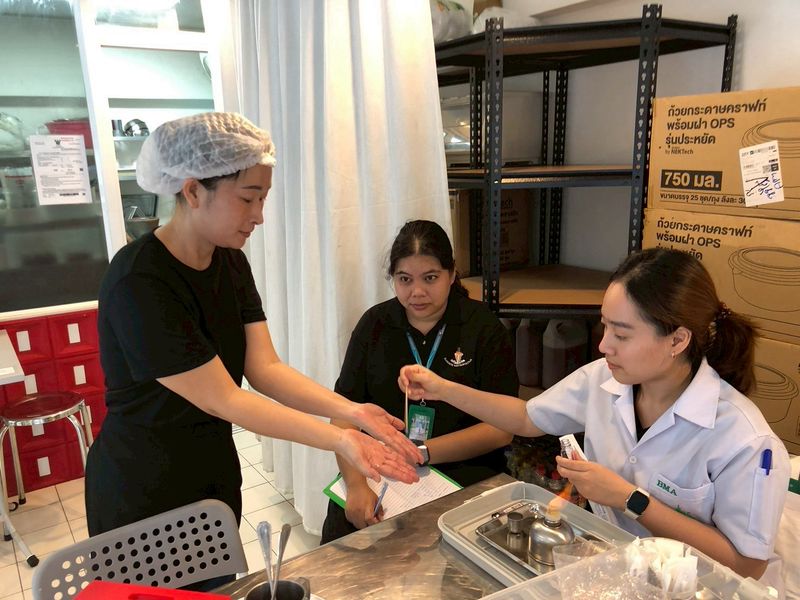 👩🔬🧫ตรวจสอบเฝ้าระวัง เก็บตัวอย่างอาหารเพื่อวิเคราะห์หาสารปนเปื้อนด้วยชุดทดสอบอาหารเบื้องต้น (Food test kit) และตรวจความสะอาดของภาชนะและมือผู้สัมผัสอาหาร