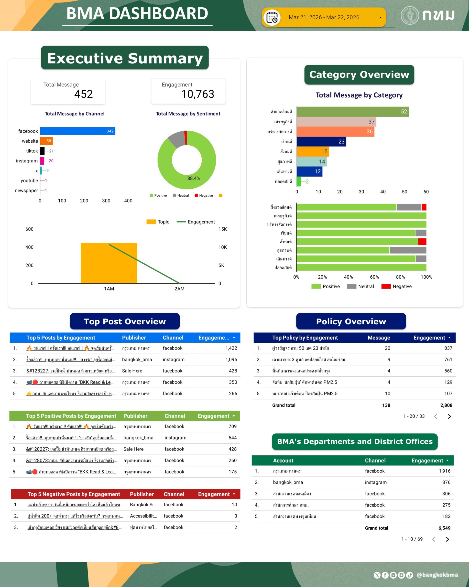 ภาพรวมการกล่าวถึงกรุงเทพมหานครในสื่อออนไลน์ วันที่ 22 มี.ค. 69