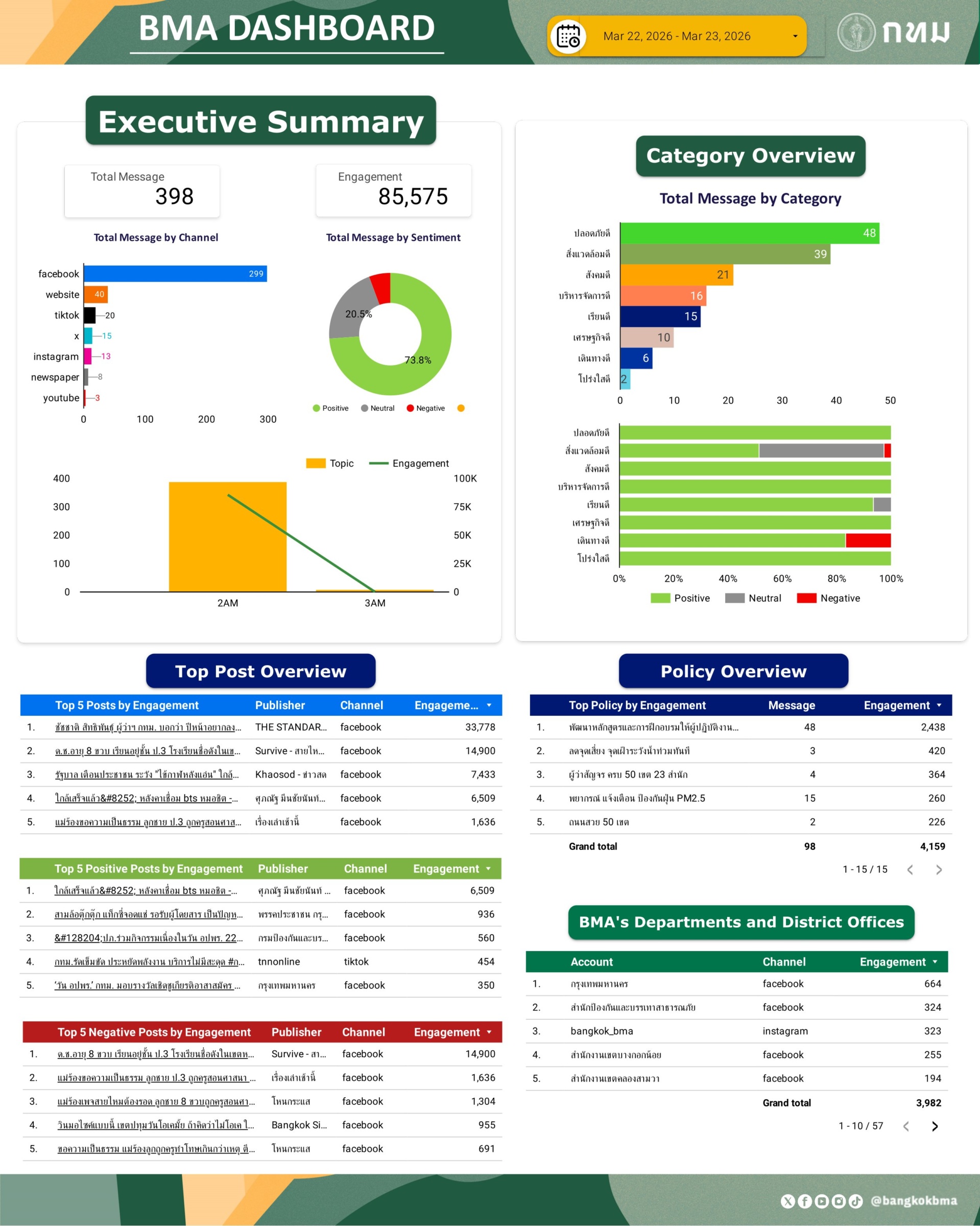 ภาพรวมการกล่าวถึงกรุงเทพมหานครในสื่อออนไลน์ วันที่ 23 มี.ค. 69