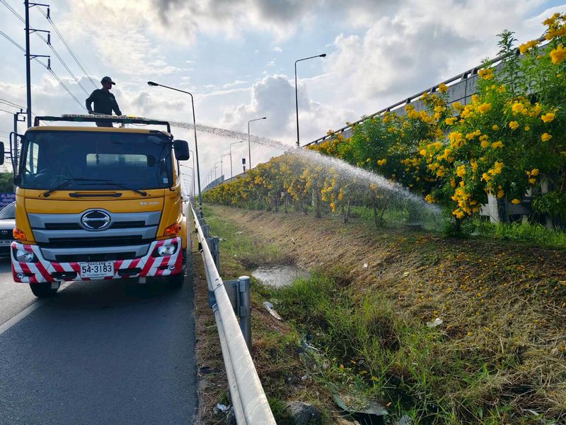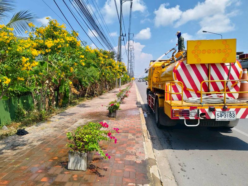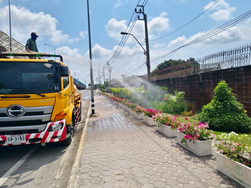 💦🌱 นำรถบรรทุกน้ำ ฉีดพ่นละอองน้ำ ล้างฝุ่นที่จับอยู่บนผิวใบไม้ ทั้งไม้พุ่ม ไม้ยืนต้น ลดการฟุ้งกระจายของฝุ่นดิน เพื่อเพิ่มความชุ่มชื้นในอากาศ ทั้งยังให้ต้นไม้ในพื้นที่ได้รับน้ำอย่างเพียงพอและยังช่วยลดปริมาณฝุ่นละอองขนาดเล็กในอากาศ (ค่า PM2.5) บริเวณสวนหย่อม สวนถนน สวน 15 นาที ทั้งถนนสายหลักและสายรอง ในทุกๆ วันอย่างต่อเนื่อง