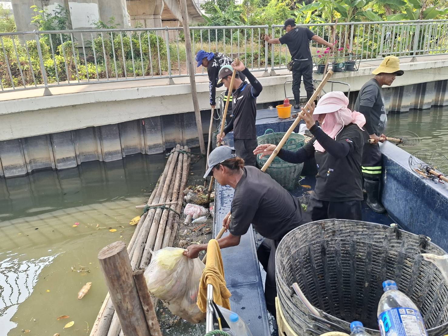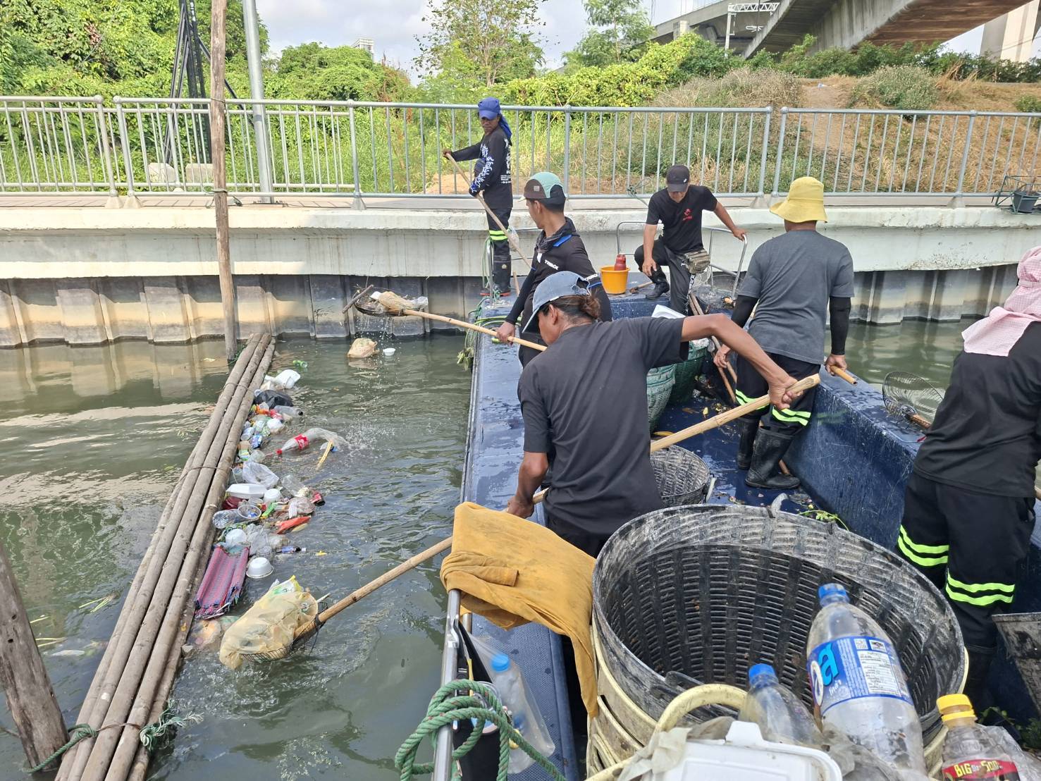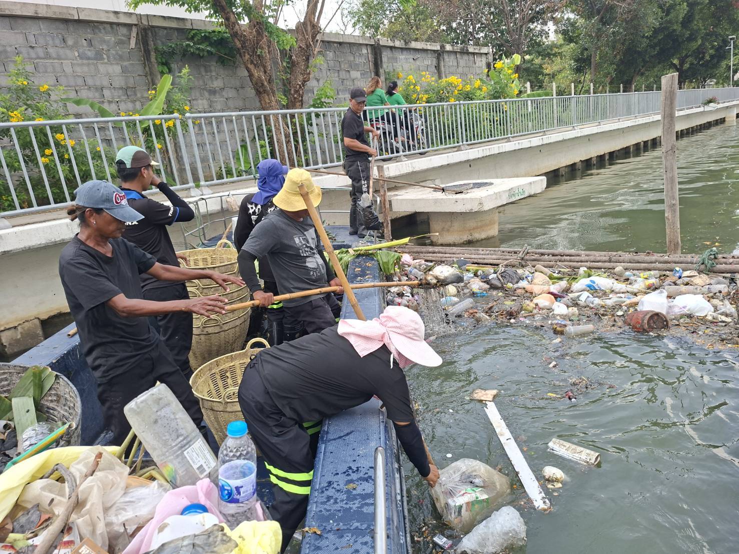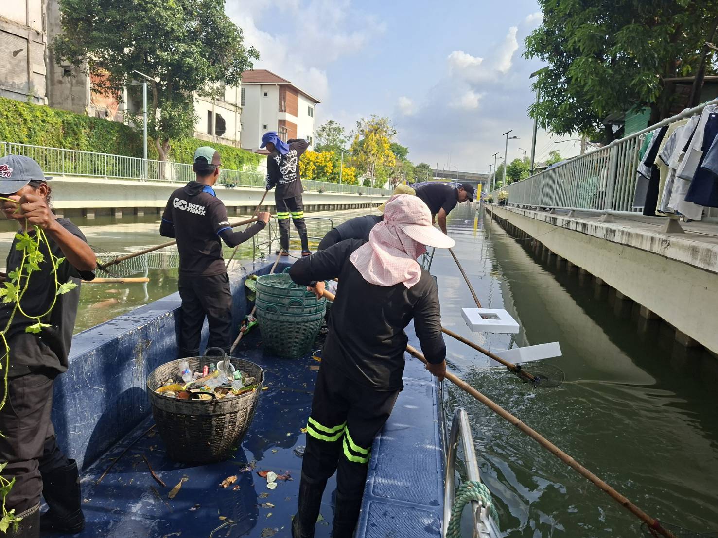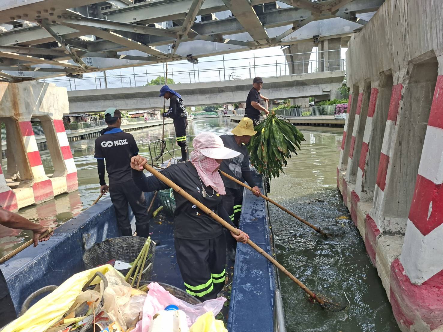 เจ้าหน้าที่ เก็บขยะและวัชพืชคลองเปรมประชากร ช่วงชุมชนตึกแดงบางซื่อเขตบางซื่อถึงสะพานงามวงศ์วานเขตจตุจักร