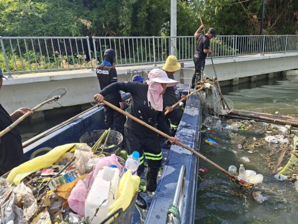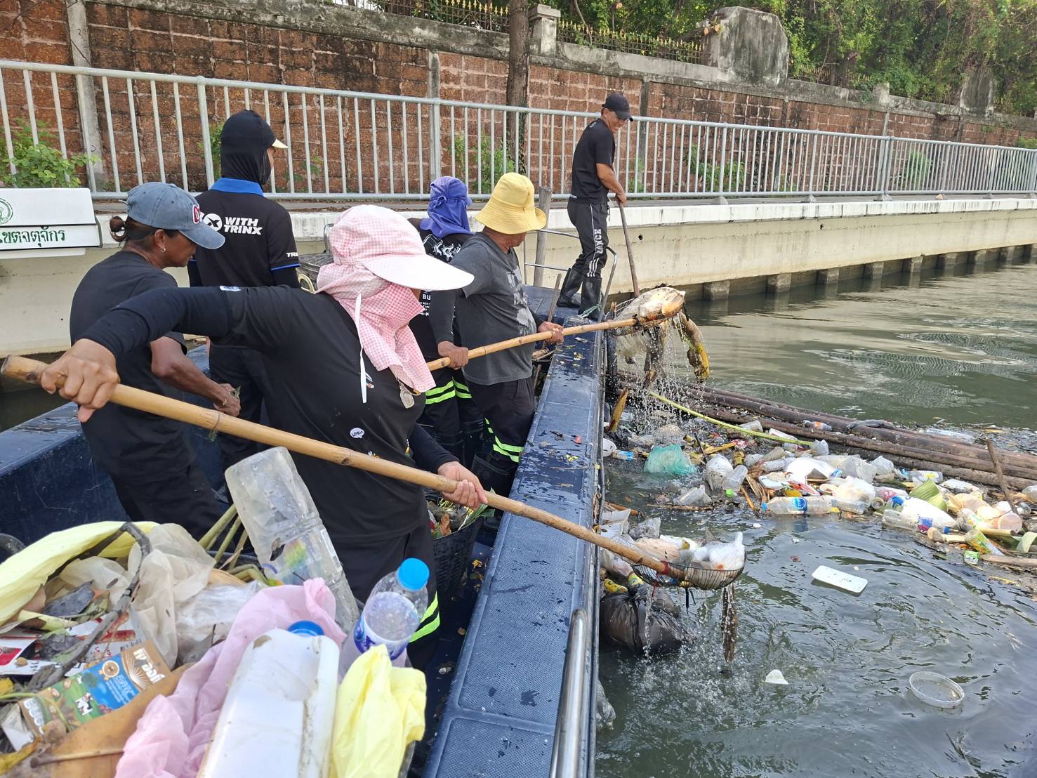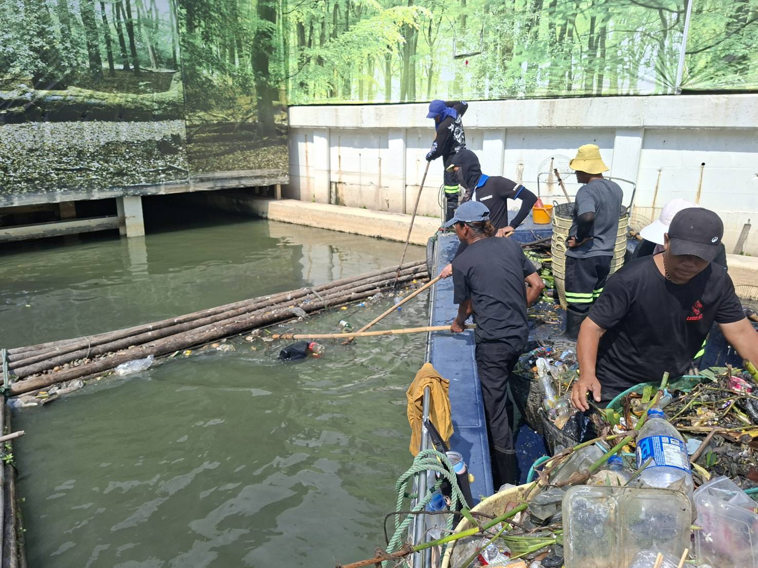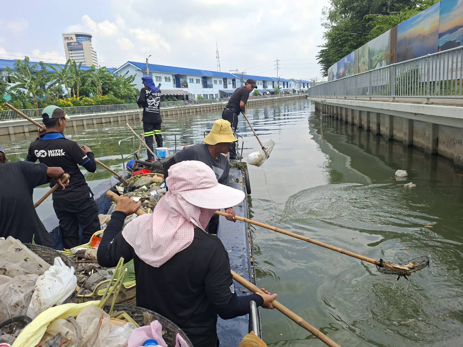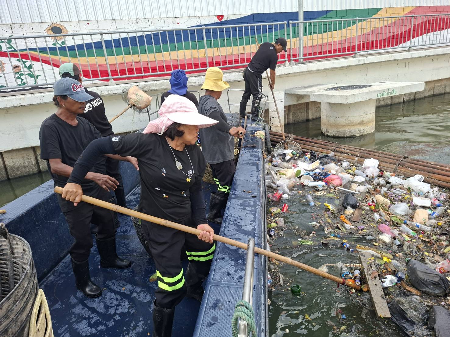 เจ้าหน้าที่ เก็บขยะและวัชพืชคลองเปรมประชากร ช่วงชุมชนตึกแดงบางซื่อเขตบางซื่อถึงสะพานงามวงศ์วานเขตจตุจักร