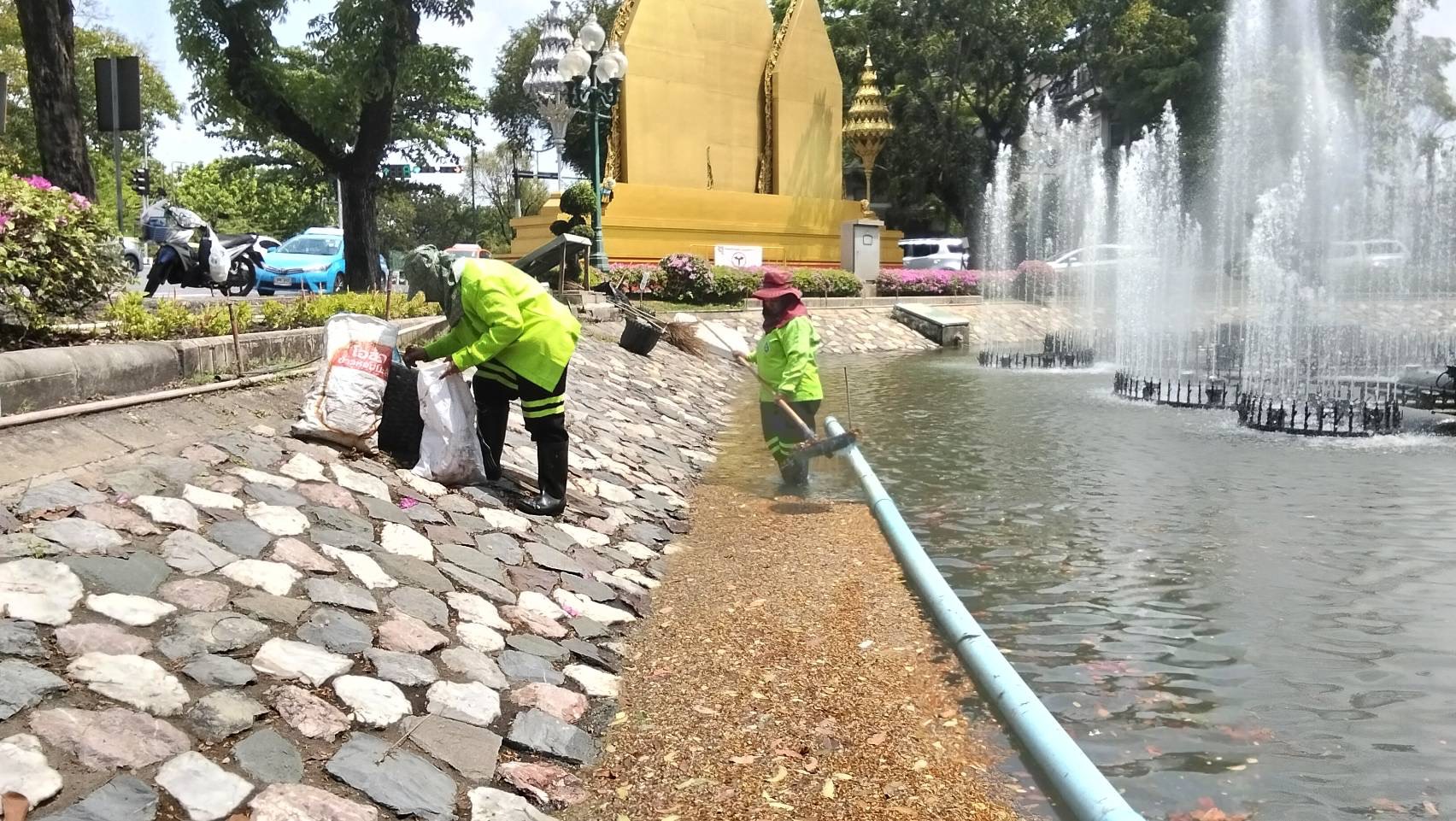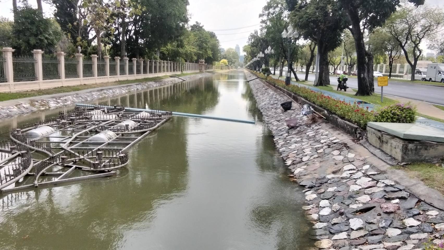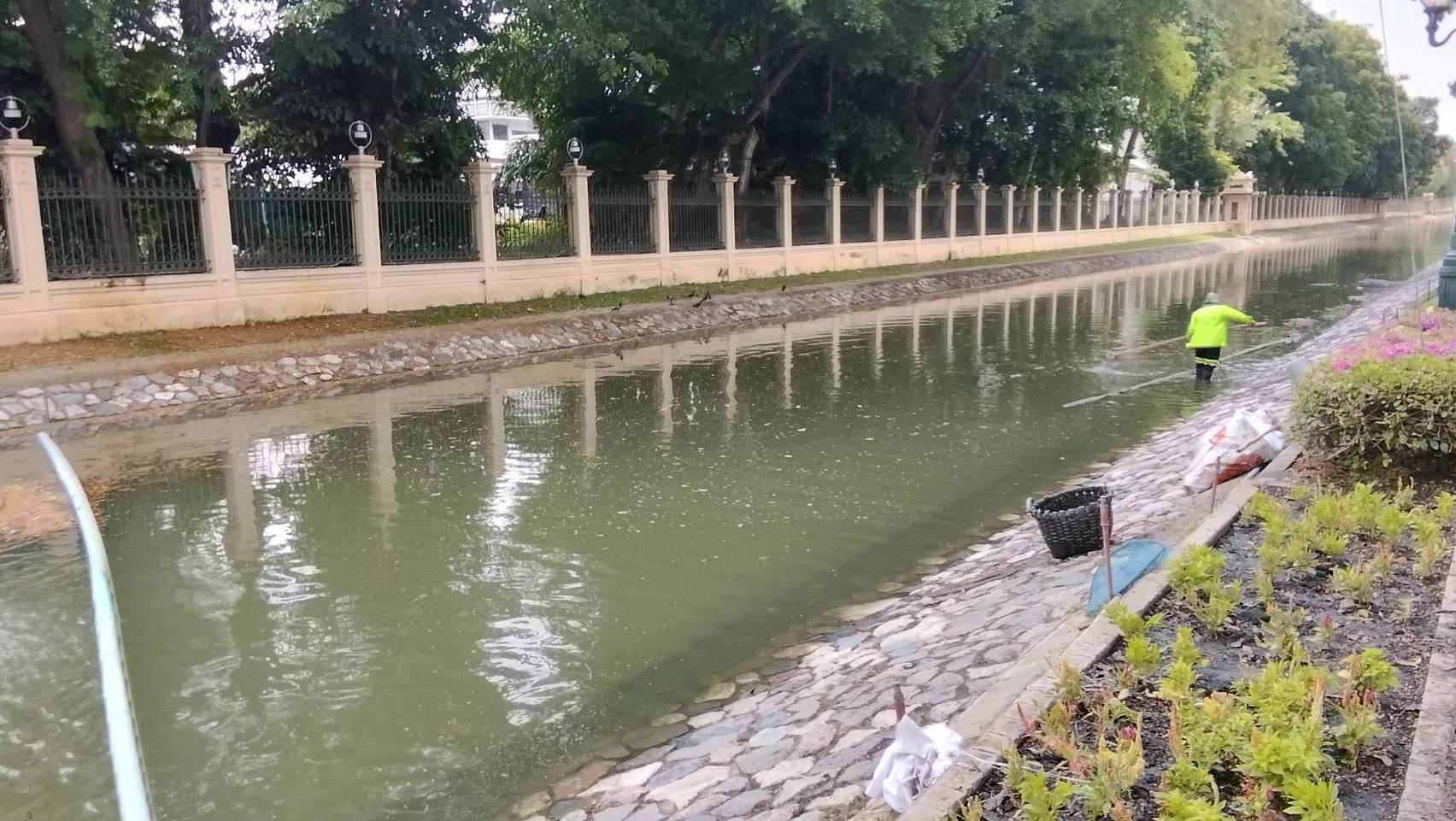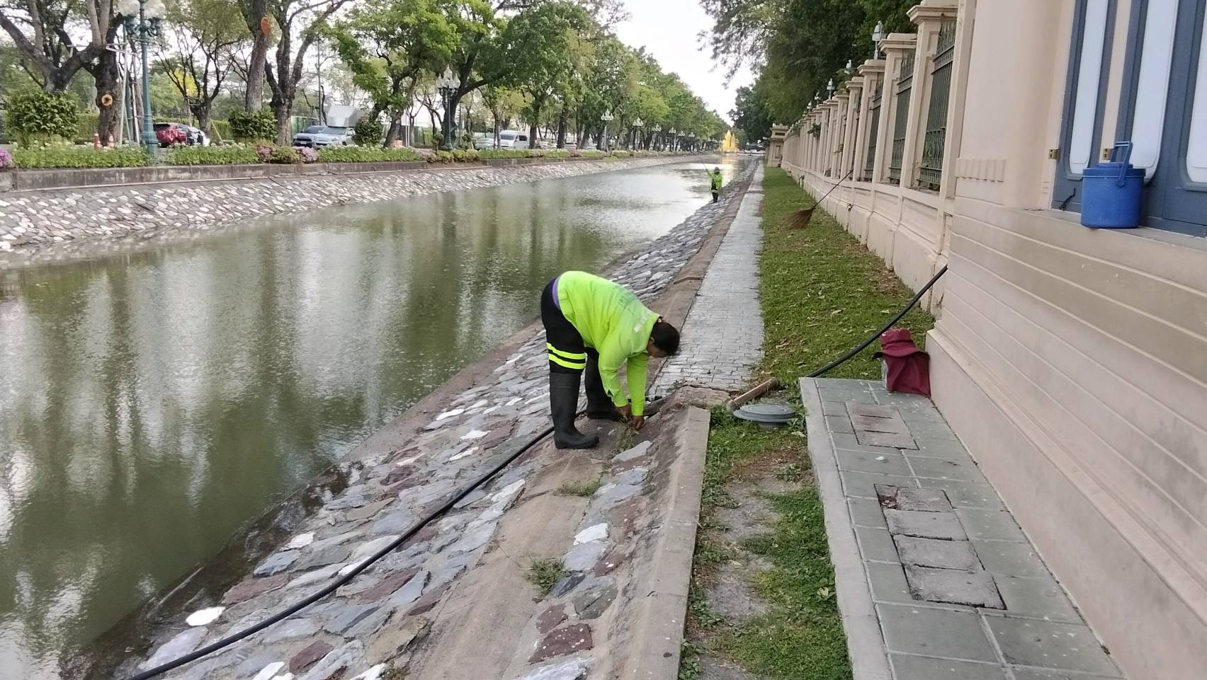 เจ้าหน้าที่ ดำเนินการตักใบไม้กำจัดวัชพืชคูน้ำรอบพระราชวังสวนจิตรลดา พื้นที่เขตดุสิต
