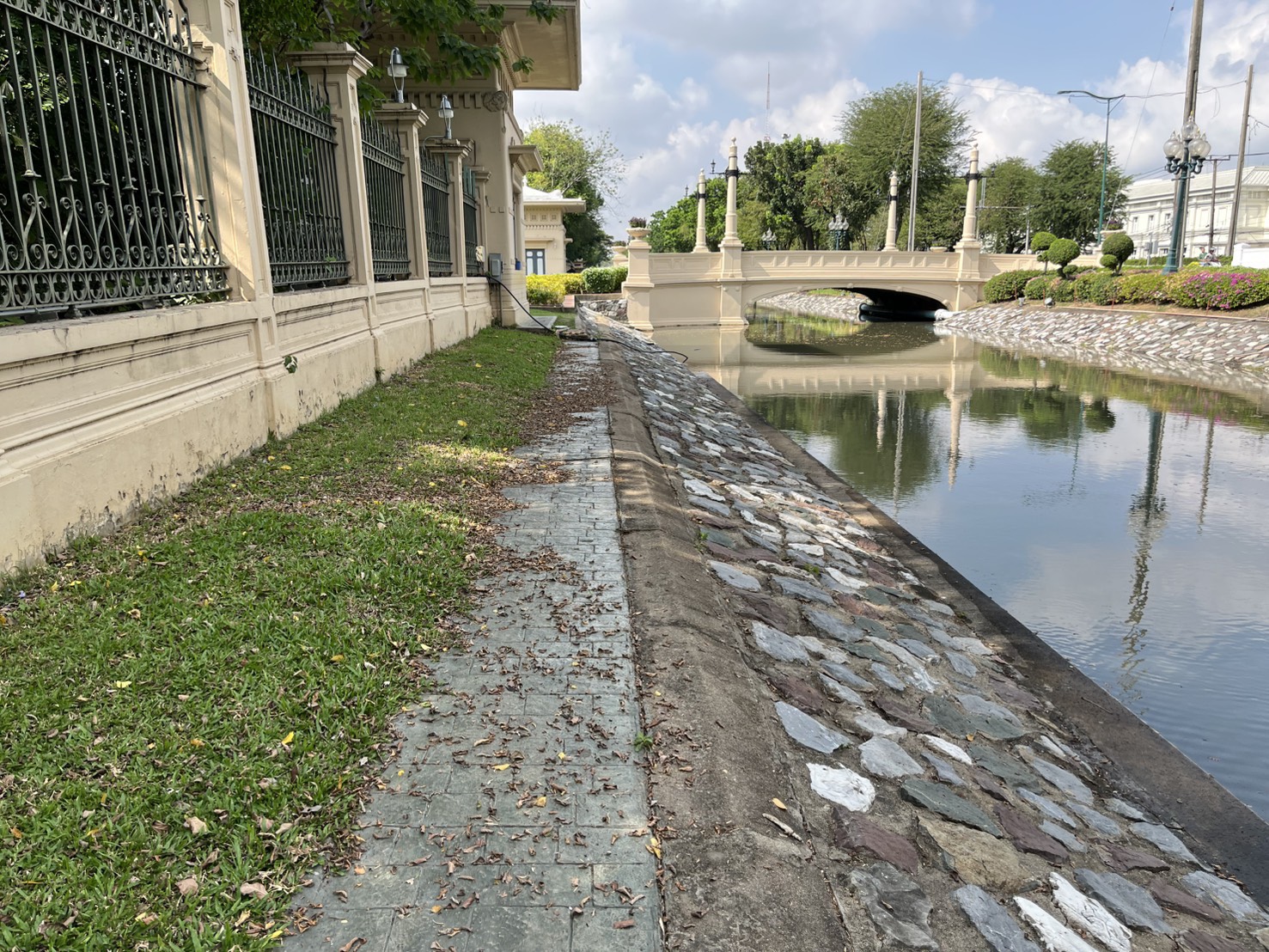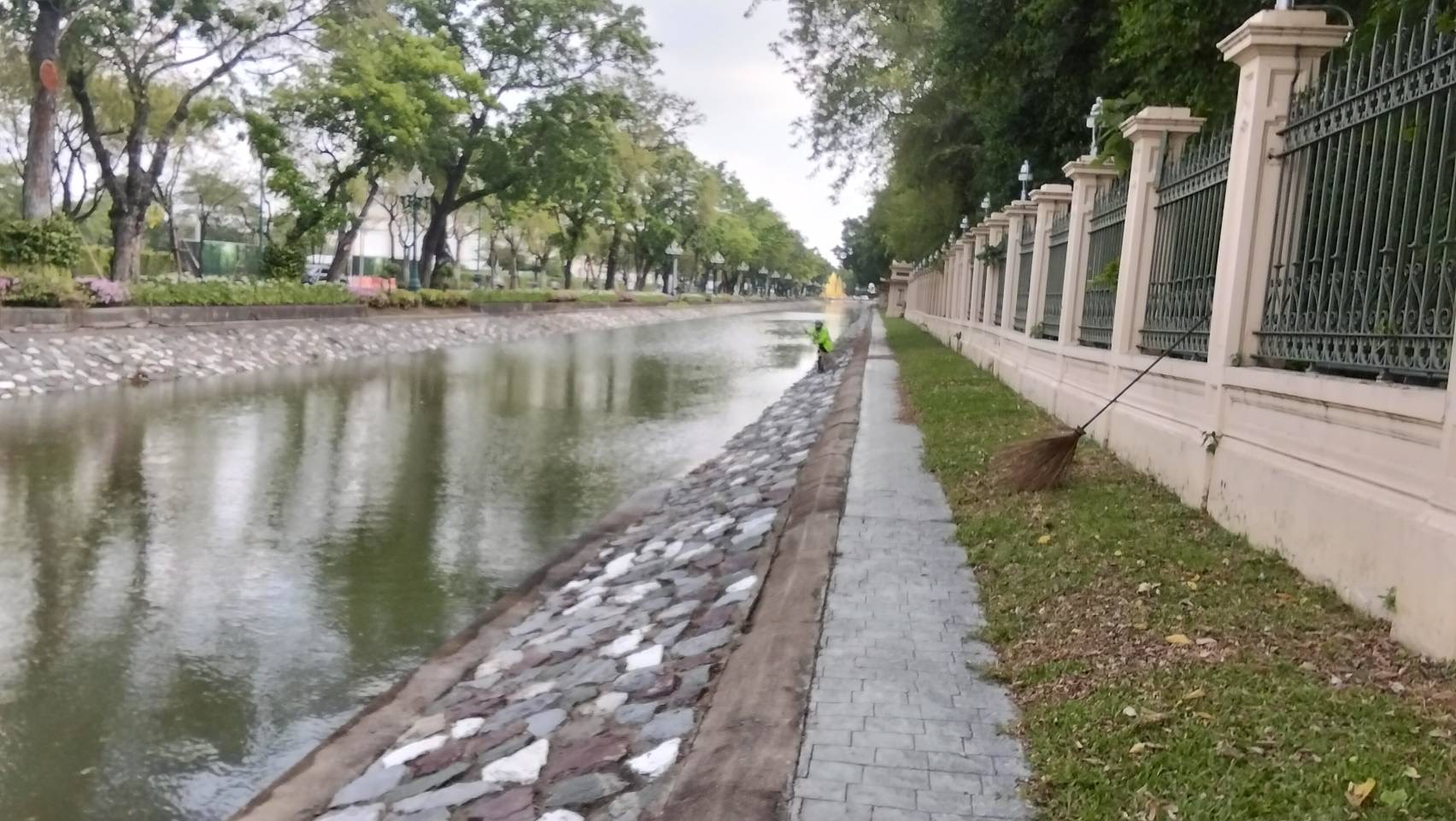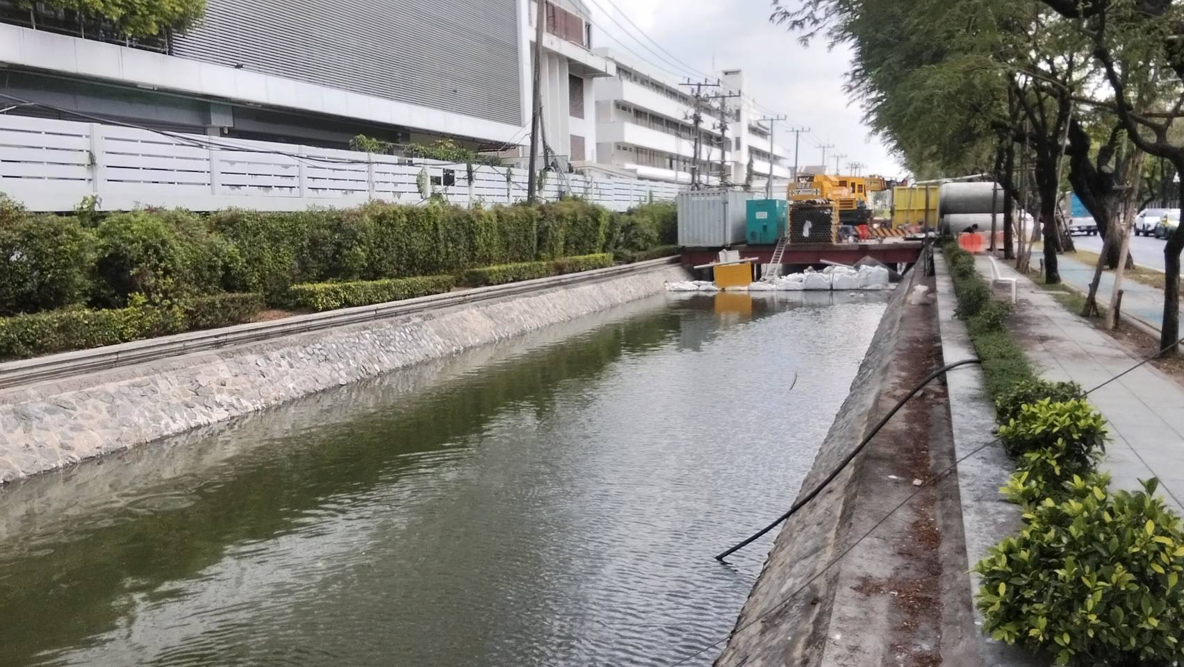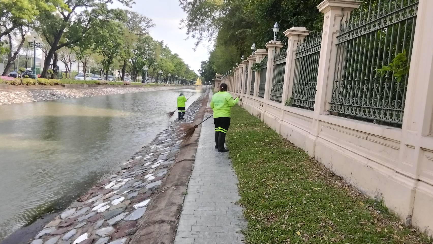 เจ้าหน้าที่ ดำเนินการตักใบไม้กำจัดวัชพืชคูน้ำรอบพระราชวังสวนจิตรลดา พื้นที่เขตดุสิต