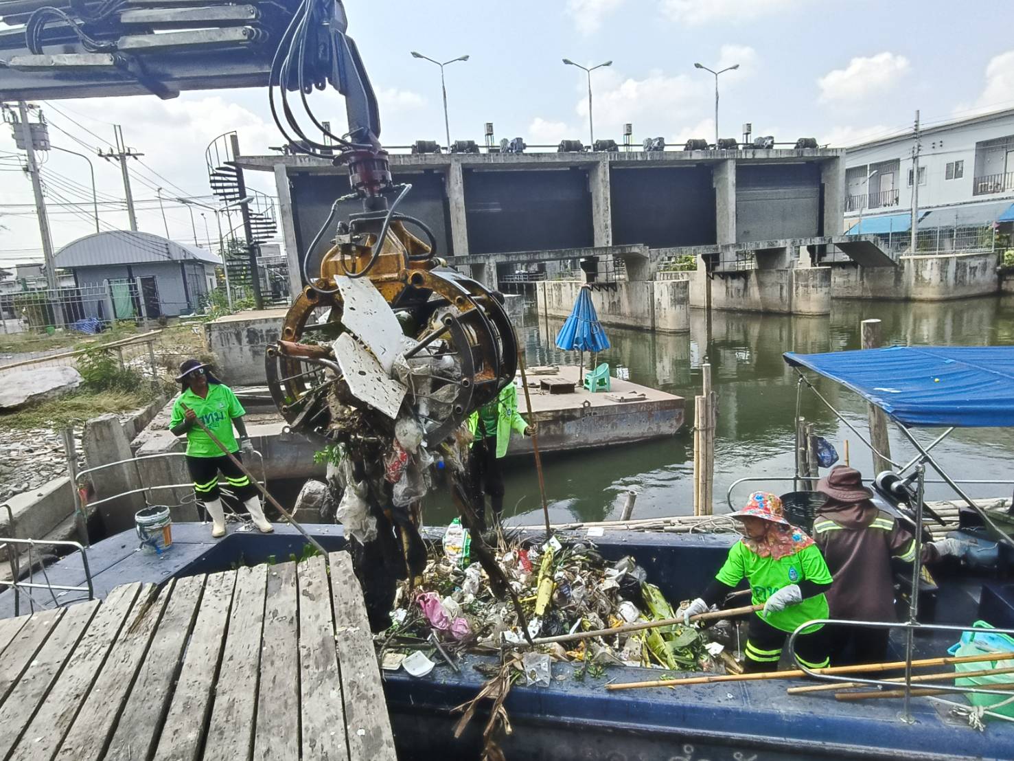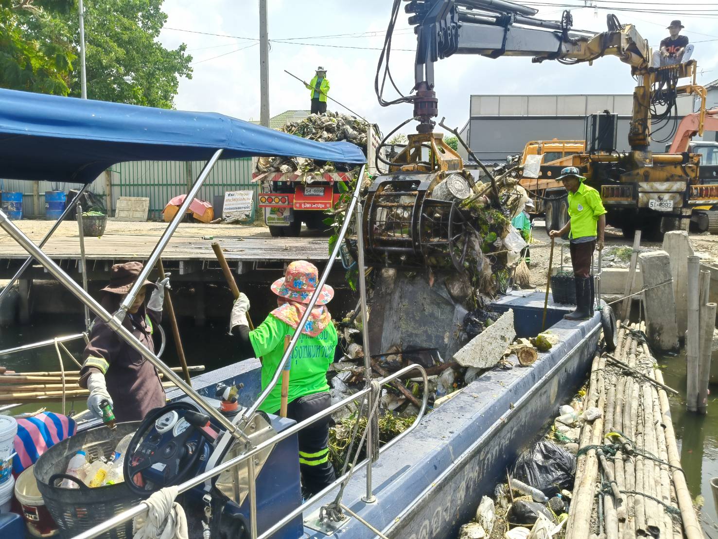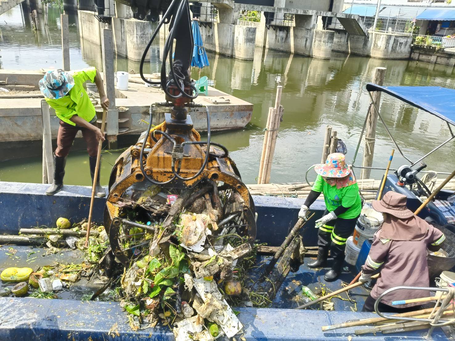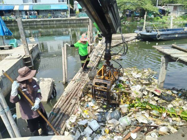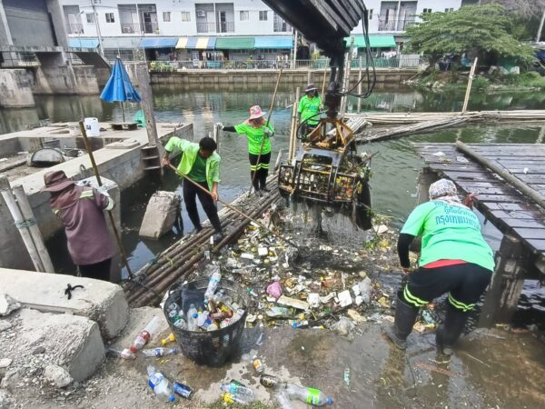 เจ้าหน้าที่ งับขยะและวัชพืช คลองลาดพร้าว พื้นที่เขตลาดพร้าว