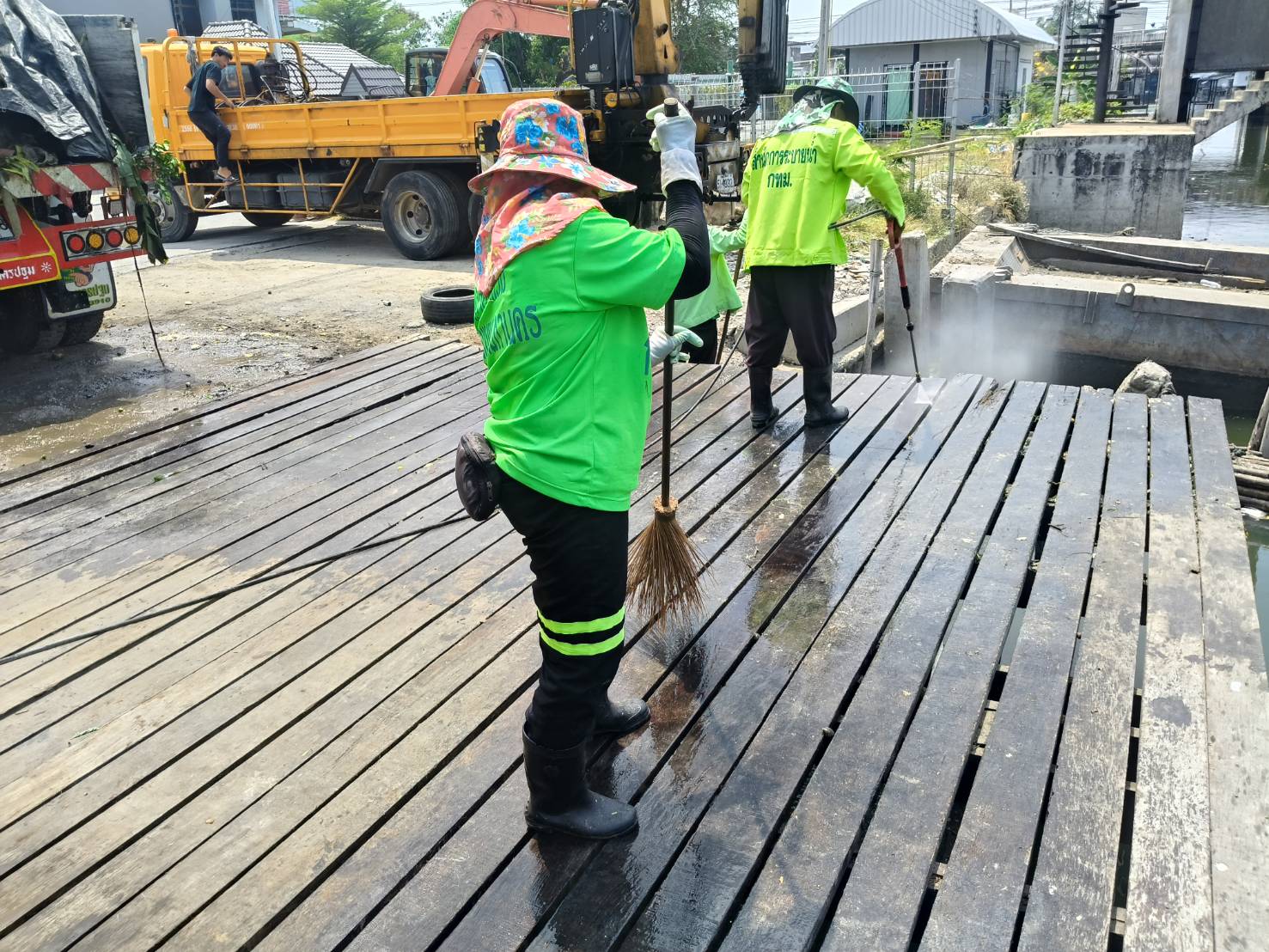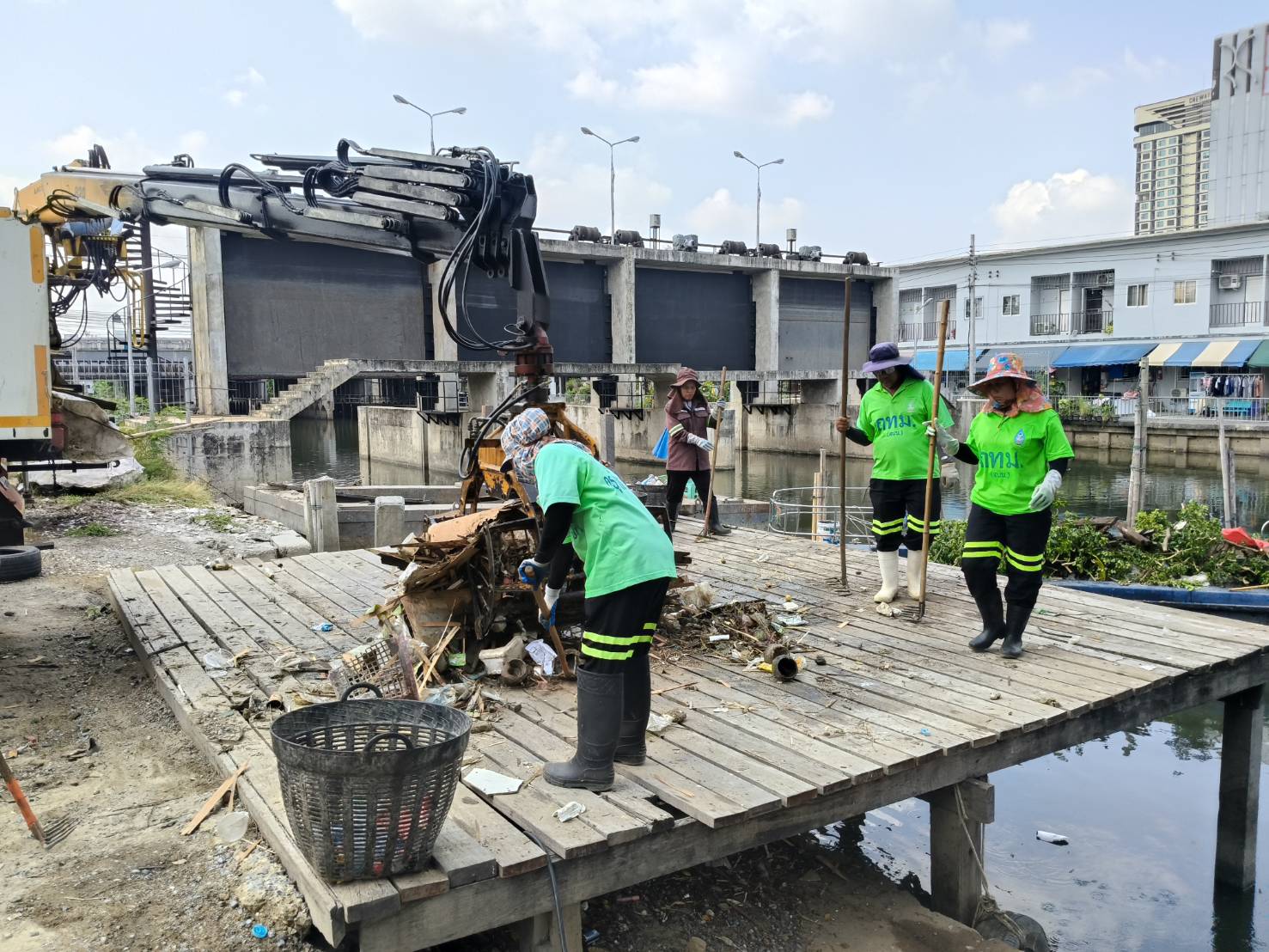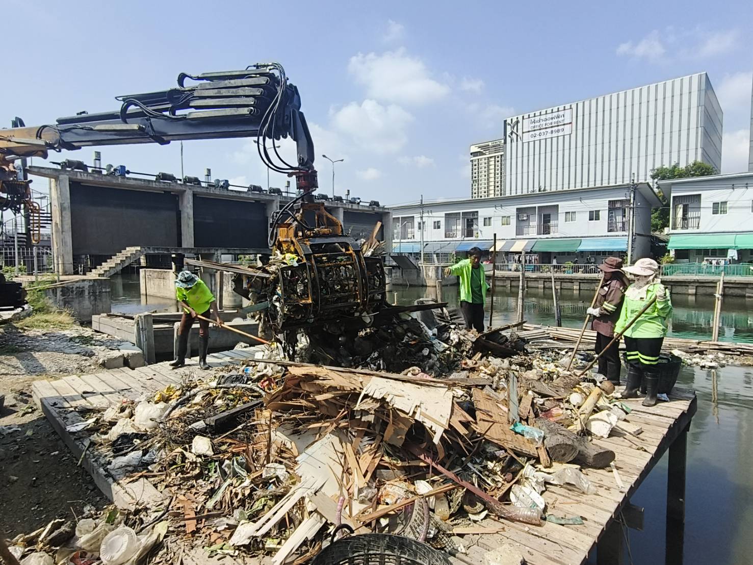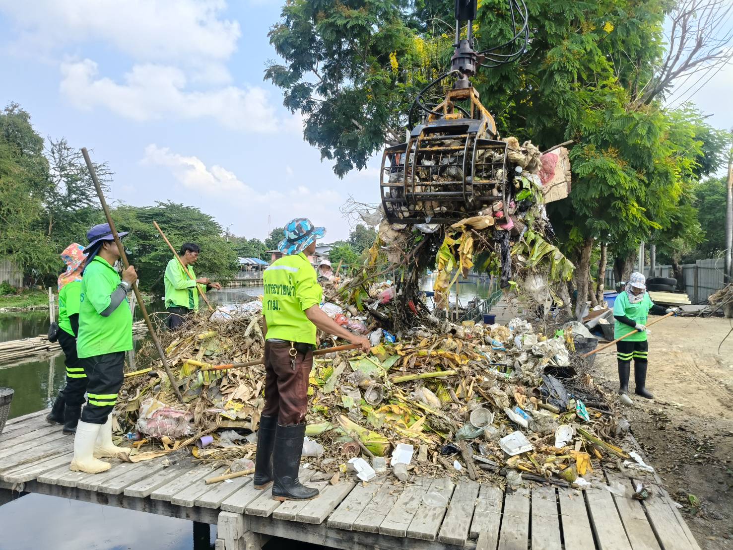 เจ้าหน้าที่ งับขยะและวัชพืช คลองลาดพร้าว พื้นที่เขตลาดพร้าว
