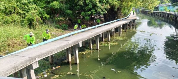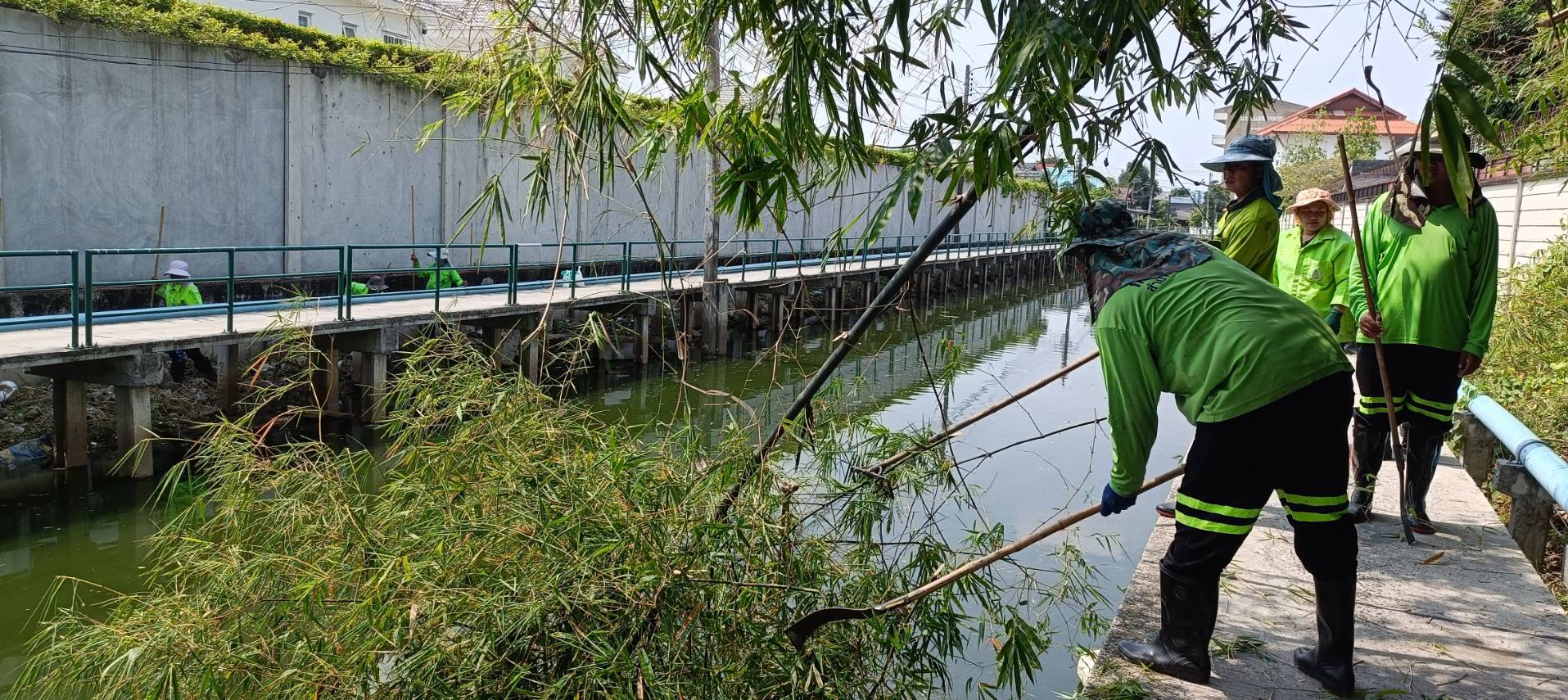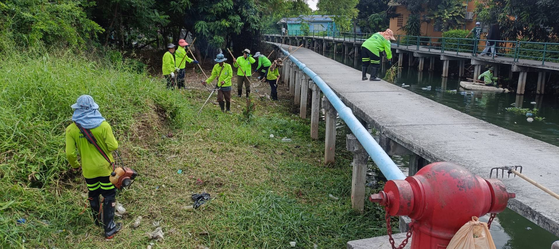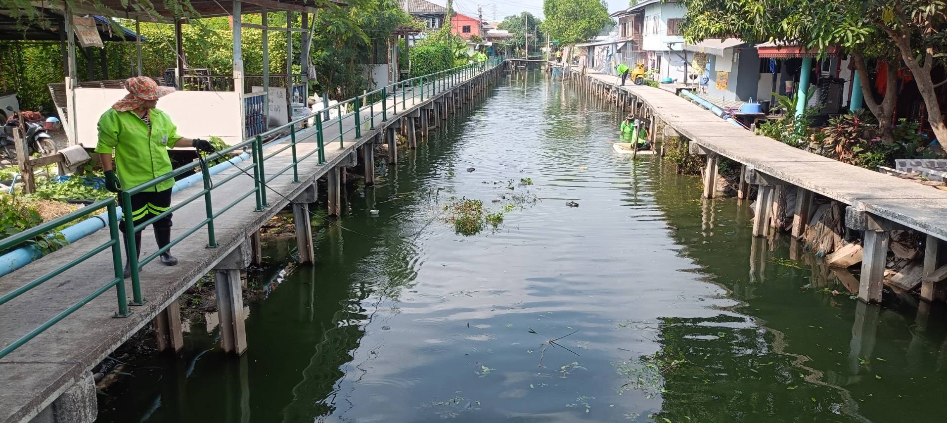 เจ้าหน้าที่ จัดเก็บขยะวัชพืชคลองจระเข้ขบ พื้นที่เขตประเวศ