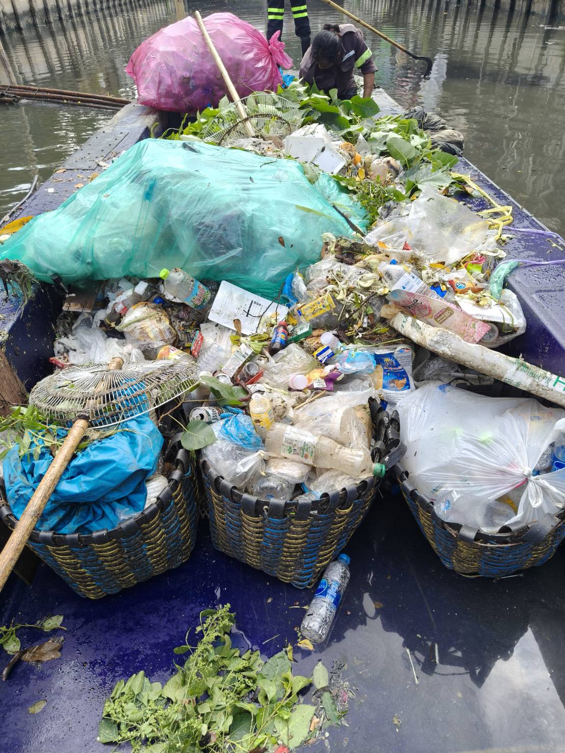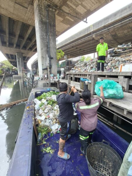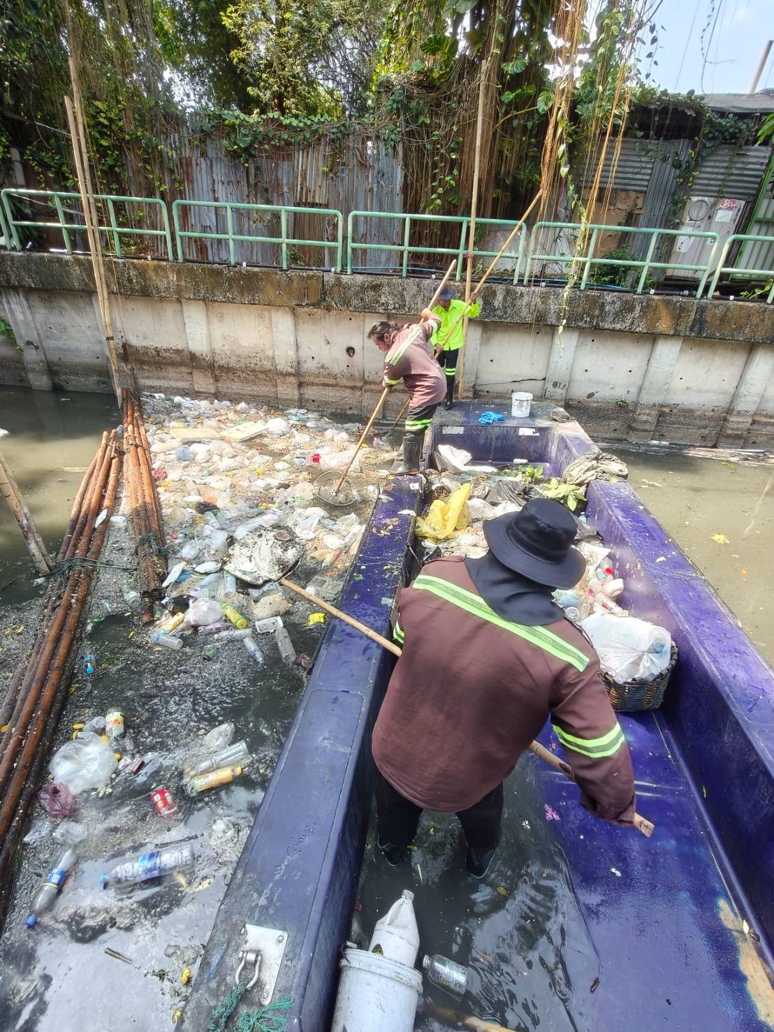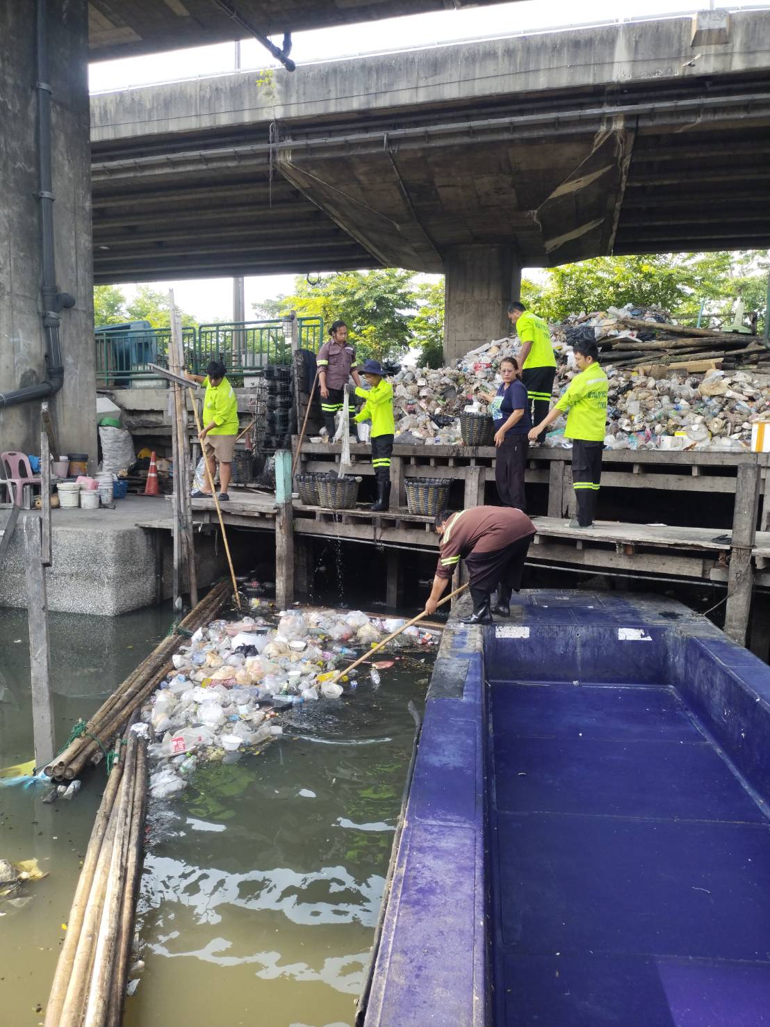 เจ้าหน้าที่ ตักขยะและวัชพืชคลองเตย(คลองหัวลำโพง)ช่วงสถานีสูบน้ำคลองเตยถึงตลาดคลองเตย พื้นที่เขตคลองเตย