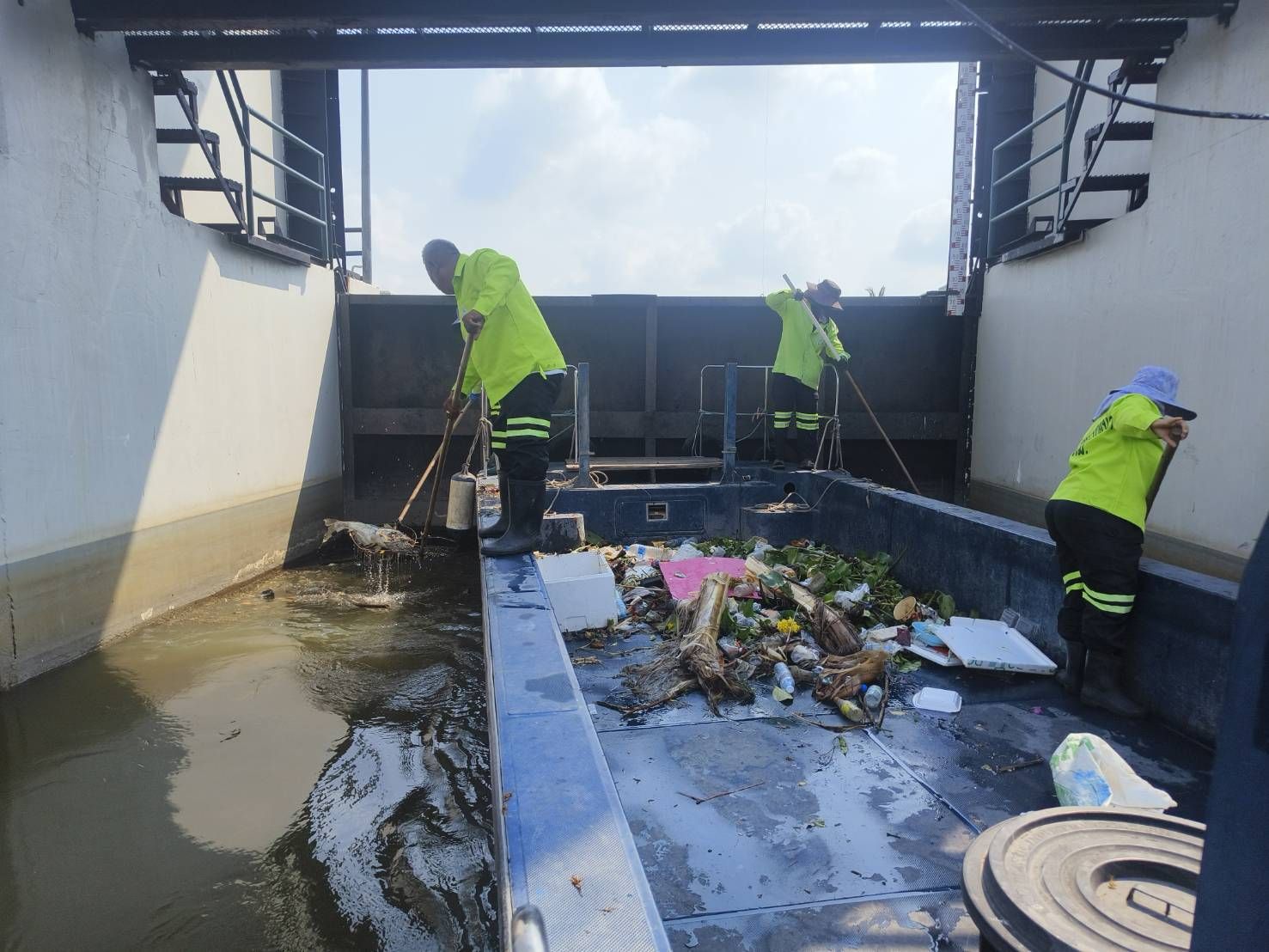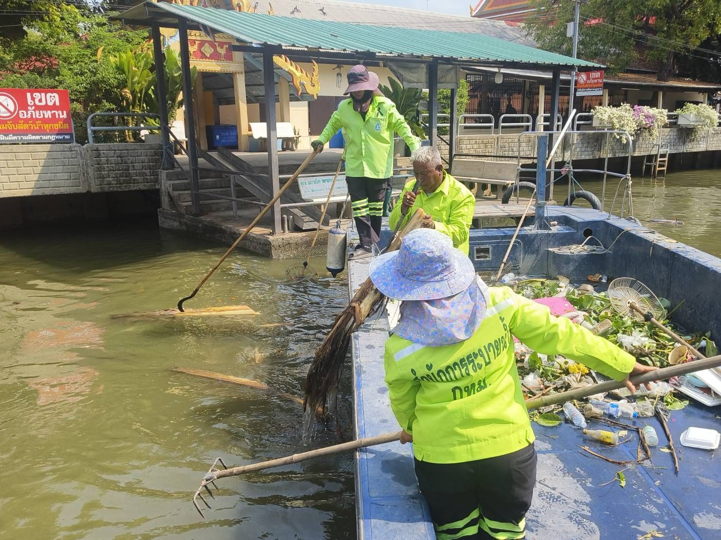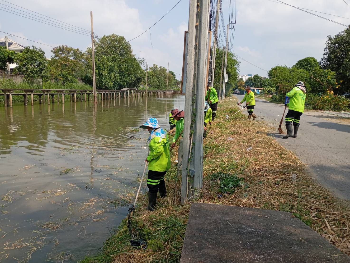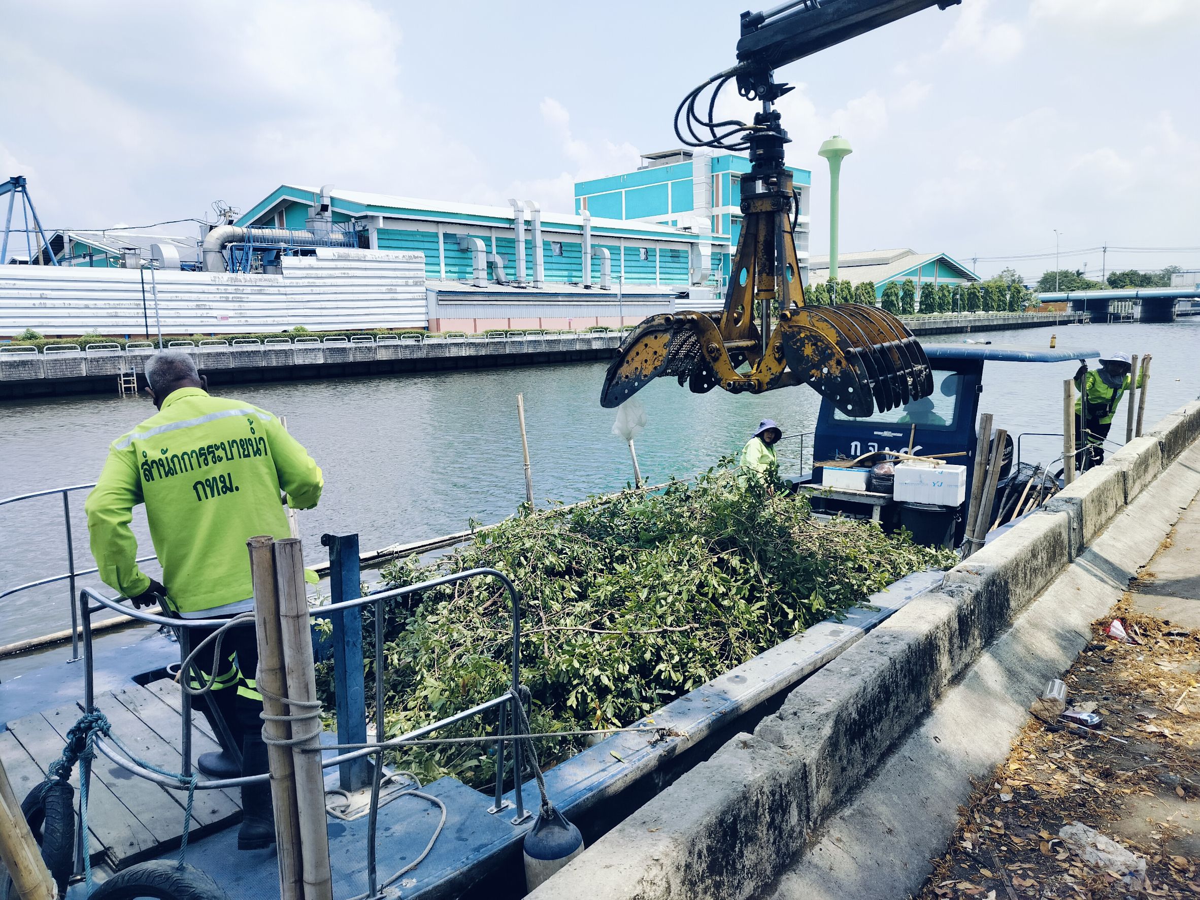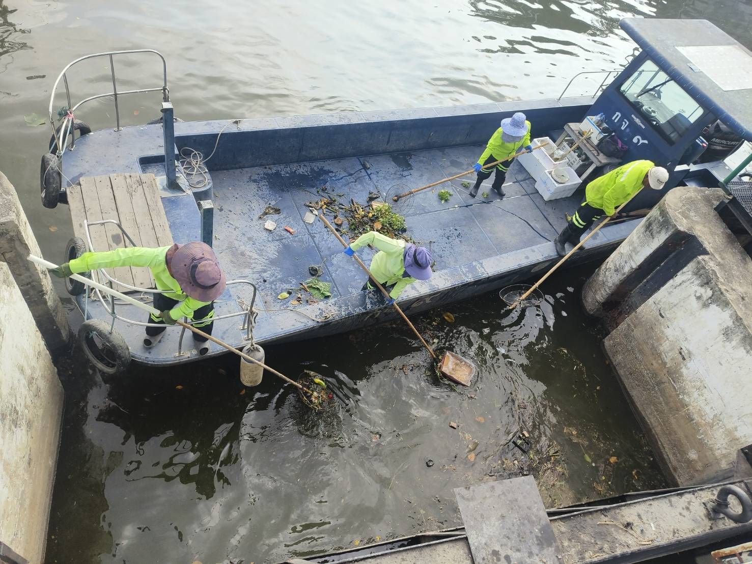 เจ้าหน้าที่ จัดเก็บขยะและวัชพืช คลองแสนแสบ-คลองสองต้นนุ่น-คลองลำบึงขวาง-คลองลาดบัวขาว พื้นที่เขตมีนบุรี