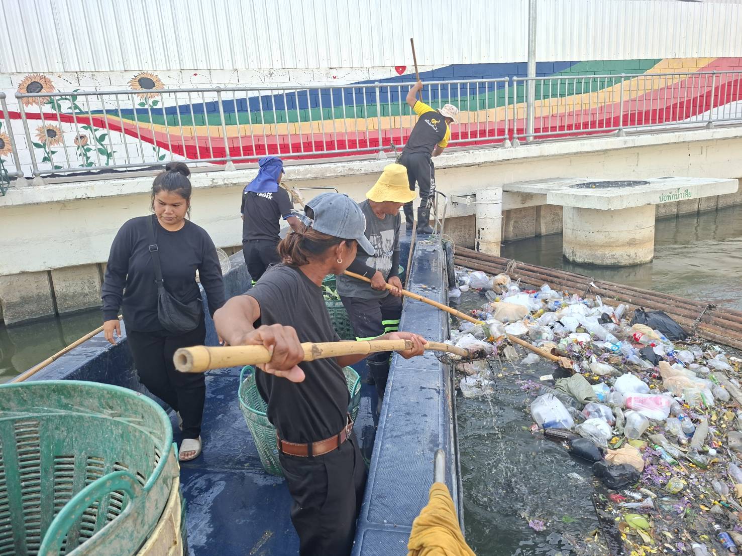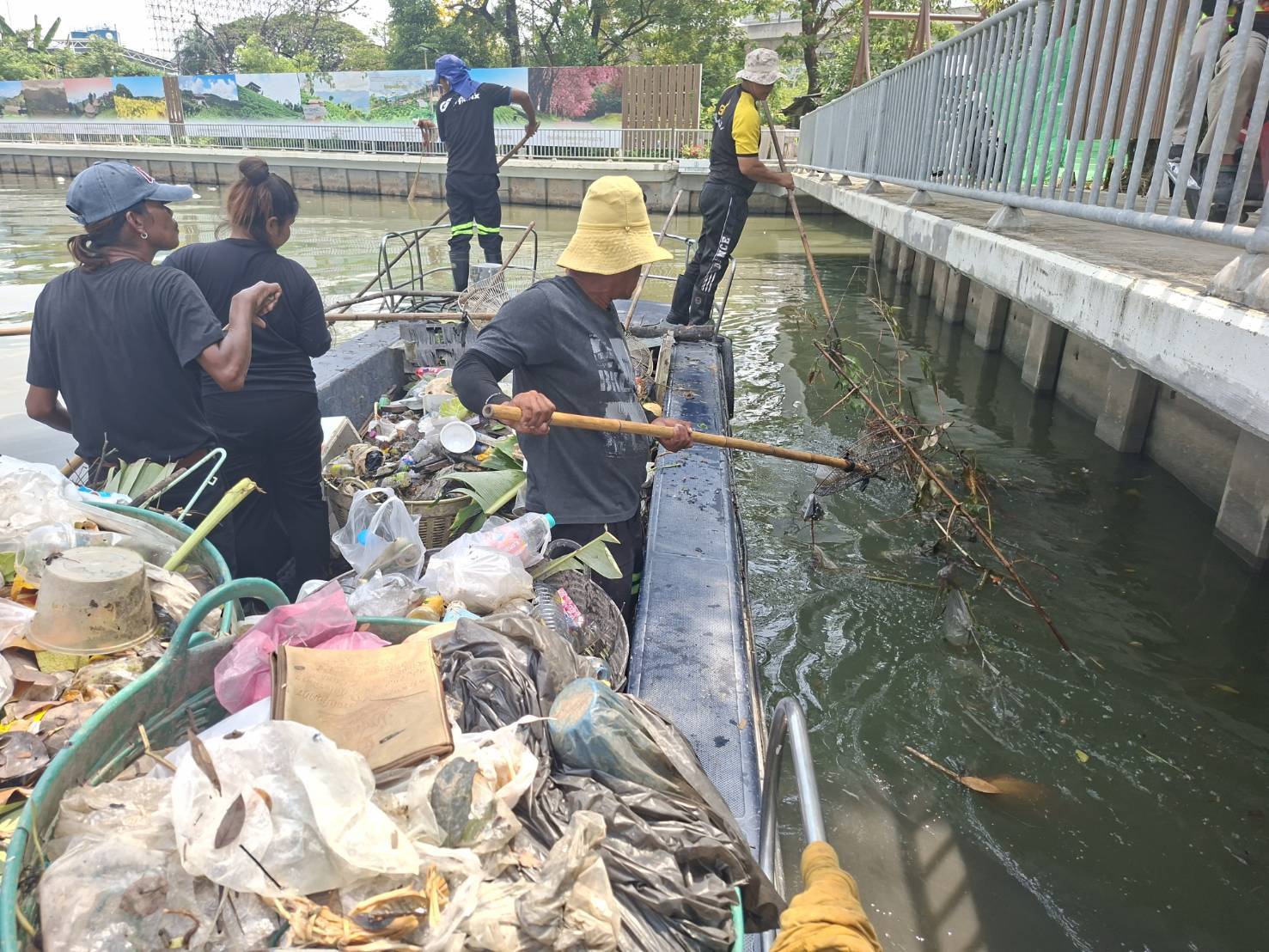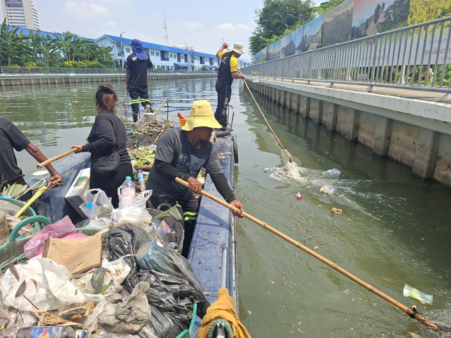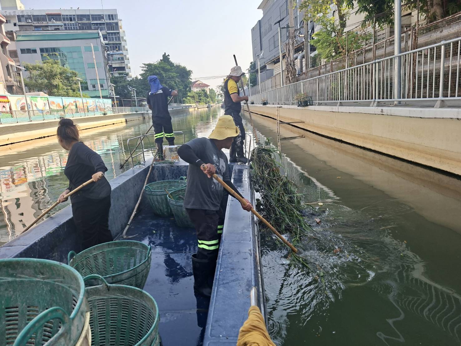 เจ้าหน้าที่ เก็บขยะและวัชพืชคลองเปรมประชากร ช่วงชุมชนตึกแดงบางซื่อเขตบางซื่อถึงสะพานงามวงศ์วาน เขตจตุจักร