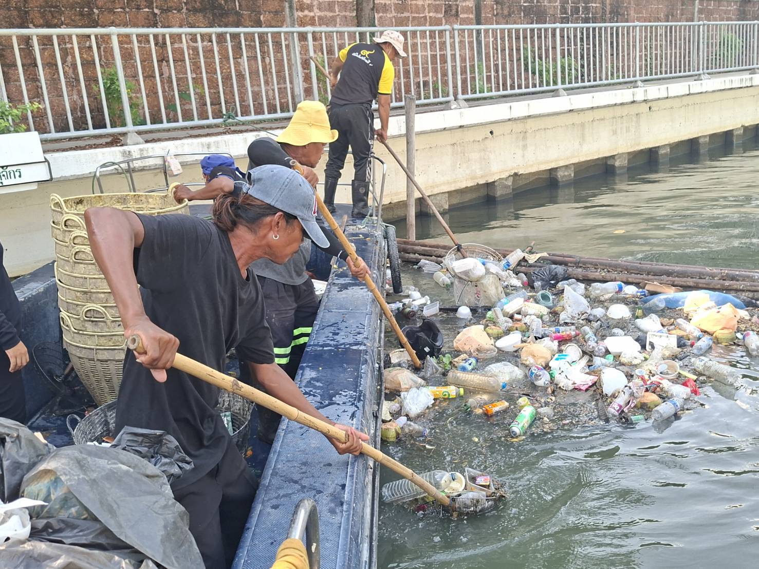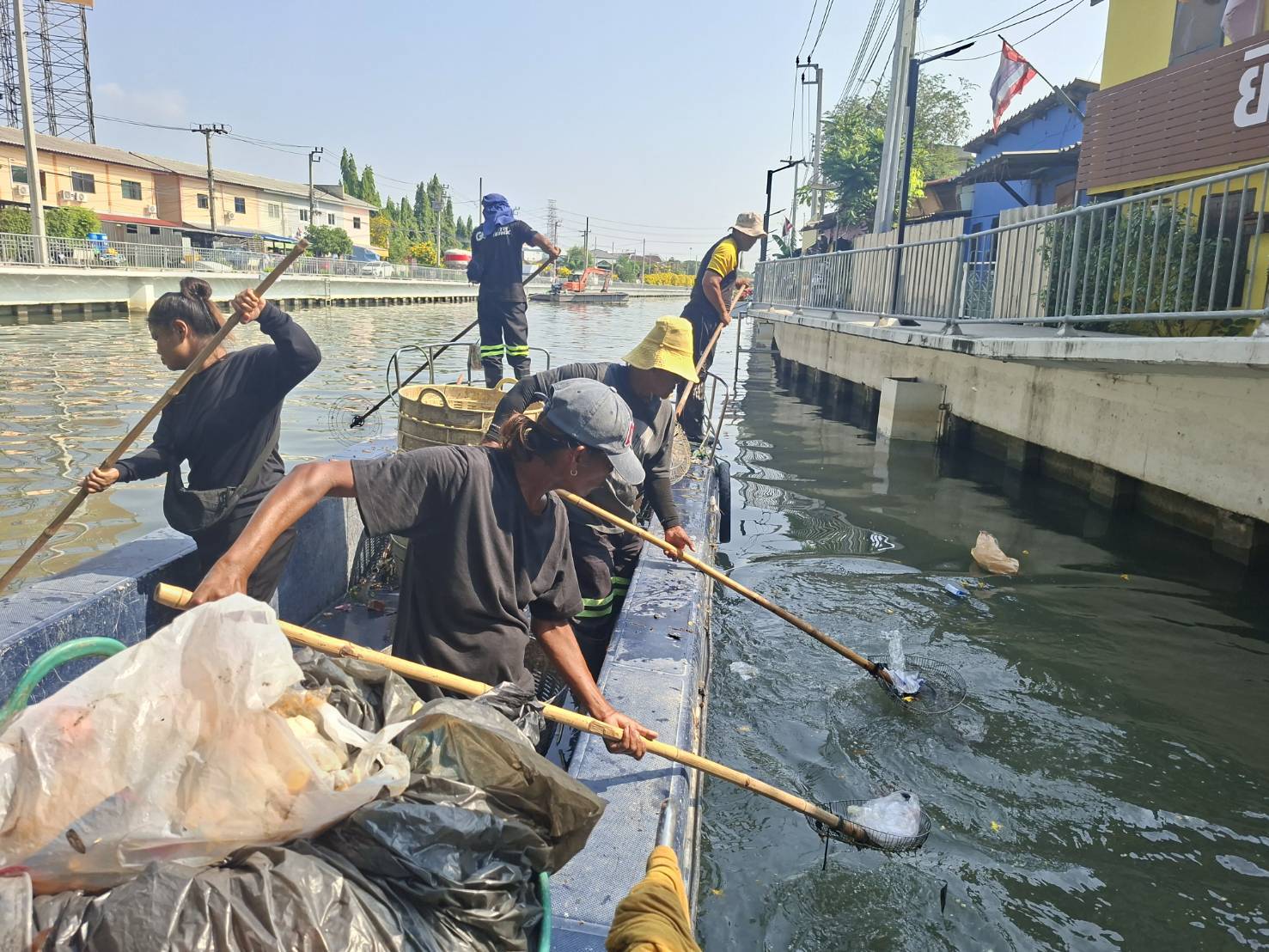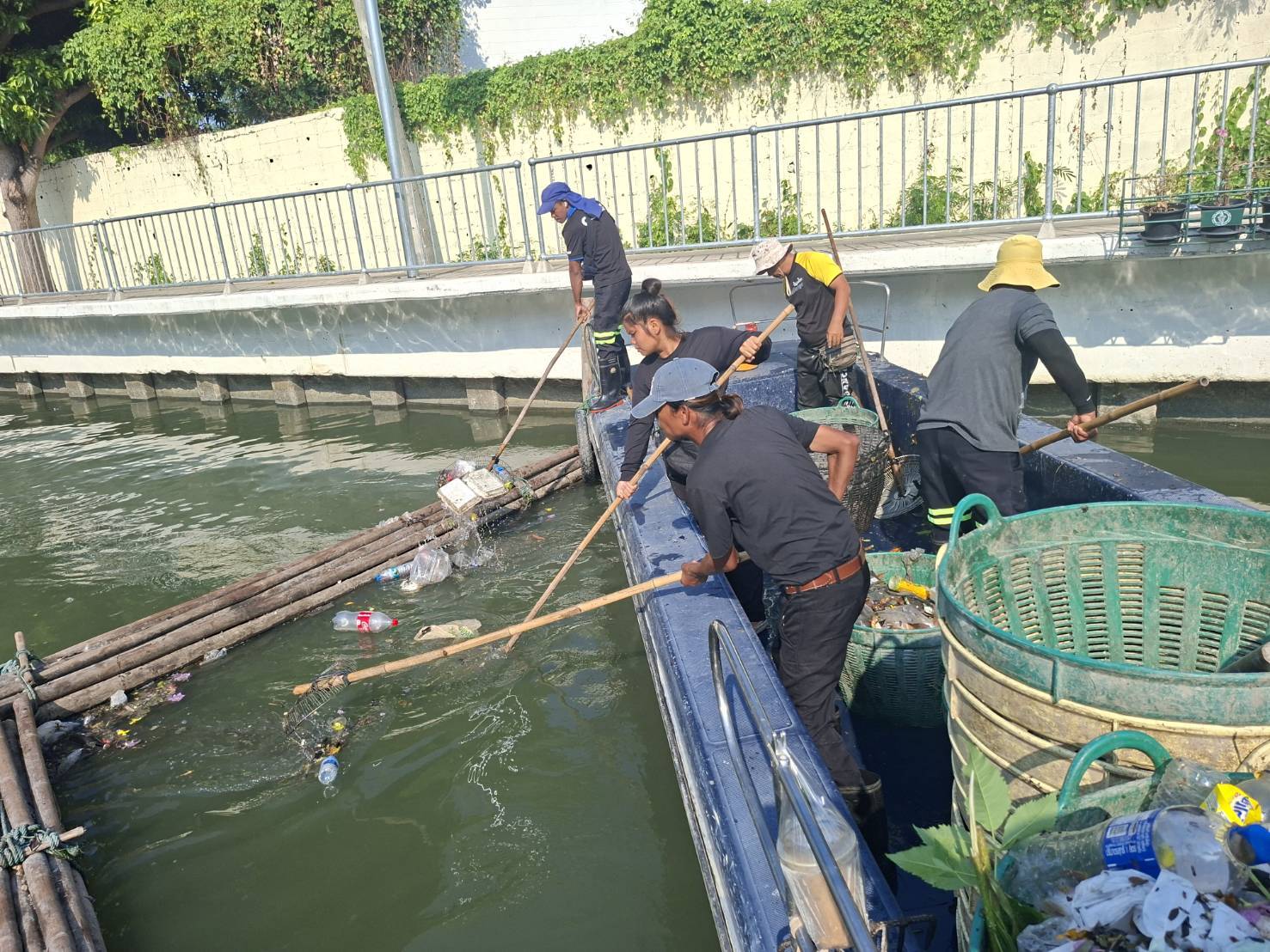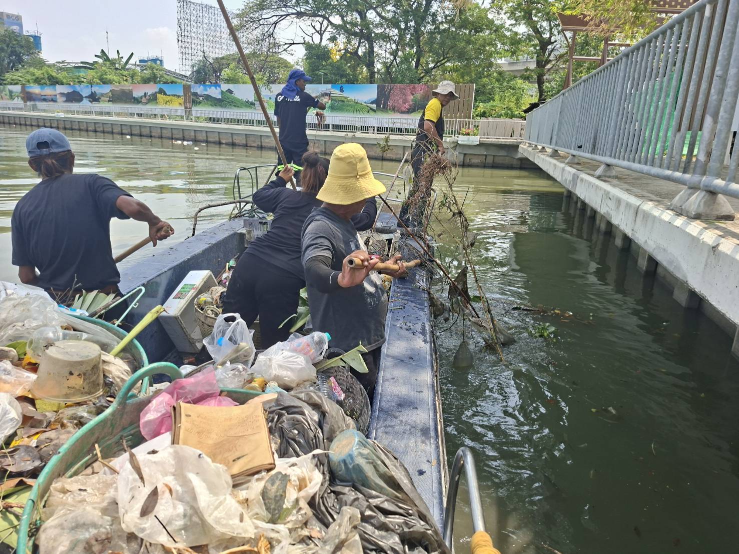 เจ้าหน้าที่ เก็บขยะและวัชพืชคลองเปรมประชากร ช่วงชุมชนตึกแดงบางซื่อเขตบางซื่อถึงสะพานงามวงศ์วาน เขตจตุจักร