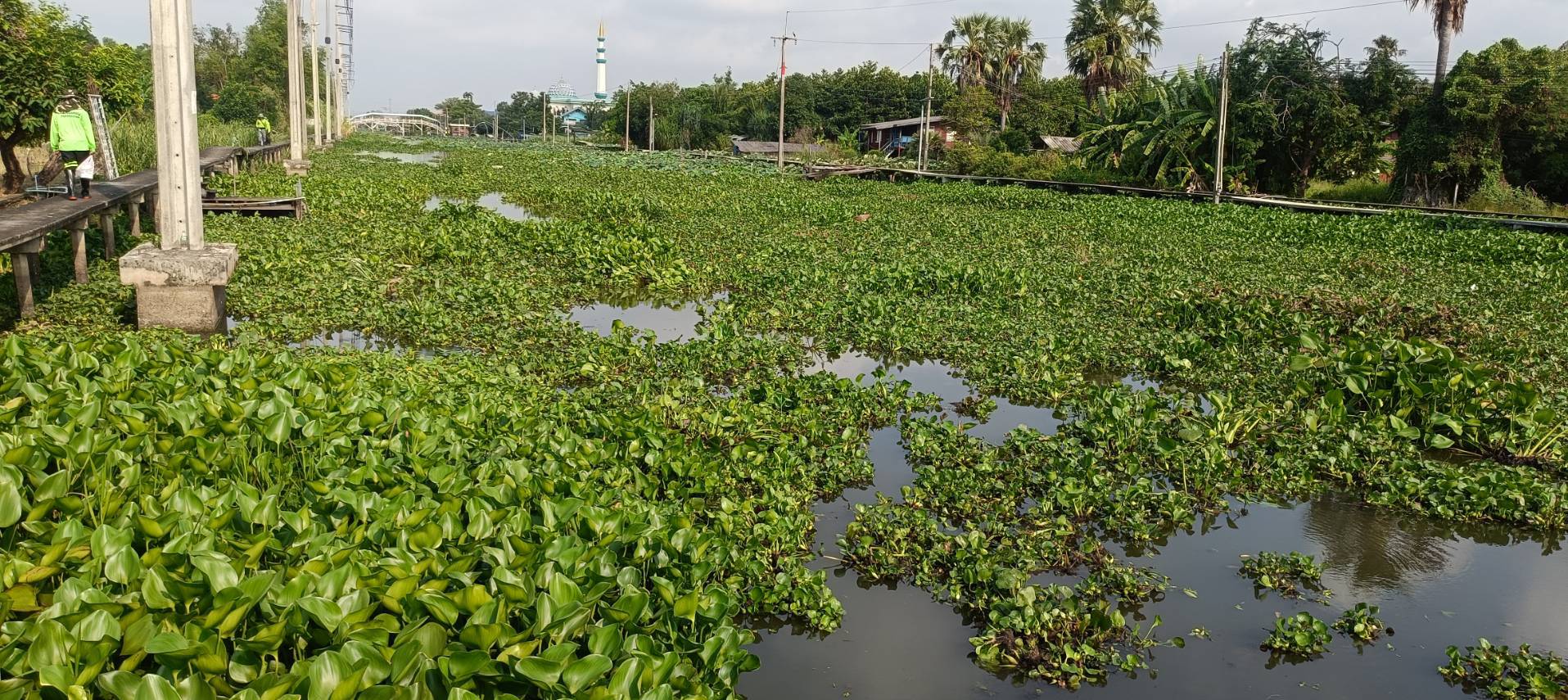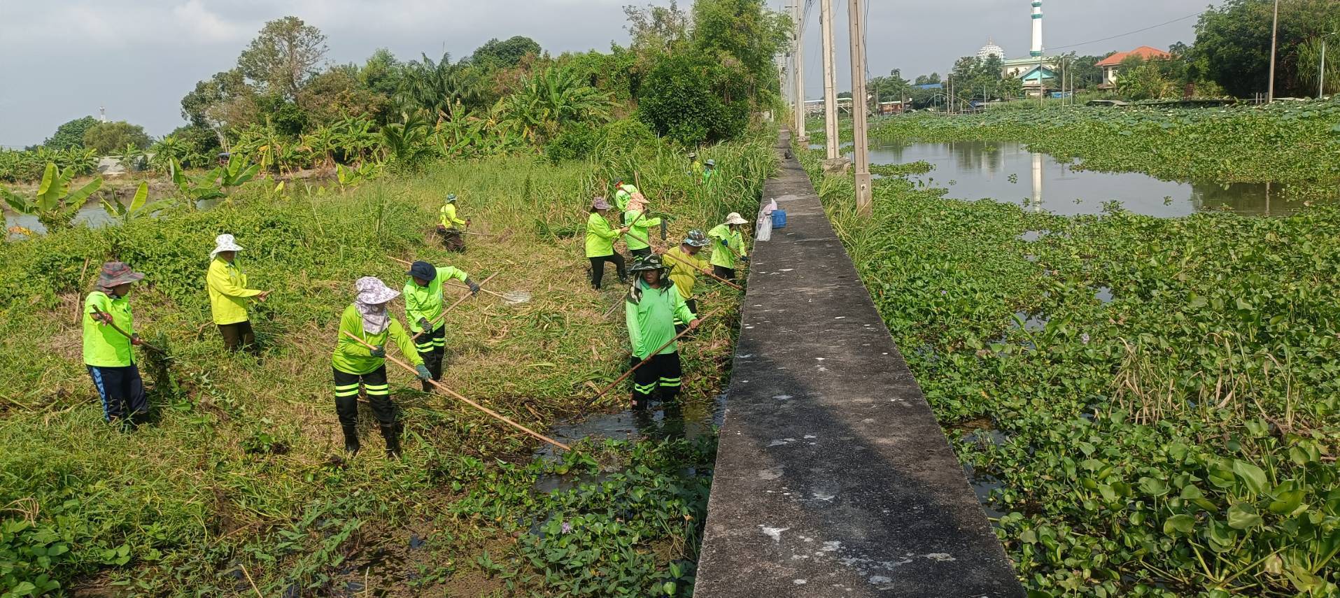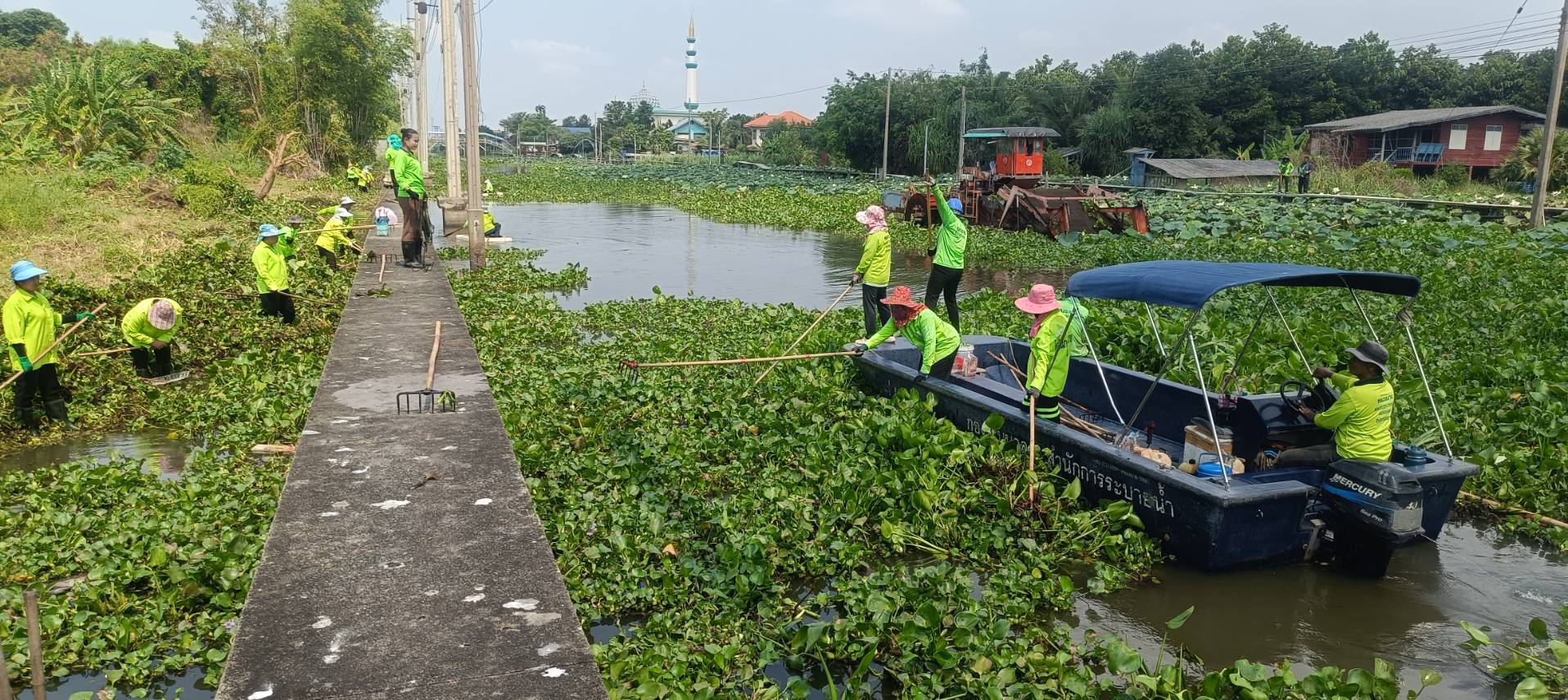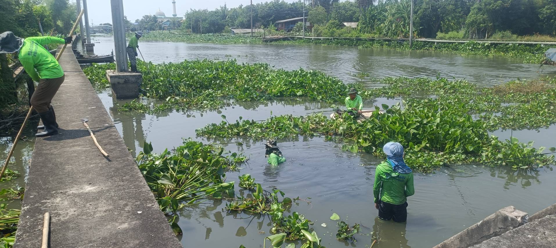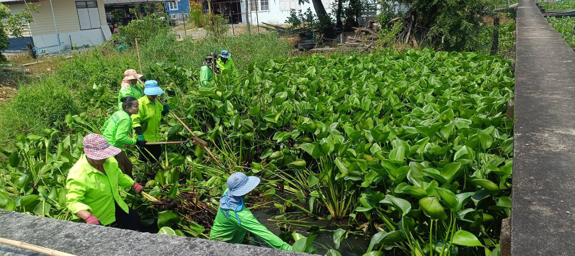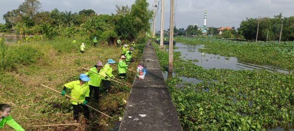 เจ้าหน้าที่ จัดเก็บวัชพืชตัดหญ้าคลองประเวศบุรีรมย์ พื้นที่เขตลาดกระบัง