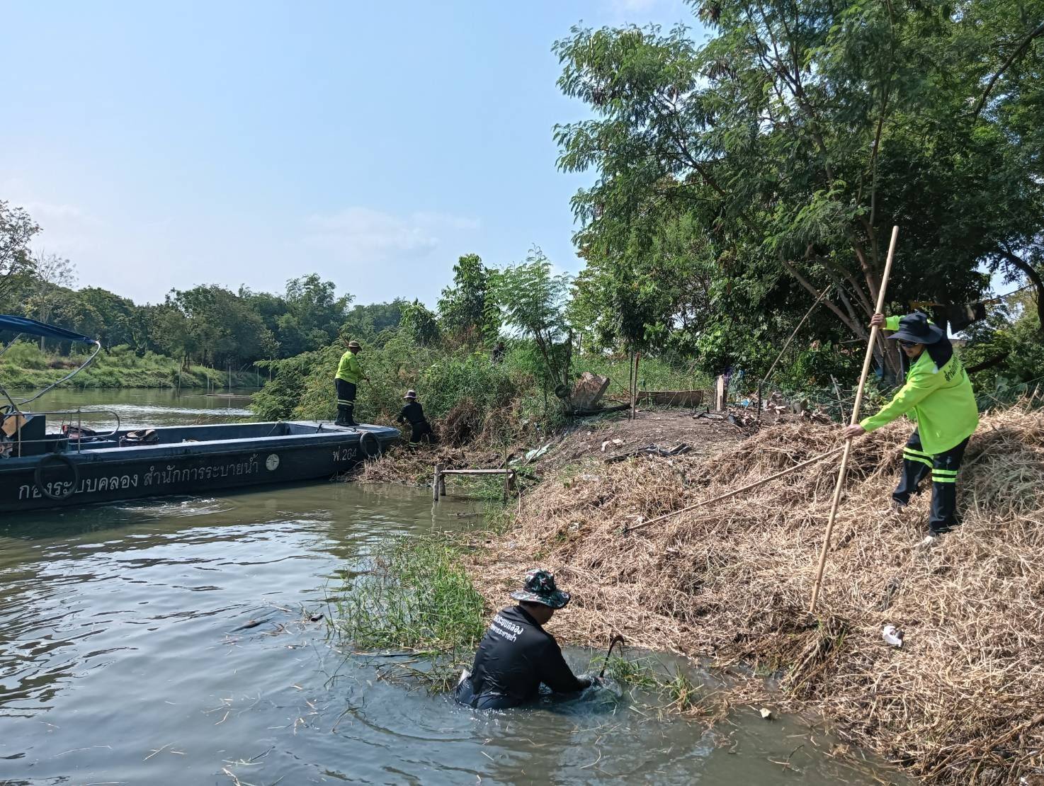 เจ้าหน้าที่ จัดเก็บขยะและวัชพืชคลองซอยที่8-คลองพระราชดำริ1พื้นที่เขตคลองสามวา เขตมีนบุรี