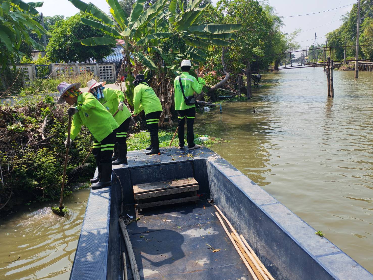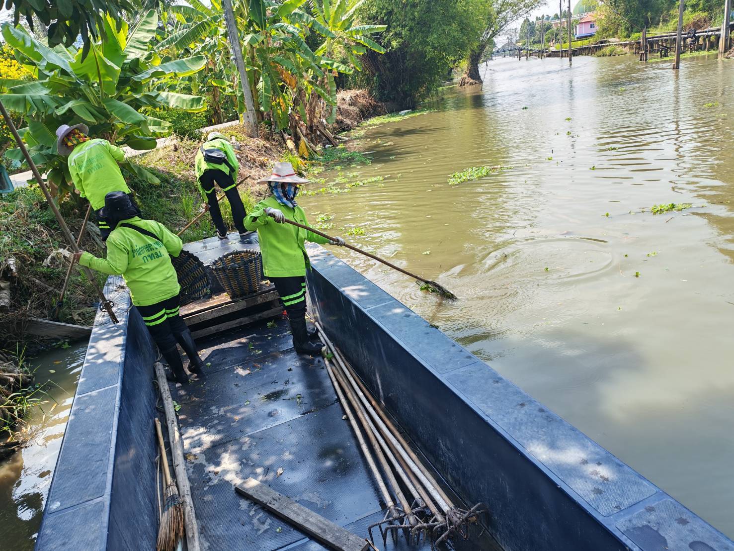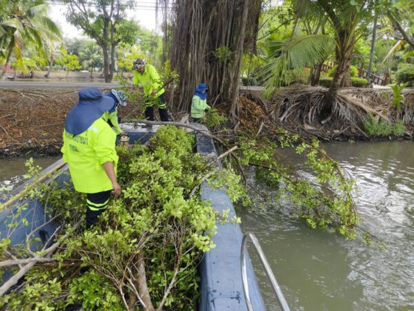 เจ้าหน้าที่ จัดเก็บขยะกำจัดวัชพืชคลองบางมะเขือ ช่วงสถานีสูบน้ำบางมะเขือ พื้นที่เขตวัฒนา 4 เมษายน 2026