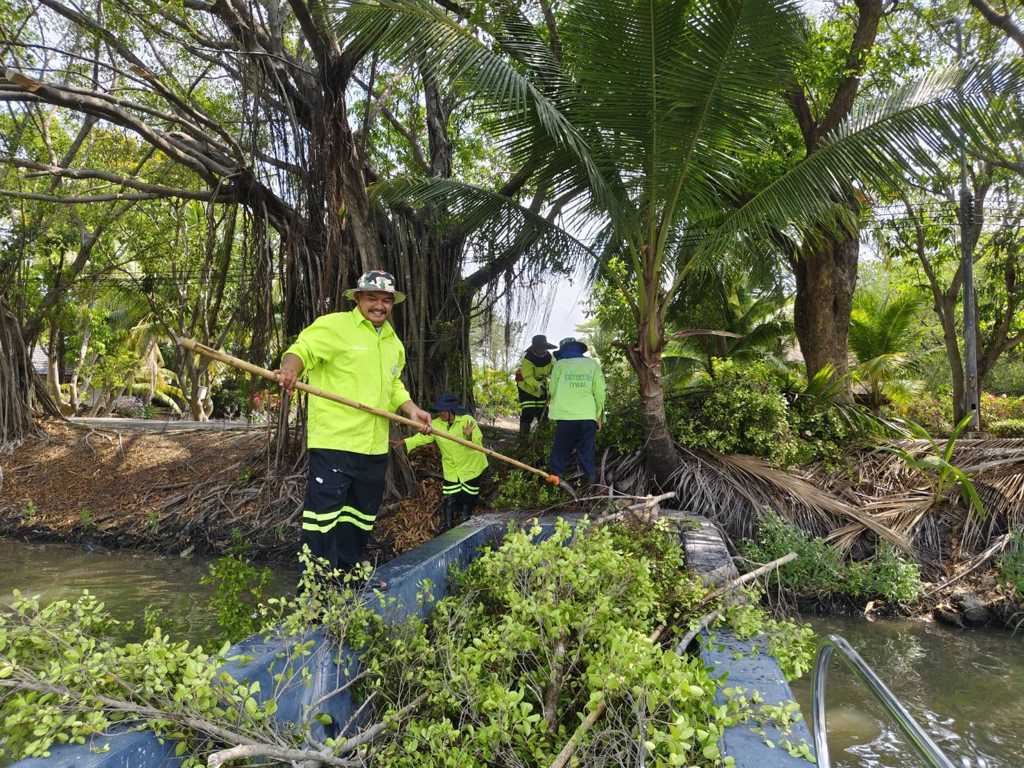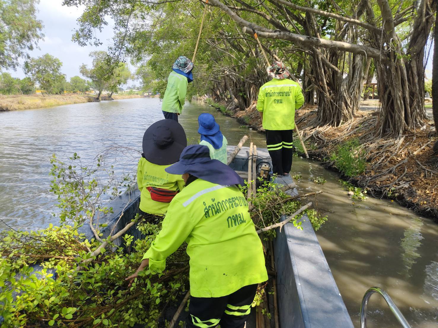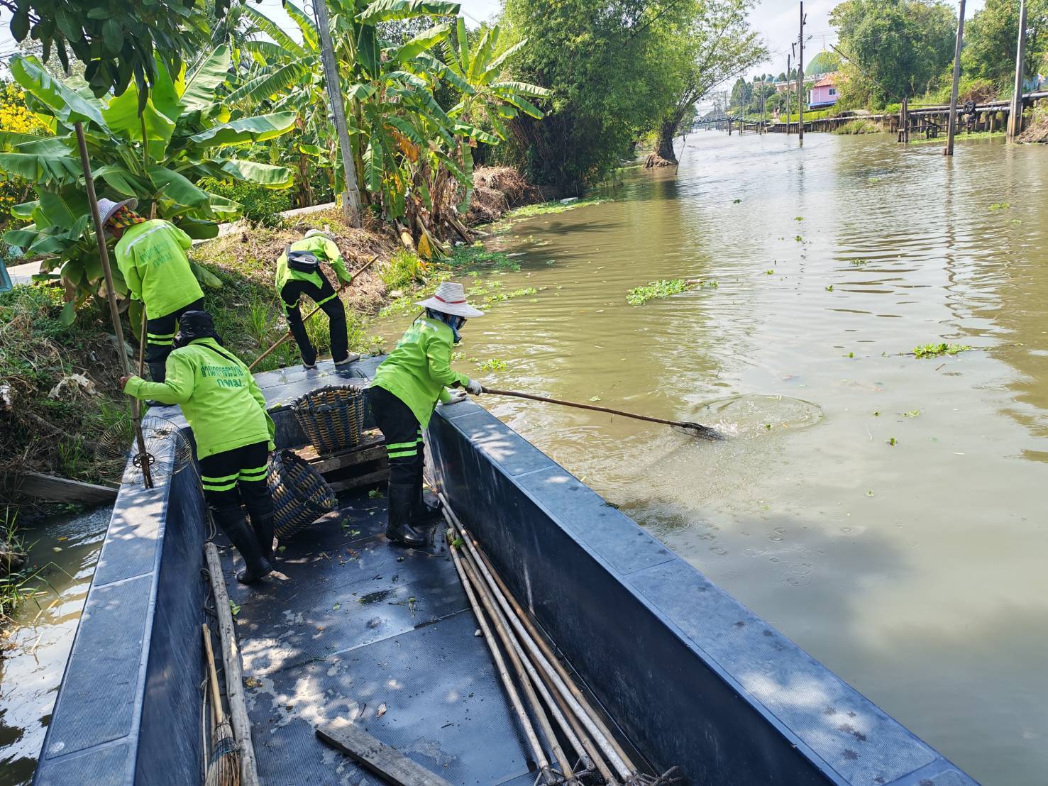 เจ้าหน้าที่ จัดเก็บขยะกำจัดวัชพืชคลองบางมะเขือ ช่วงสถานีสูบน้ำบางมะเขือ พื้นที่เขตวัฒนา 4 เมษายน 2026