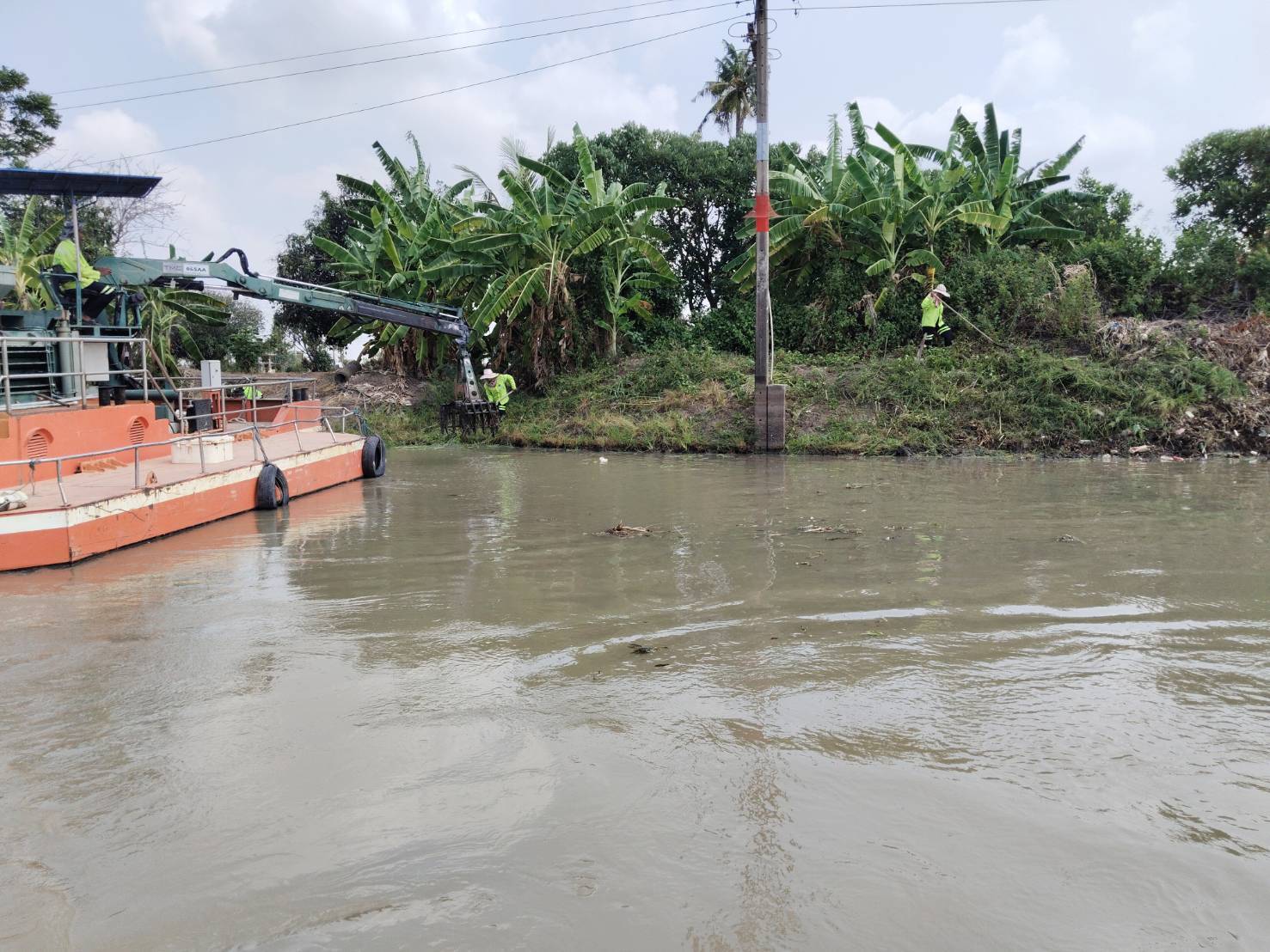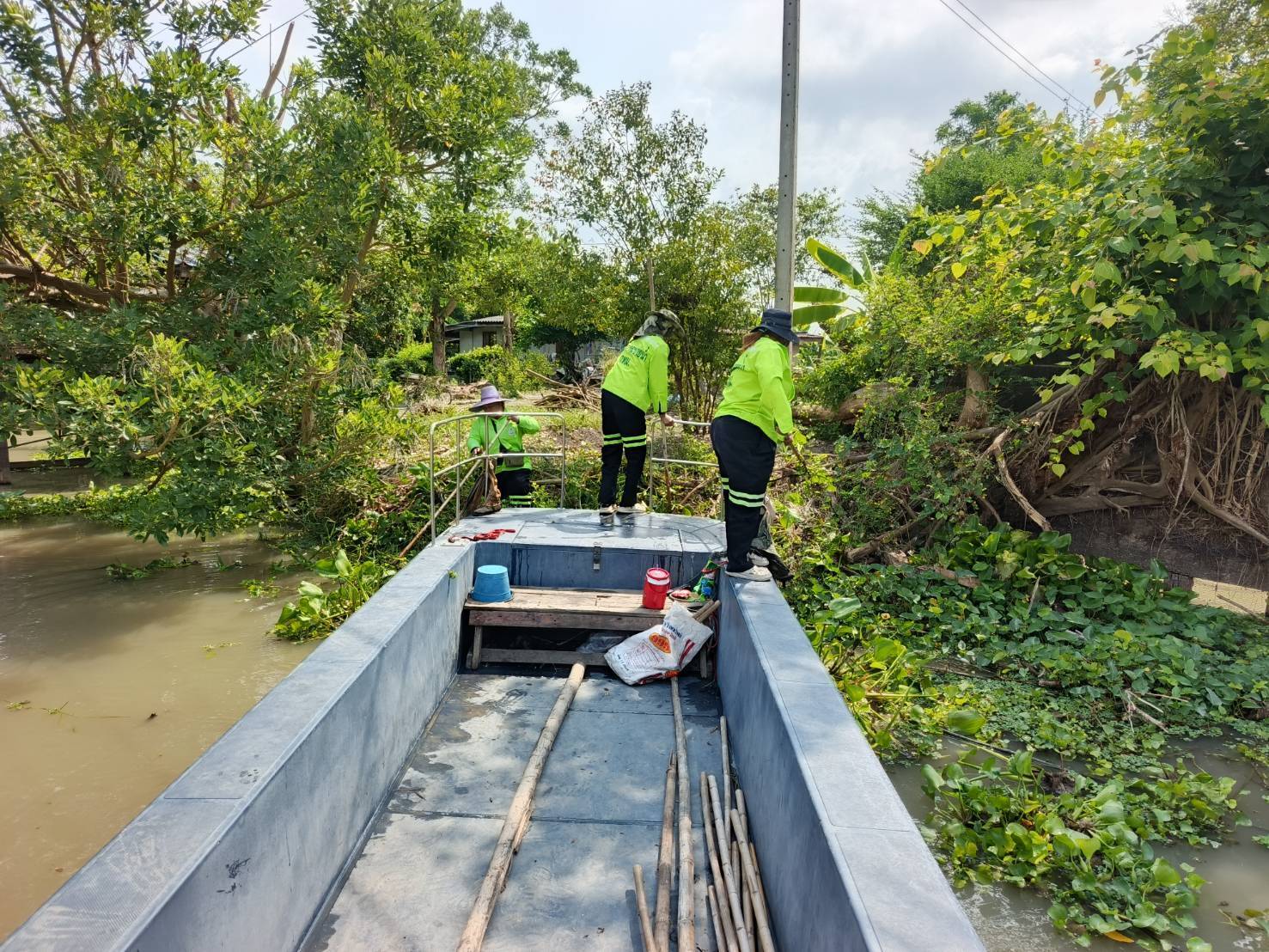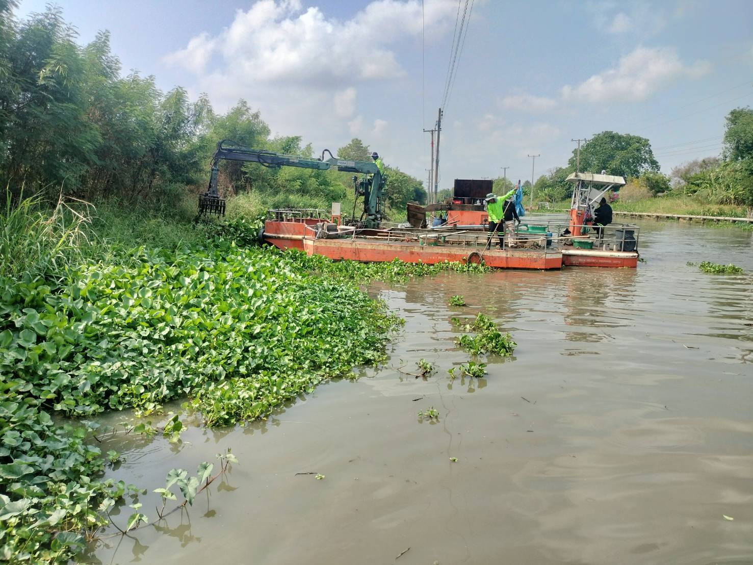 สำนักการระบายน้ำ จัดเก็บขยะและวัชพืช คลองหลวงแพ่ง-คลองนครเนื่องเขต พื้นที่เขตหนองจอก