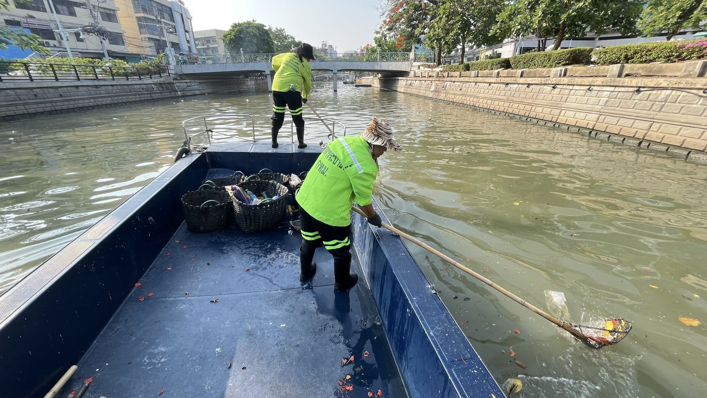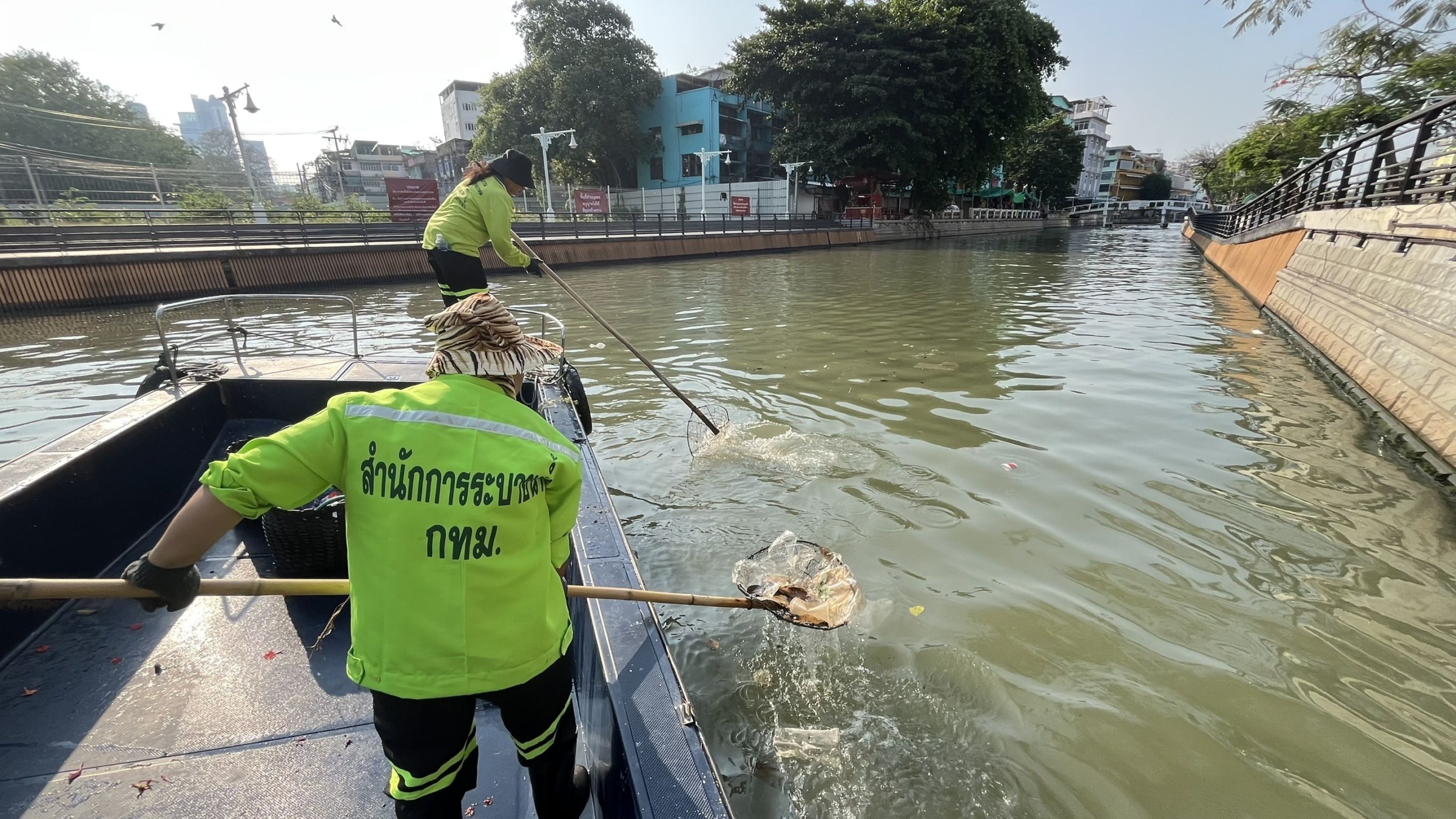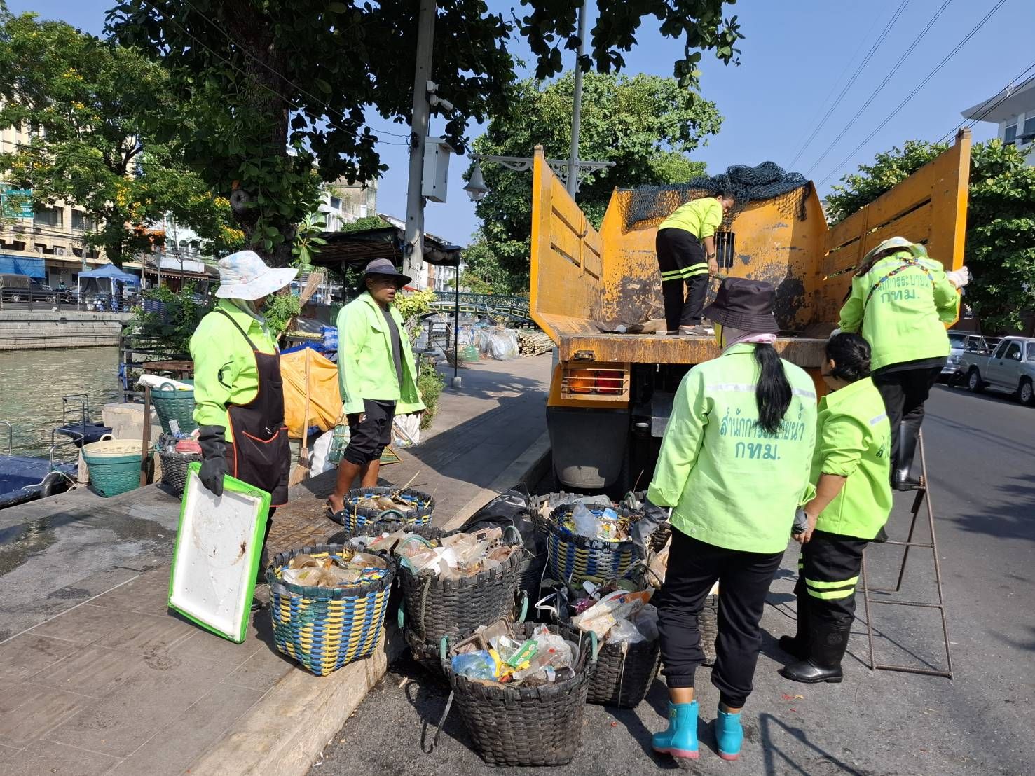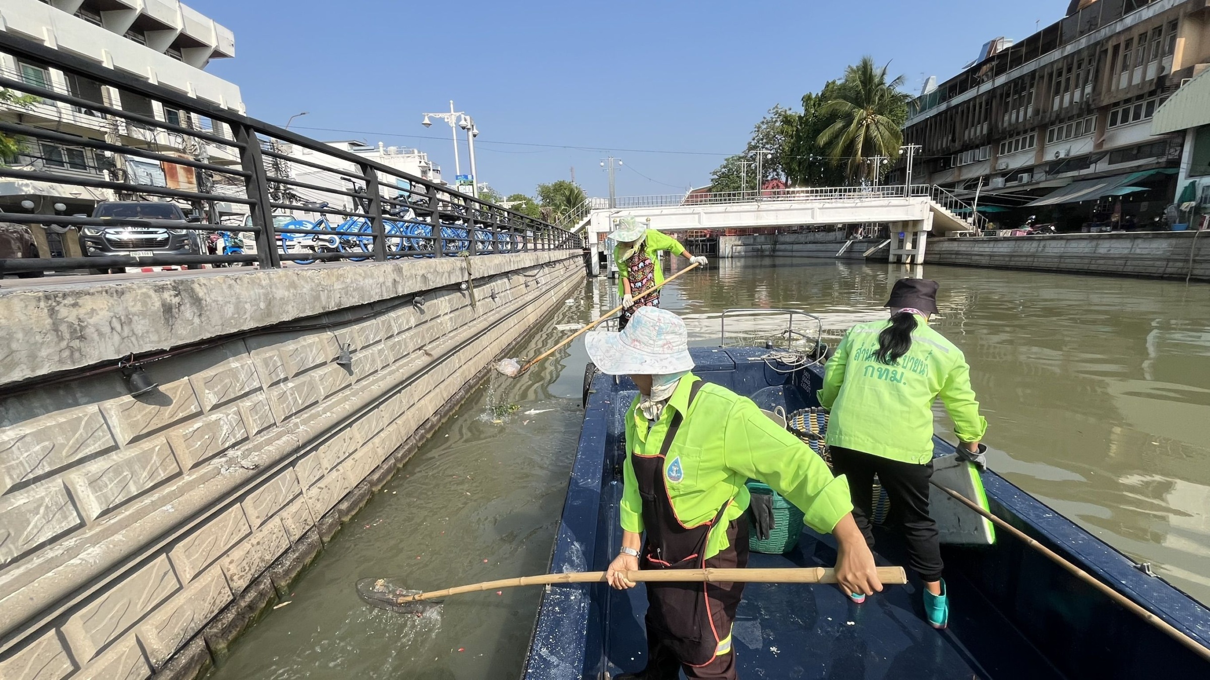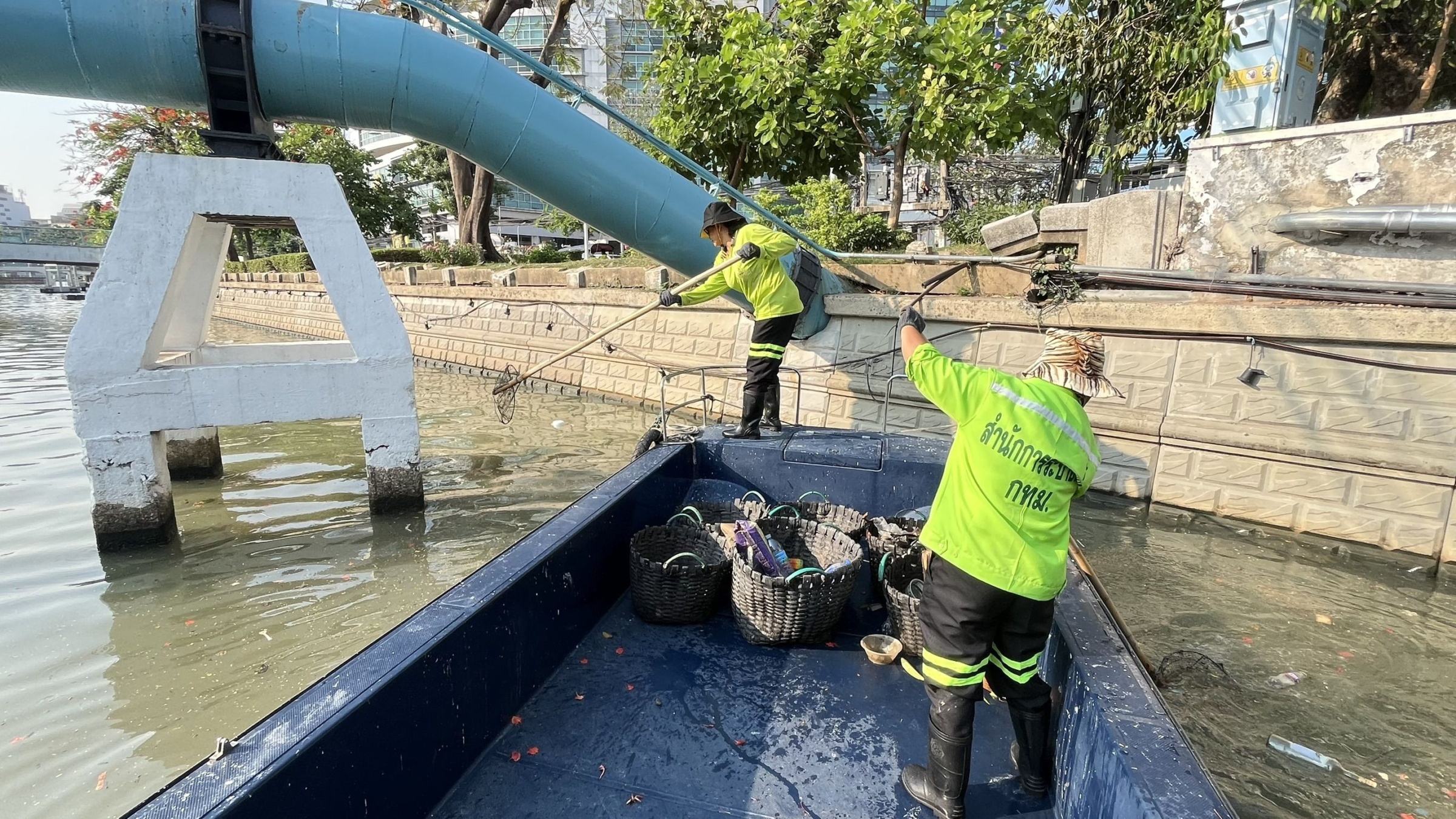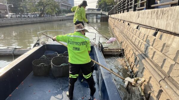 เจ้าหน้าที่ ตักเก็บขยะและวัชพืชเก็บจาก ปตร.เทเวศร์ตลอดช่วงสะพานมัฆวานถึงสี่แยกมหานาค พื้นที่เขตดุสิต เขตพระนคร เขตป้อมปราบศัตรูพ่าย