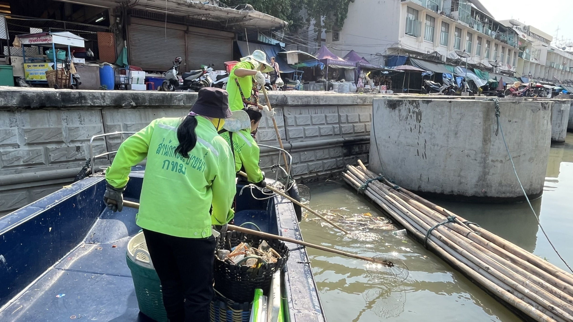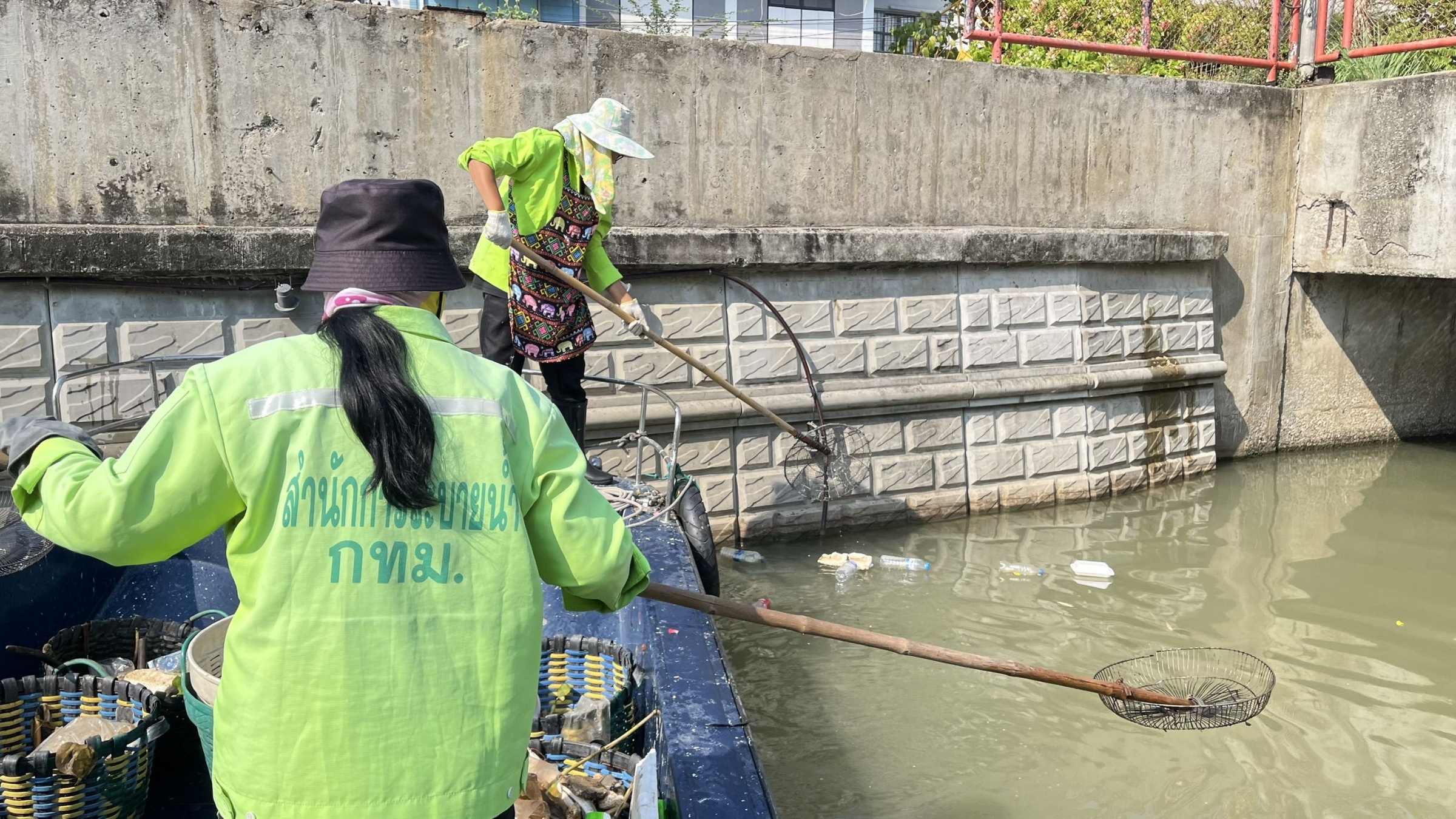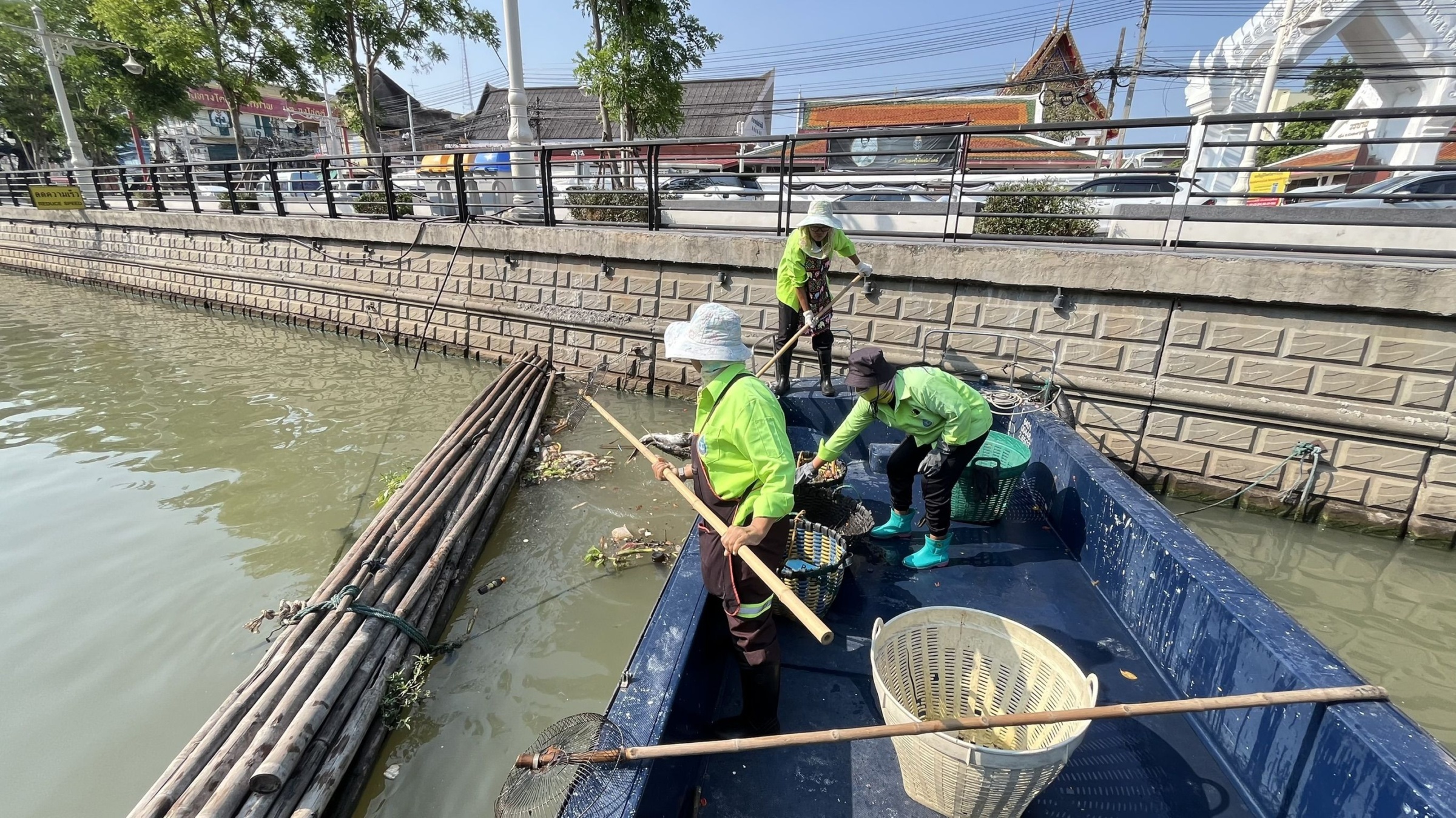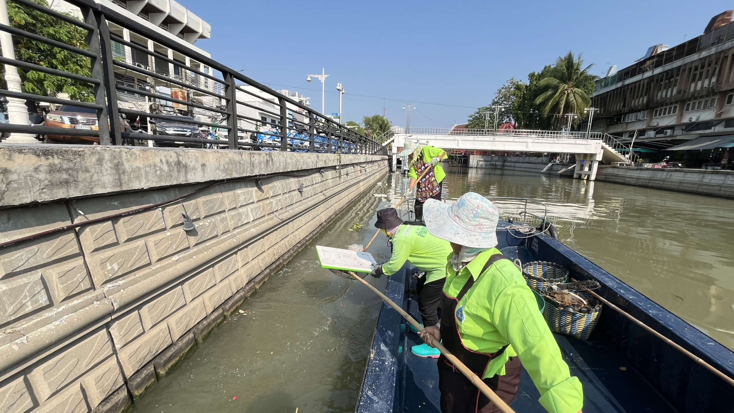 เจ้าหน้าที่ ตักเก็บขยะและวัชพืชเก็บจาก ปตร.เทเวศร์ตลอดช่วงสะพานมัฆวานถึงสี่แยกมหานาค พื้นที่เขตดุสิต เขตพระนคร เขตป้อมปราบศัตรูพ่าย