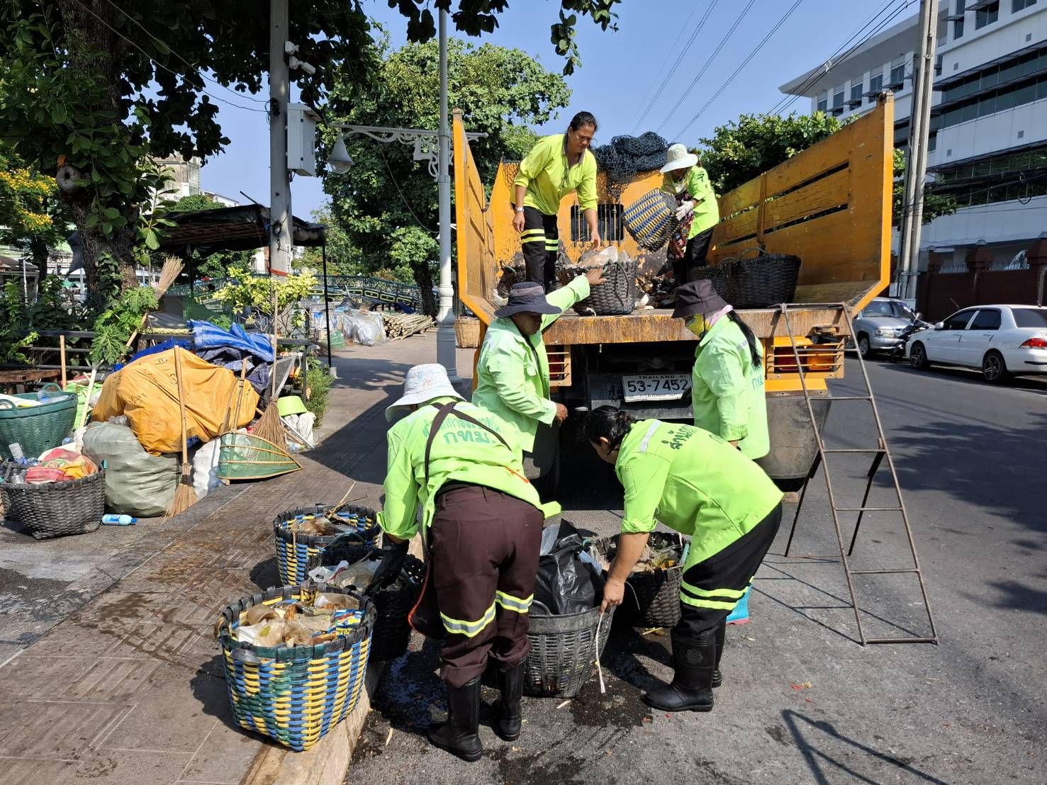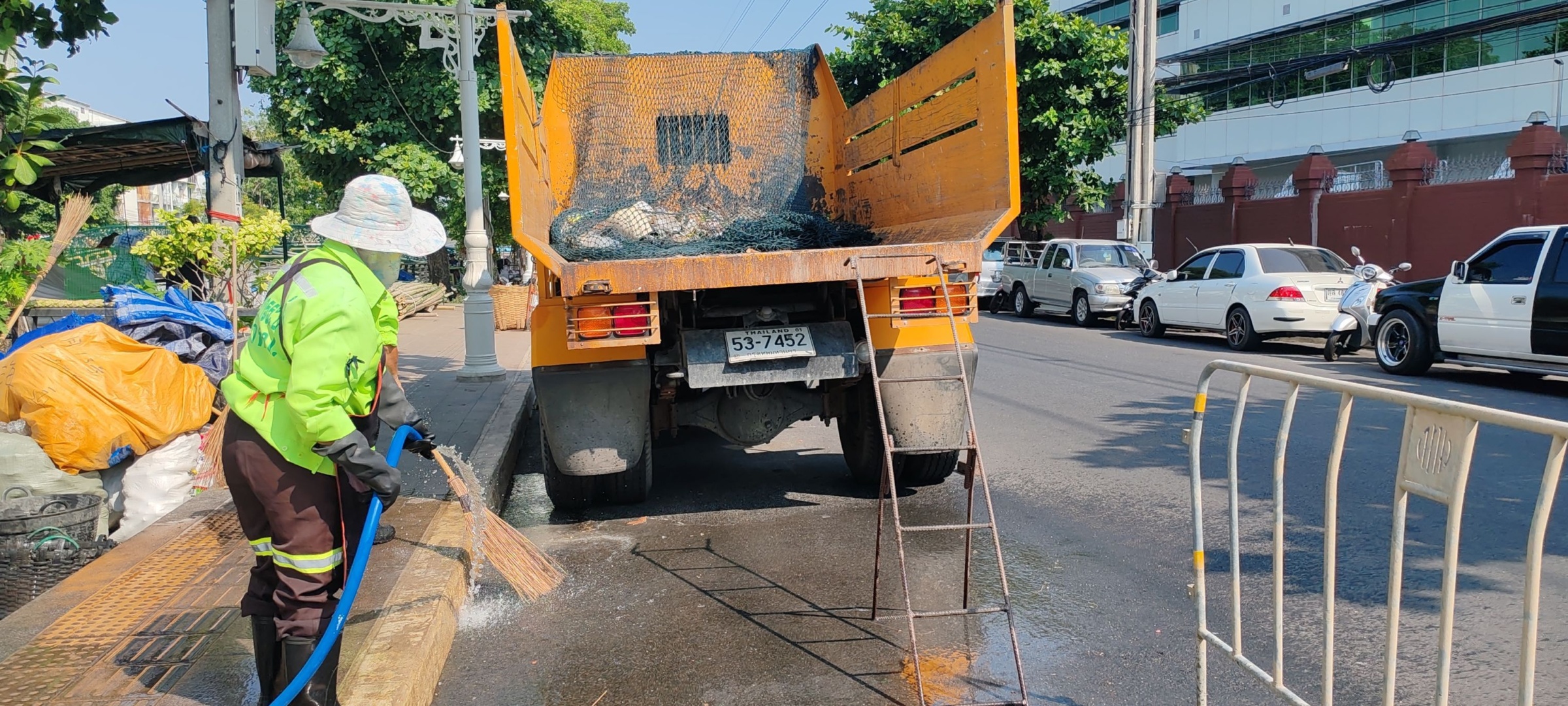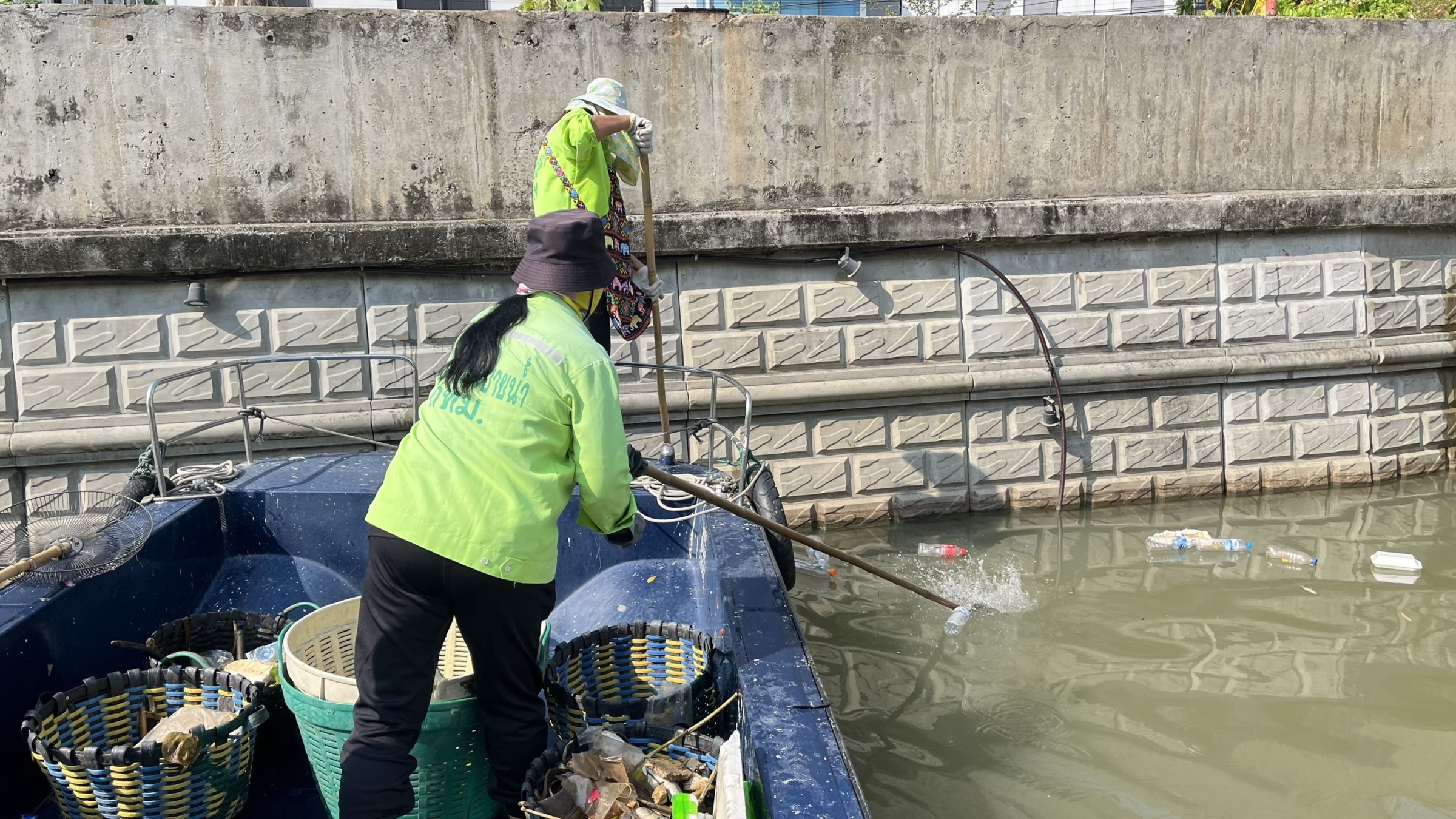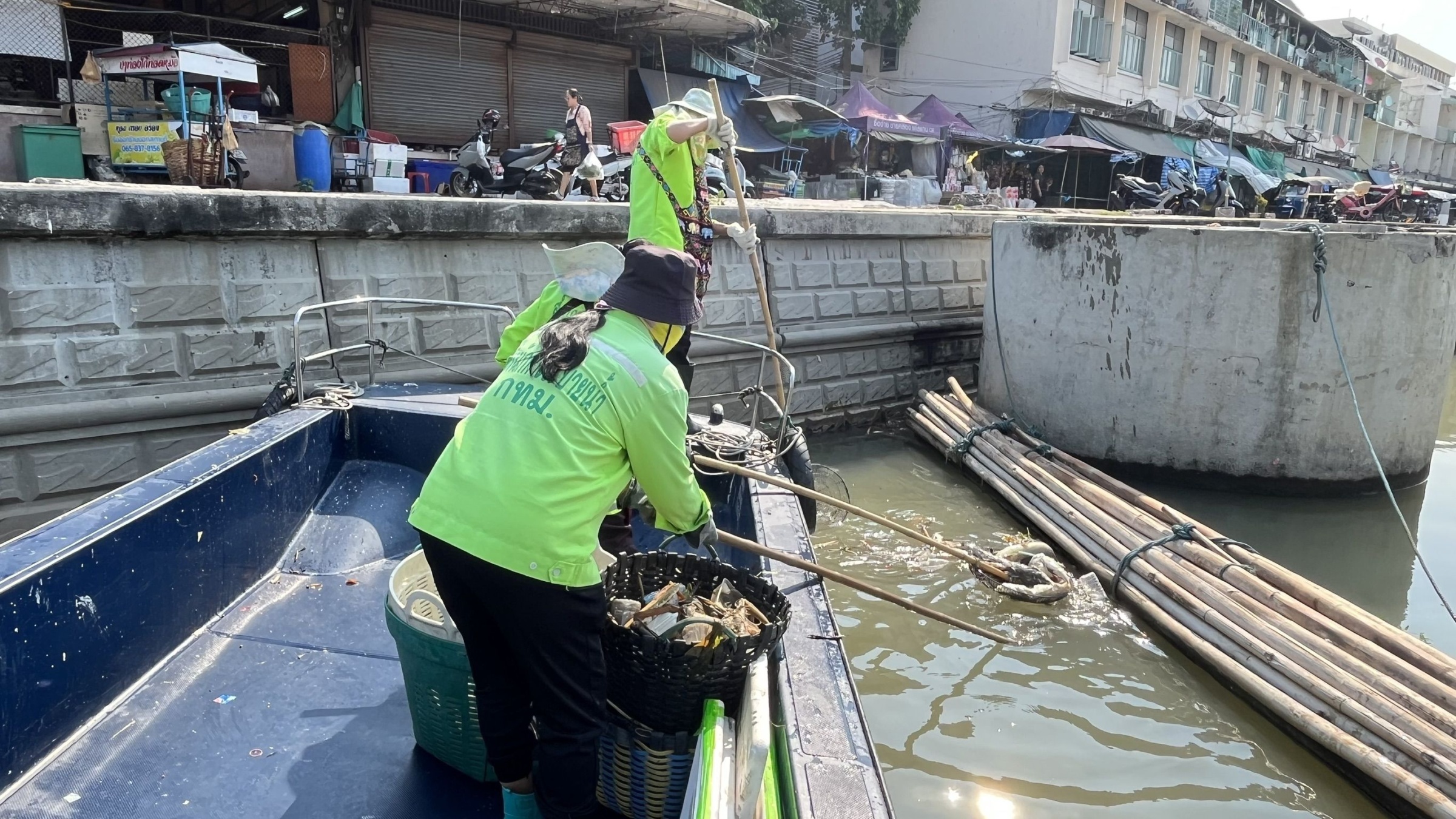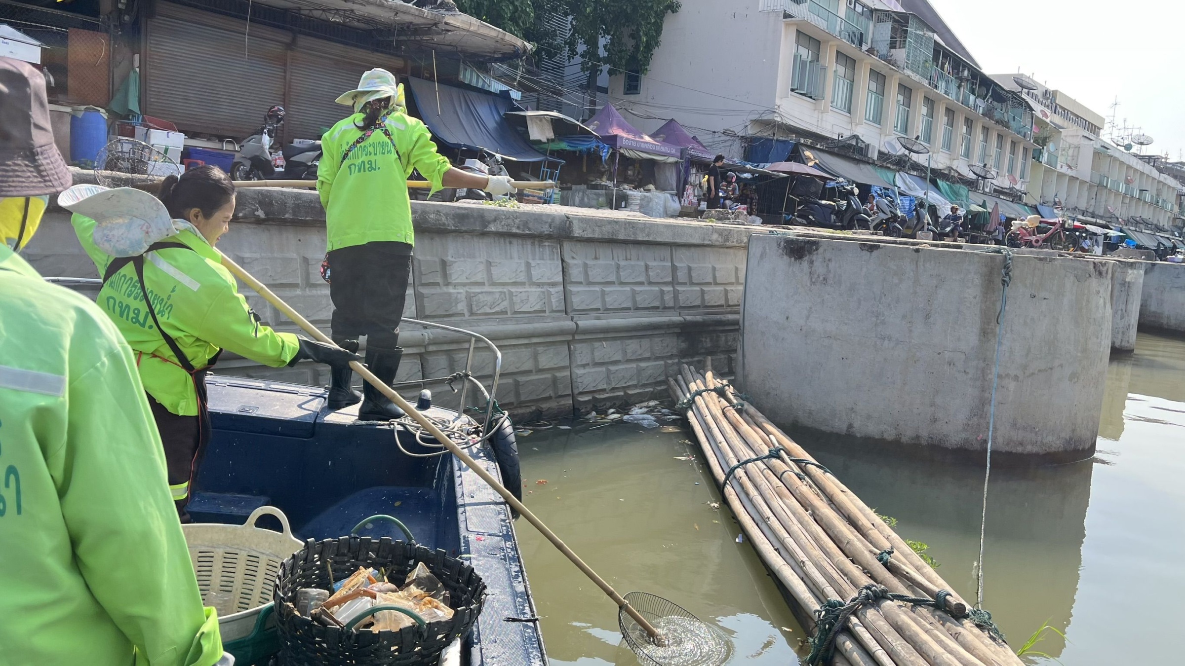 เจ้าหน้าที่ ตักเก็บขยะและวัชพืชเก็บจาก ปตร.เทเวศร์ตลอดช่วงสะพานมัฆวานถึงสี่แยกมหานาค พื้นที่เขตดุสิต เขตพระนคร เขตป้อมปราบศัตรูพ่าย