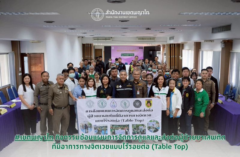 วันนี้ (26 มี.ค.69) เขตพญาไท โดยฝ่ายพัฒนาชุมชนและสวัสดิการสังคม จับมือสำนักอนามัย กรุงเทพมหานคร ศูนย์บริการสาธารณสุข 11 ประดิพัทธิ์ และสถานีตำรวจนครบาลท้องที่ ได้แก่ สถานีตำรวจนครบาลบางซื่อ สถานีตำรวจนครบาลดินแดง และสถานีตำรวจนครบาลพญาไท จัดกิจกรรมซ้อมแผนการจัดการดูแลและส่งต่อผู้ป่วยยาเสพติดที่มีอาการทางจิตเวชแบบไร้รอยต่อ (Table Top) โดยมีวัตถุประสงค์เพื่อให้ประชาชนมีความรู้ความเข้าใจการเตรียมความพร้อมระงับเหตุและดูแลผู้ป่วยกรณีเกิดสถานการณ์บุคคลคุ้มคลั่งหรือผู้ป่วยที่มีอาการทางจิตเวชจากการใช้สารเสพติด โดยเน้นกระบวนการส่งต่อและดูแลแบบบูรณาการระหว่างภาคีเครือข่ายที่เกี่ยวข้องและชุมชนในพื้นที่