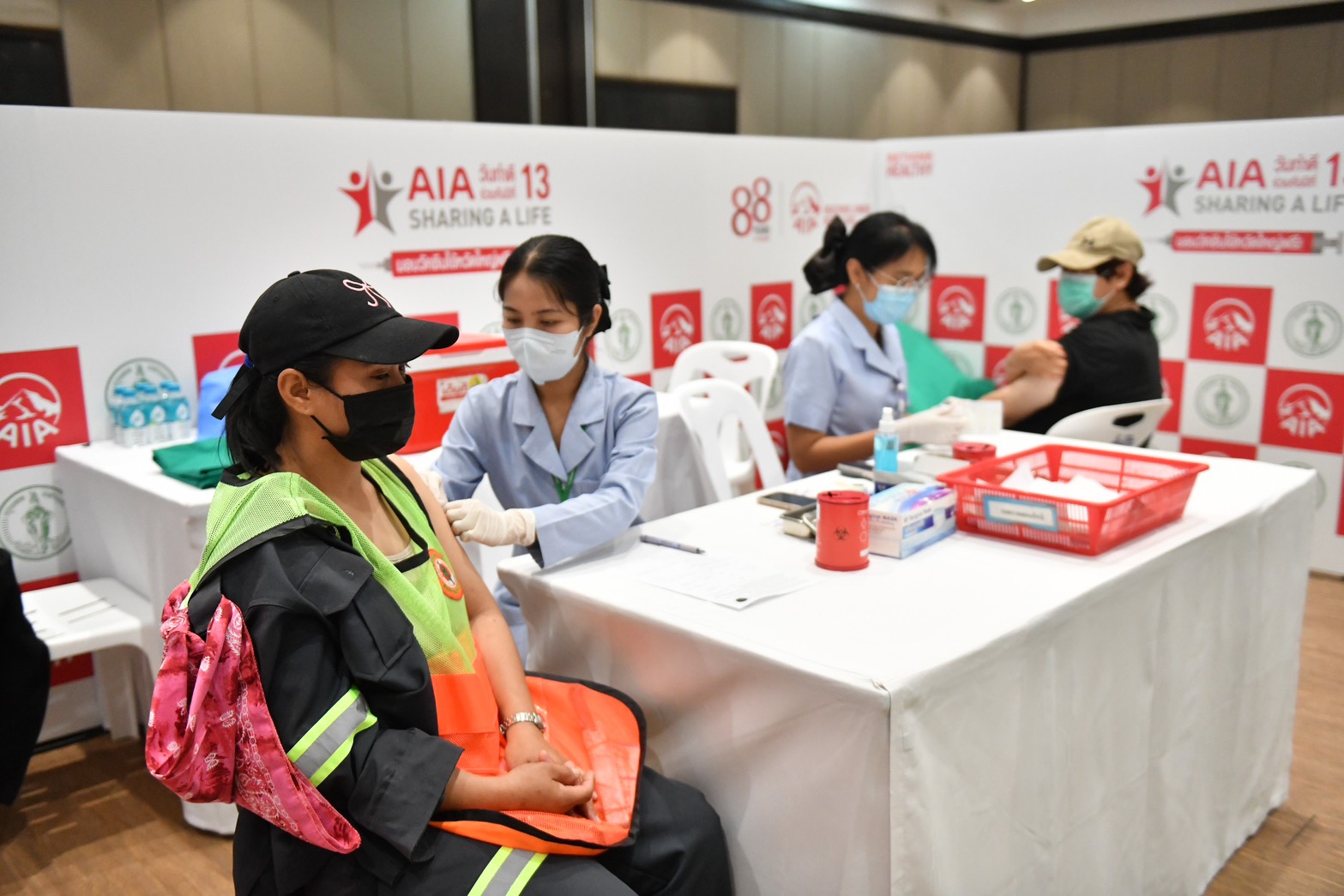 “ต้องขอขอบคุณ AIA ที่สนับสนุนวัคซีนจำนวน 12,000 โดส เพื่อฉีดให้กับเจ้าหน้าที่ของกรุงเทพมหานคร โดยเฉพาะพนักงานด่านหน้าที่ปฏิบัติงานใกล้ชิดชุมชน และมีความเสี่ยงสูง หรือ “พี่เก็บ-พี่กวาด-พี่ซ่อม-พี่แซม” ซึ่งถือเป็นกลุ่มสำคัญที่ต้องได้รับการดูแล โดยเริ่มฉีด 2,000 เข็มแรกในวันนี้ และจะทยอยกระจายอีก 10,000 เข็ม ครอบคลุมทั้ง 50 เขต เพื่อดูแลเจ้าหน้าที่ในพื้นที่อย่างทั่วถึง” ผู้ว่าฯ ชัชชาติ กล่าว