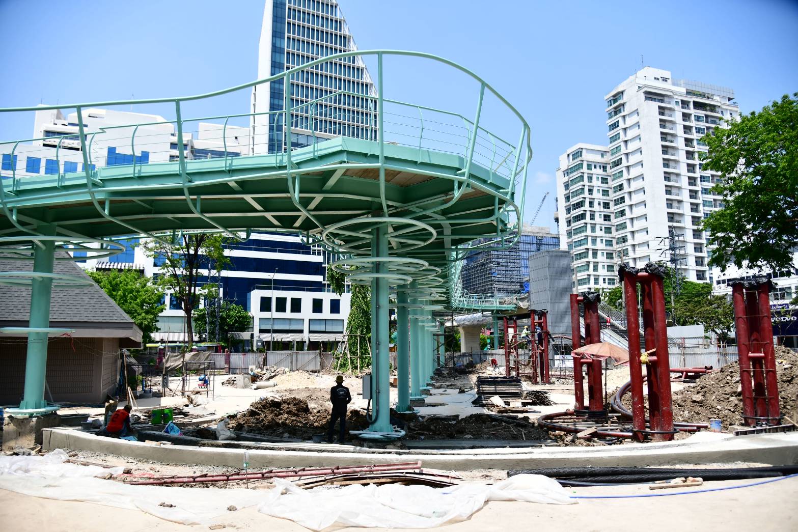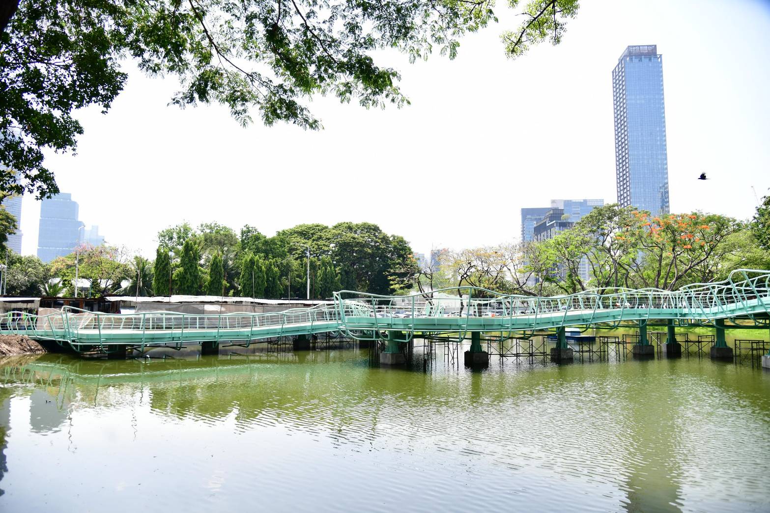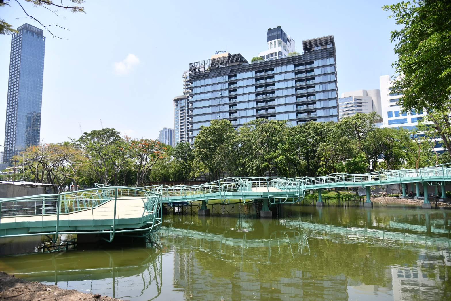 กรุงเทพมหานคร โดยสำนักสิ่งแวดล้อม ดำเนินโครงการก่อสร้างปรับปรุงสวนลุมพินี (สะพานเขียว) เขตปทุมวัน ดำเนินการโดยบริษัท ศิริเลิศ คอร์ปอเรชั่น จำกัด เริ่มต้นสัญญาวันที่ 17 พฤษภาคม 2568 สิ้นสุดสัญญาวันที่ 11 พฤษภาคม 2569 ระยะเวลาการก่อสร้าง 360 วัน ประกอบด้วย 1.งานรื้อถอนอาคารสถานีวิทยุและรั้ว 2.งานก่อสร้างทางเชื่อมสะพานเขียว ระยะทาง 250 เมตร งานโครงสร้างฐานรากสะพาน 3.งานปรับปรุงอาคารสถานีวิทยุ จำนวน 3 หลัง ได้แก่ งานอาคารเก็บของ งานอาคารสุขาสาธารณะ งานอาคารสำนักงาน 4.งานพิเศษ ได้แก่ รั้วชั่วคราว นั่งร้านกลางน้ำ ปัจจุบันในภาพรวมโครงการก่อสร้างปรับปรุงสวนลุมพินี (สะพานเขียว) มีความคืบหน้าตามแผนงาน 83.91% ส่วนความคืบหน้างานก่อสร้าง 73.94% ล่าช้ากว่าแผนงาน 9.97% อย่างไรก็ตาม จากสถานการณ์ด้านพลังงานส่งผลกระทบต่อการดำเนินงาน ทำให้การขนส่งสินค้าล่าช้ากว่ากำหนด ประกอบกับการขาดแคลนน้ำมันในบางช่วง ส่งผลให้เครื่องจักรไม่สามารถทำงานได้อย่างต่อเนื่อง นอกจากนี้ สินค้าที่มีวัตถุดิบจากเคมีภัณฑ์ปิโตรเลียมและสีเกิดภาวะขาดแคลนในตลาด จึงทำให้ระยะเวลาในการสั่งซื้อยาวนานกว่าปกติ