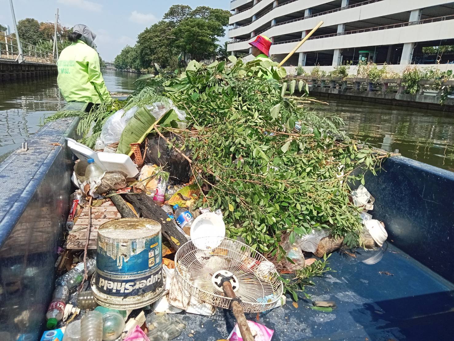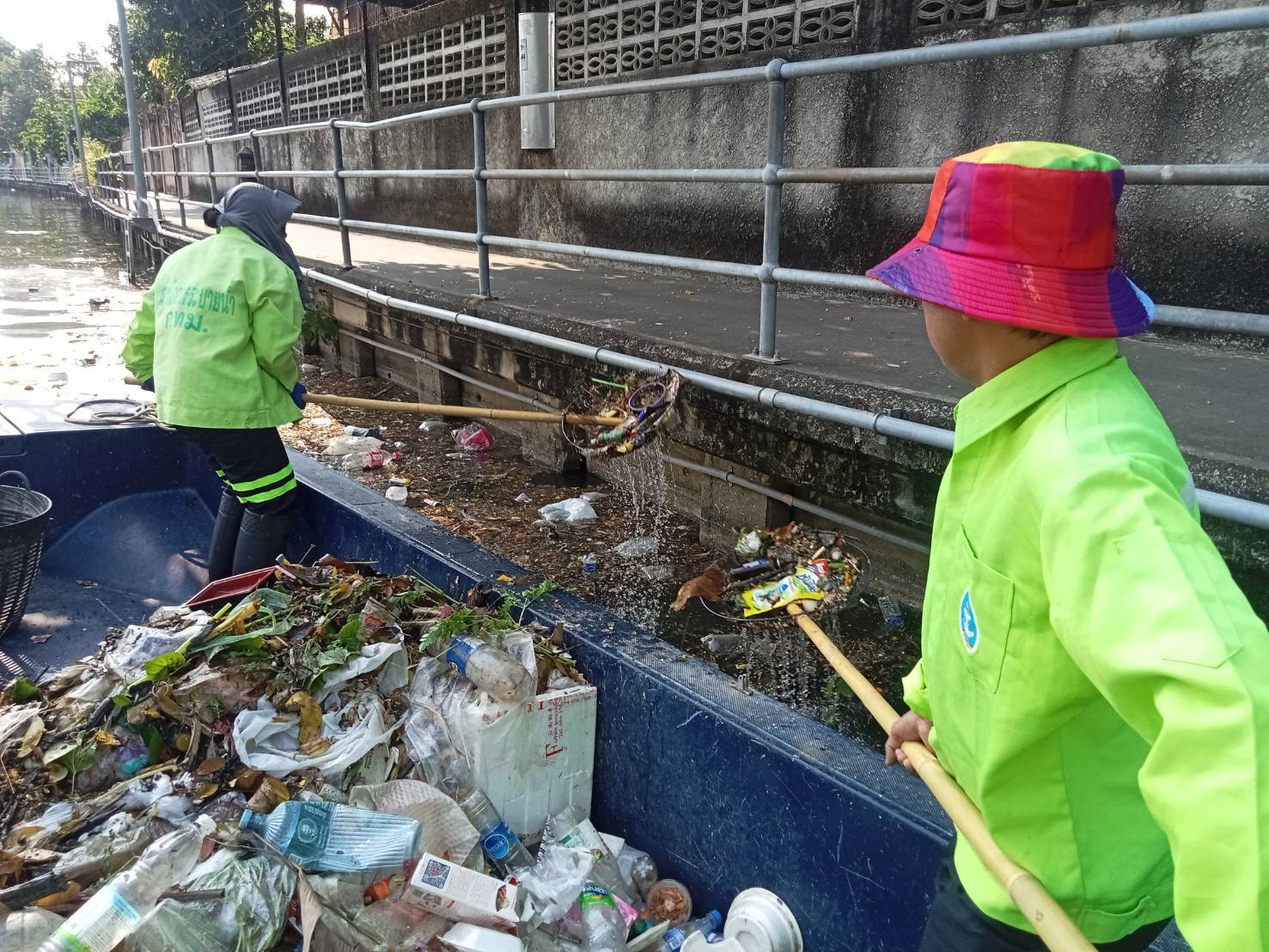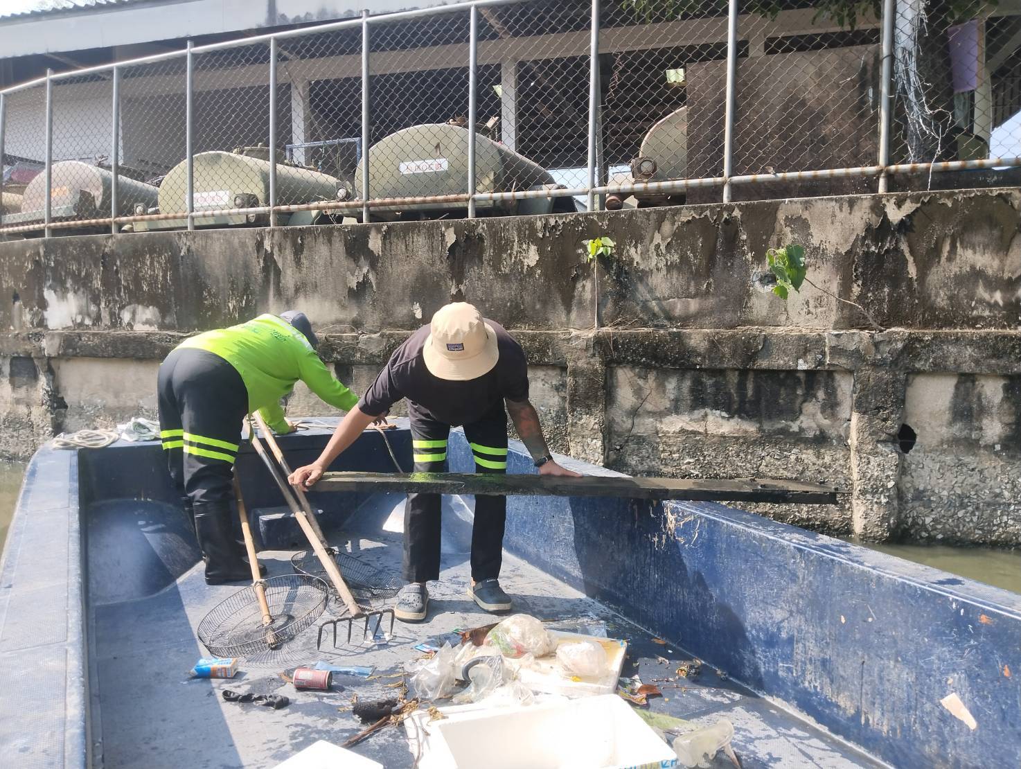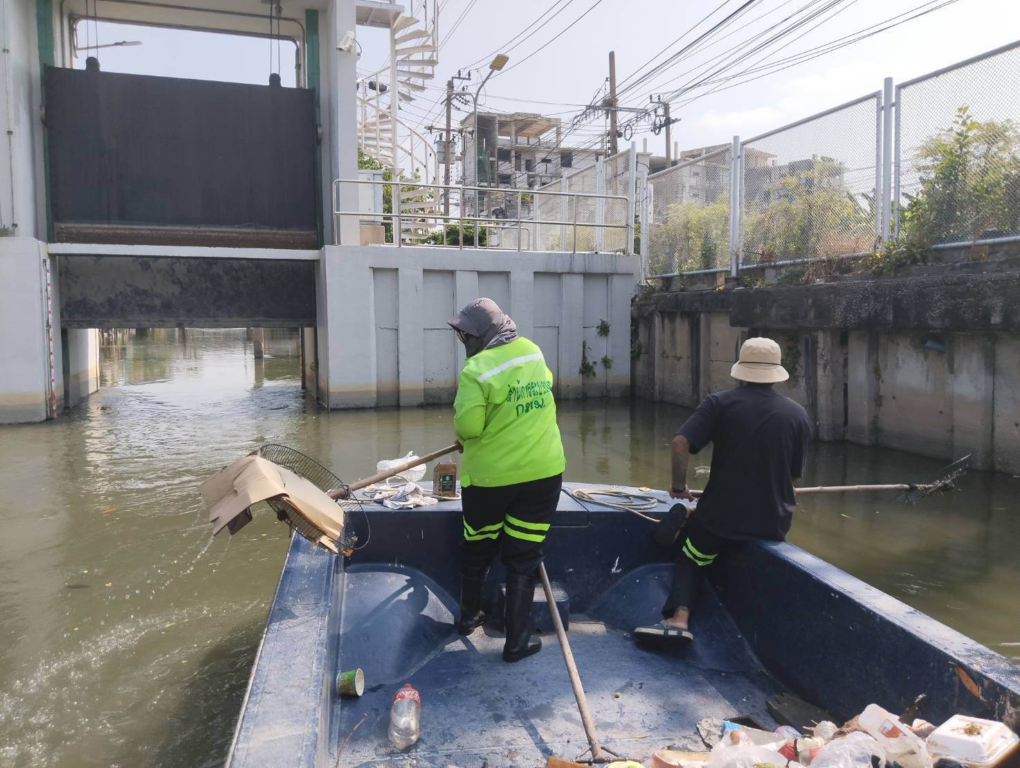 เจ้าหน้าที่ ตักขยะวัชพืชแพดักขยะหน้า ปตร.แสนเลิส แพดักขยะช่วงข้างวัดมักกะสัน พื้นที่เขตวัฒนา 5 เมษายน 2026