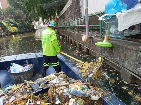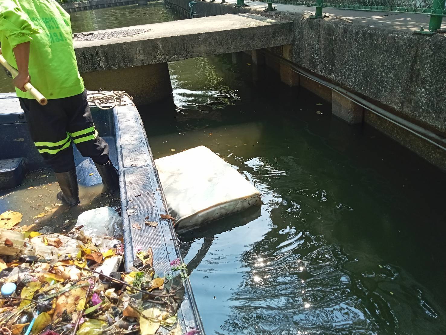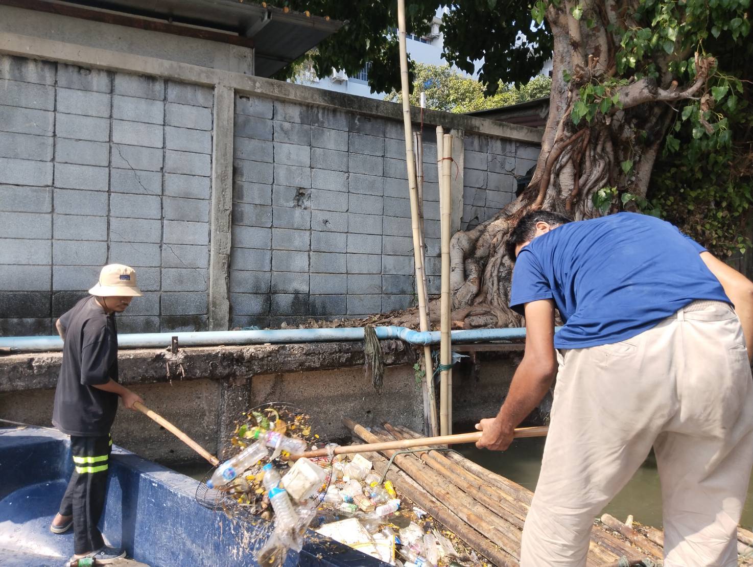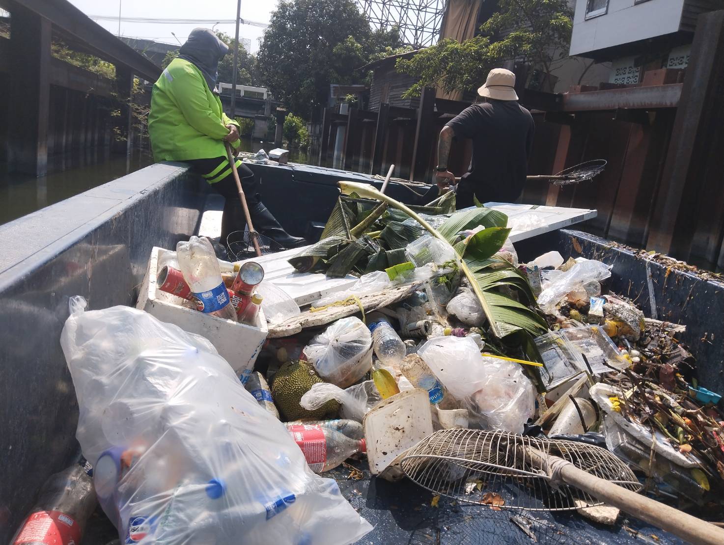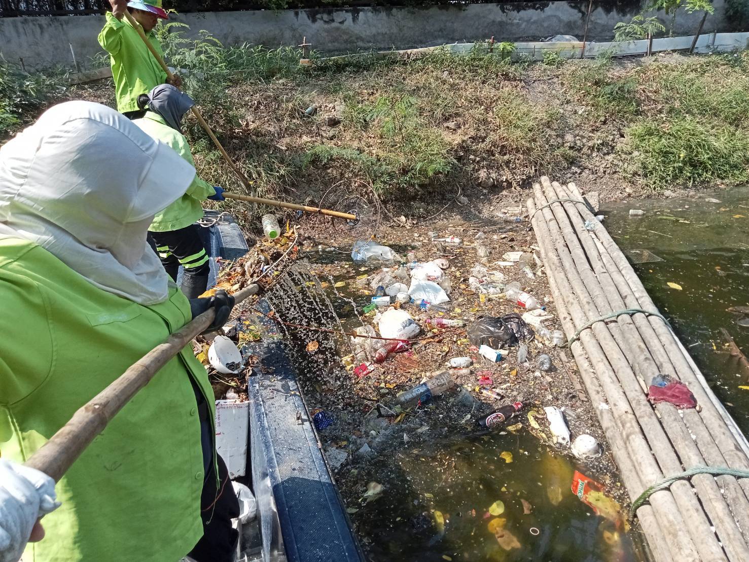 เจ้าหน้าที่ ตักขยะวัชพืชแพดักขยะหน้า ปตร.แสนเลิส แพดักขยะช่วงข้างวัดมักกะสัน พื้นที่เขตวัฒนา 5 เมษายน 2026