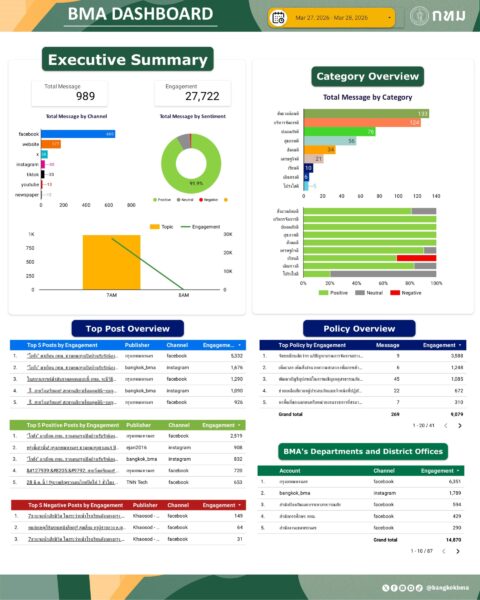 ภาพรวมการกล่าวถึงกรุงเทพมหานครในสื่อออนไลน์ วันที่ 28 มี.ค. 69