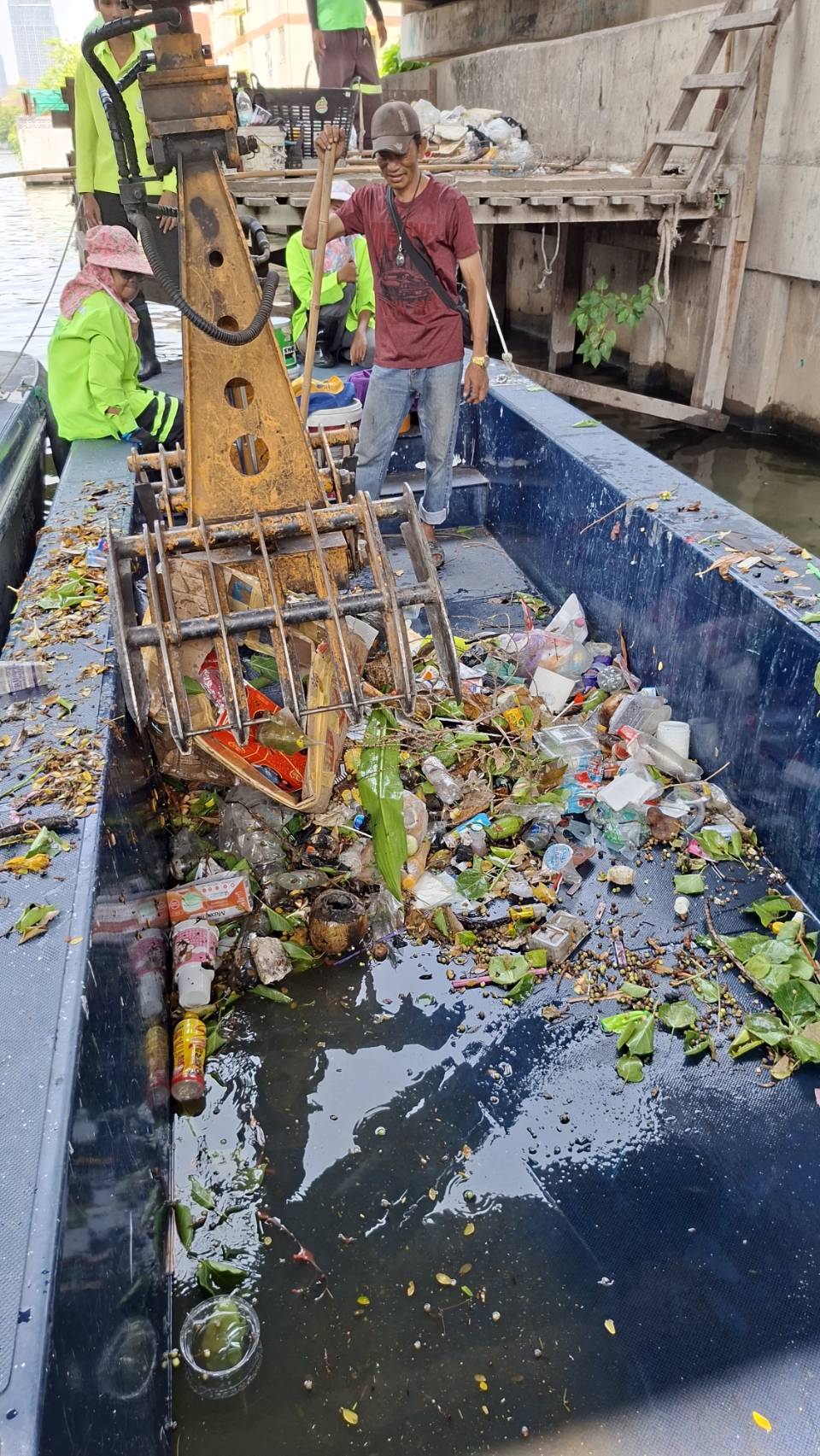เจ้าหน้าที่ ตักขยะวัชพืชคลองแสนแสบ-คลองตัน ช่วงท่าเรือวิทยุถึงคลองพระโขนง พื้นที่เขตวัฒนา