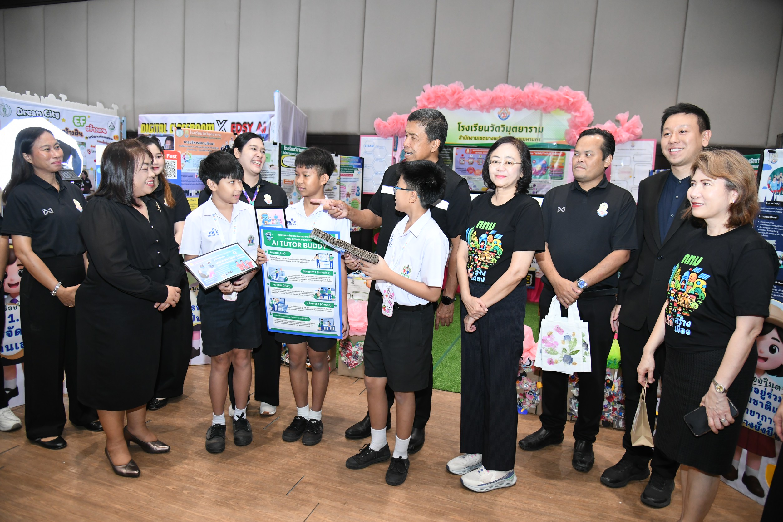 ในการนี้ คณะผู้บริหาร ผู้บริหารจากสำนักการศึกษา ผู้อำนวยการเขต และบุคลากรทางการศึกษา ร่วมรับฟังทิศทางก้าวต่อไปของโรงเรียน และ เยี่ยมชมนิทรรศการจากโรงเรียนต่างๆ อาทิ โรงเรียนบ้านบางกะปิ โรงเรียนหนองจอกวิทยานุสรณ์ โรงเรียนวัดปากบ่อ ณ ห้องบางกอก อาคารไอราวัตพัฒนา ศาลาว่าการกรุงเทพมหานคร 2 เขตดินแดง