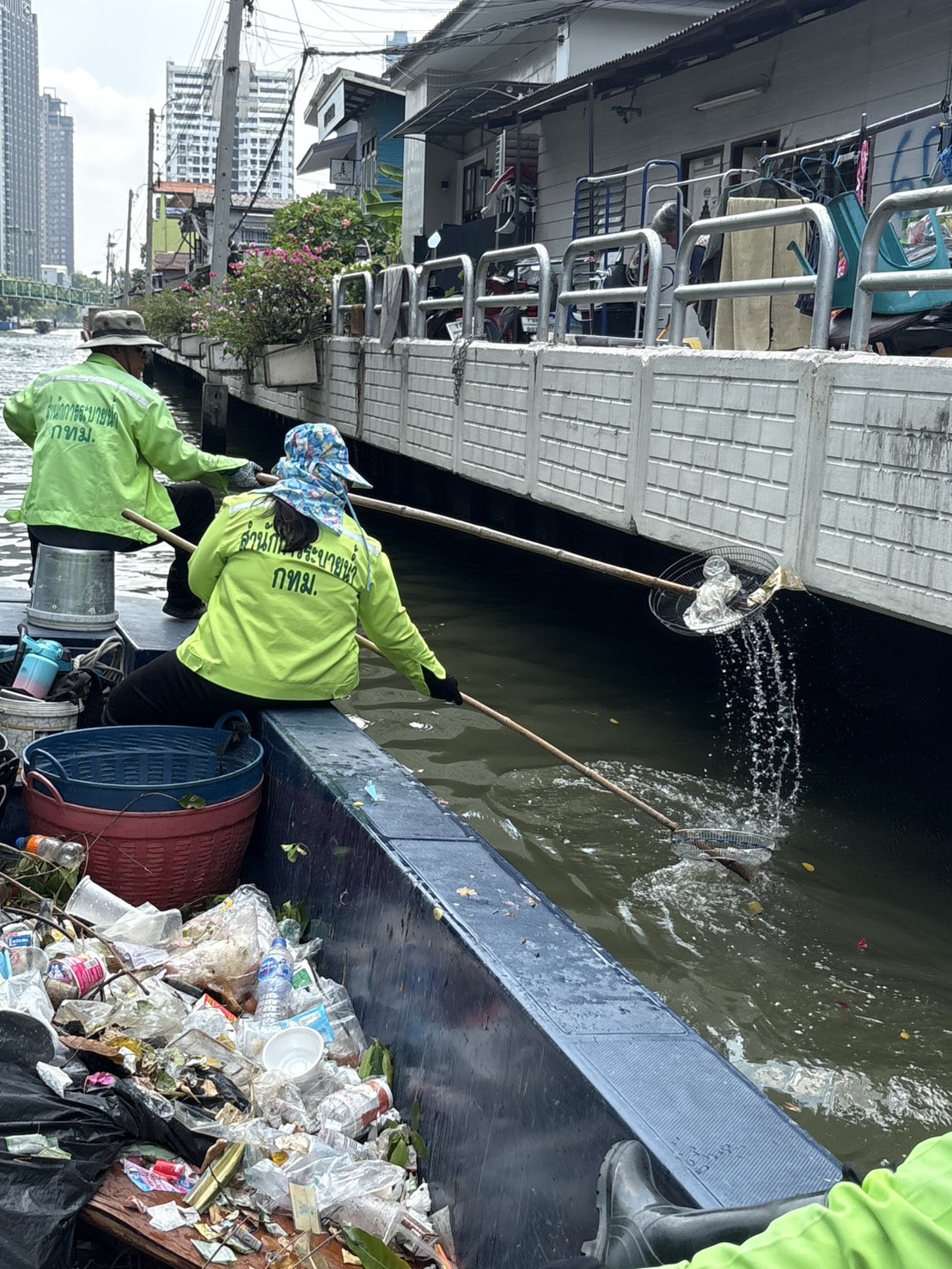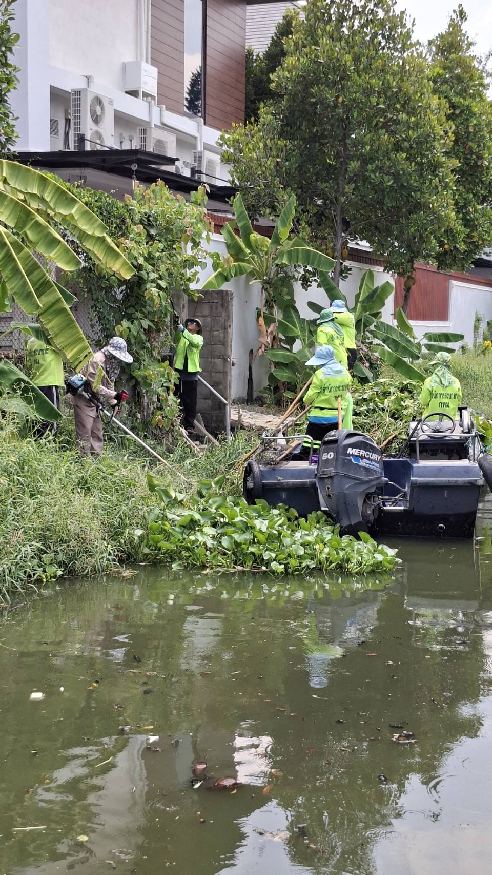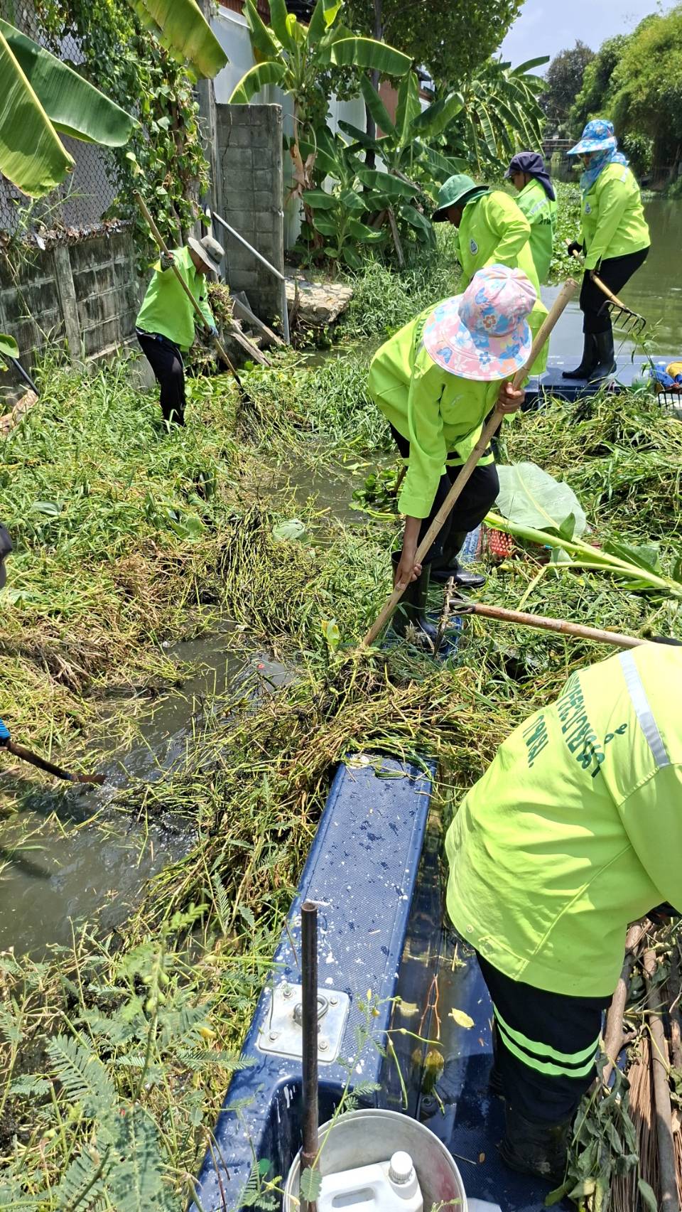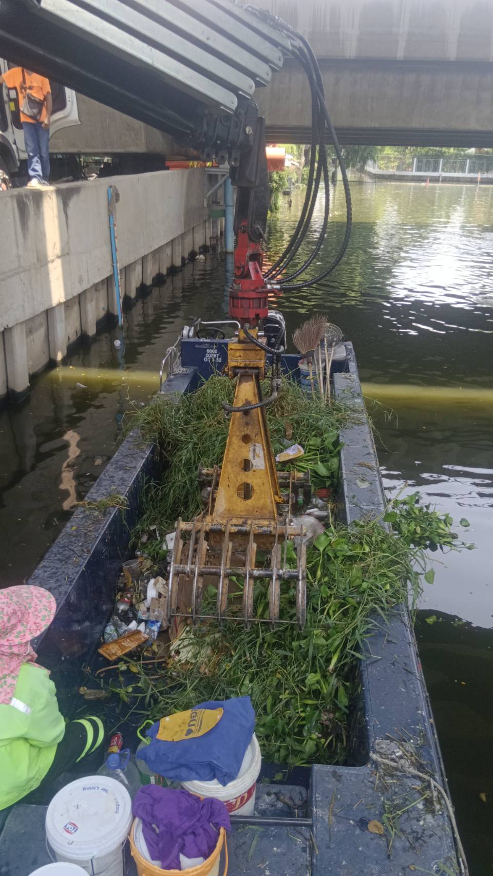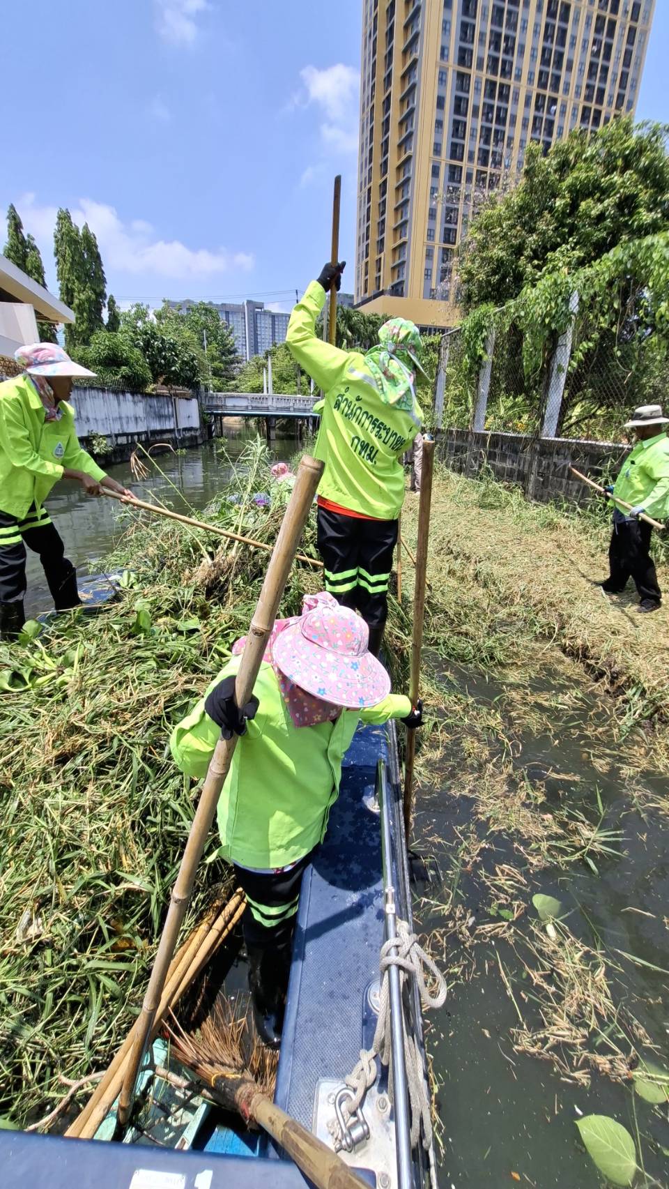 เจ้าหน้าที่ ตักขยะวัชพืช คลองแสนแสบ-คลองตันและคลองสะแก พื้นที่เขตวัฒนาและเขตสวนหลวง