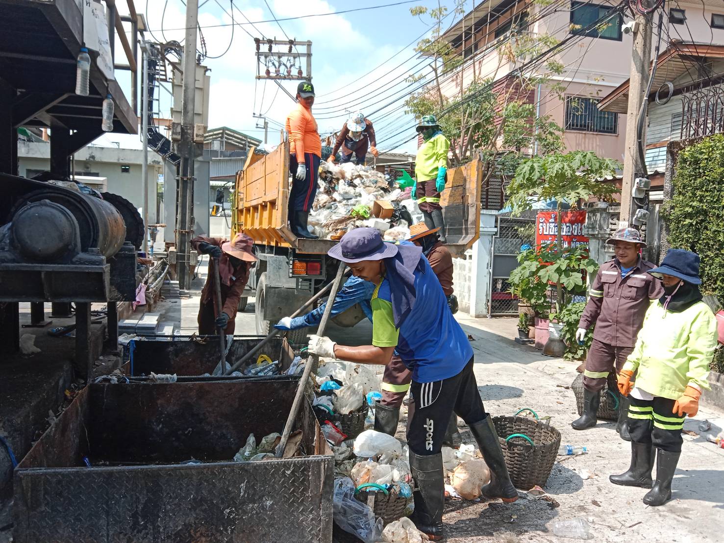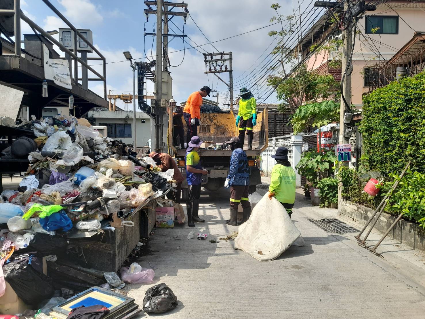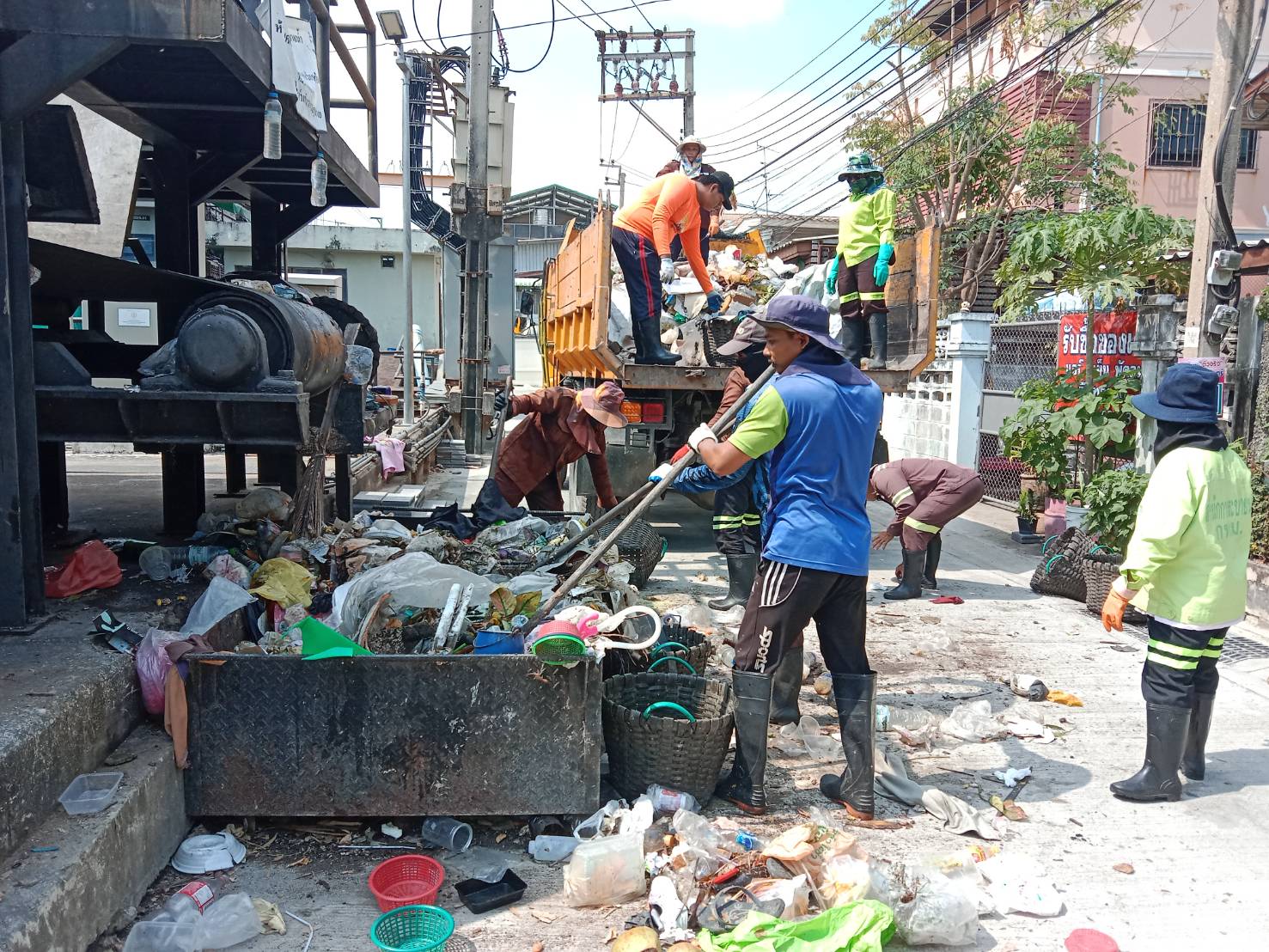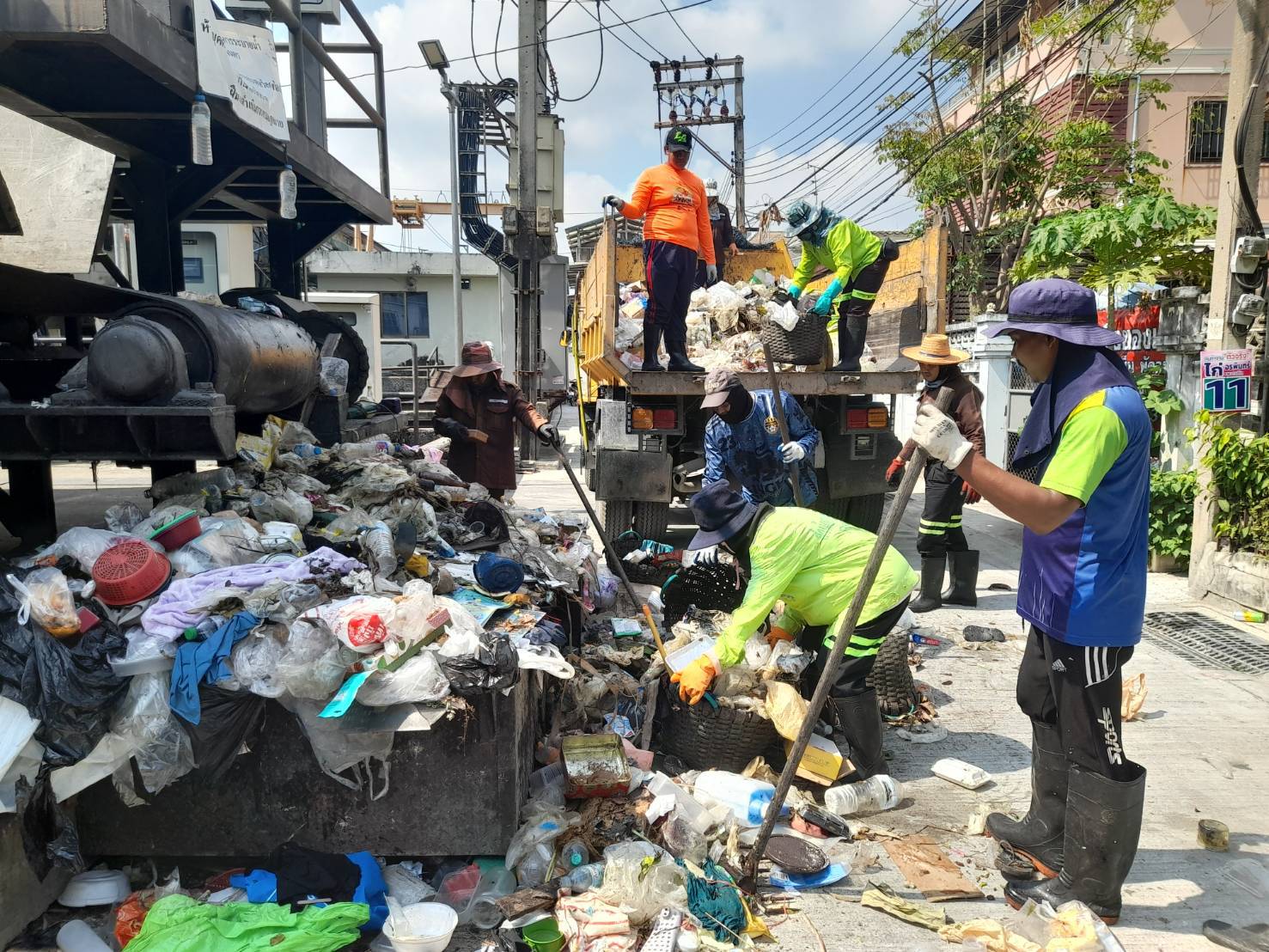 เจ้าหน้าที่ เก็บขยะและวัชพืช ช่วงปตร.โบสถ์แม่พระฟาติมา พื้นที่เขตดินแดง