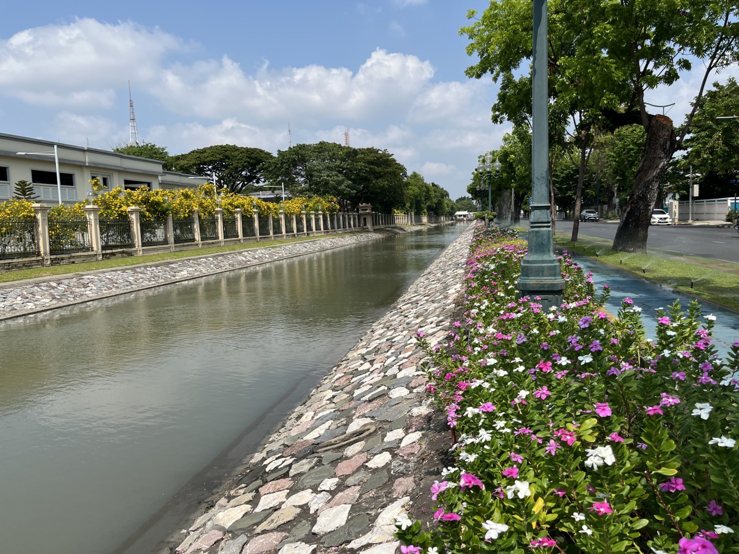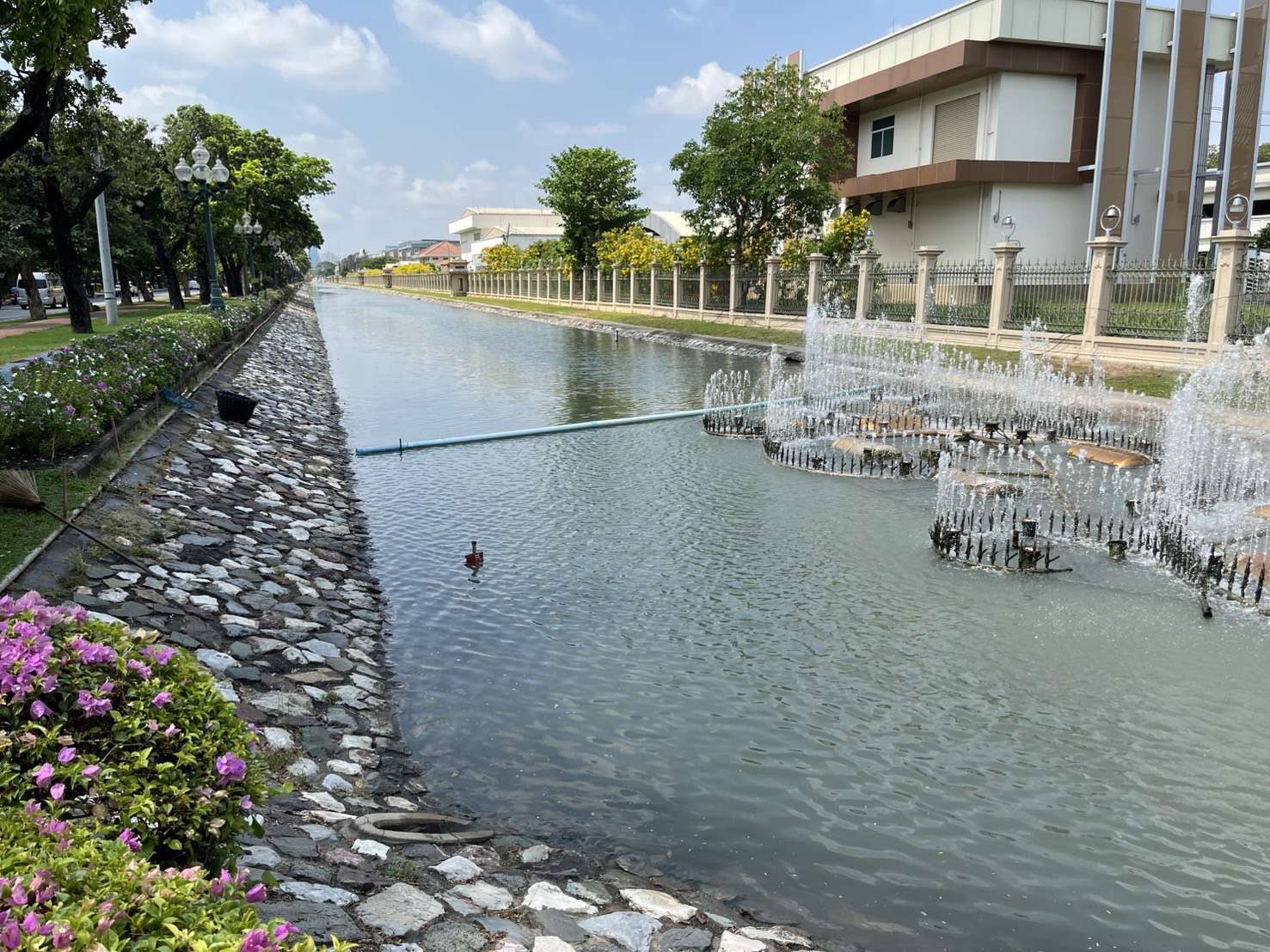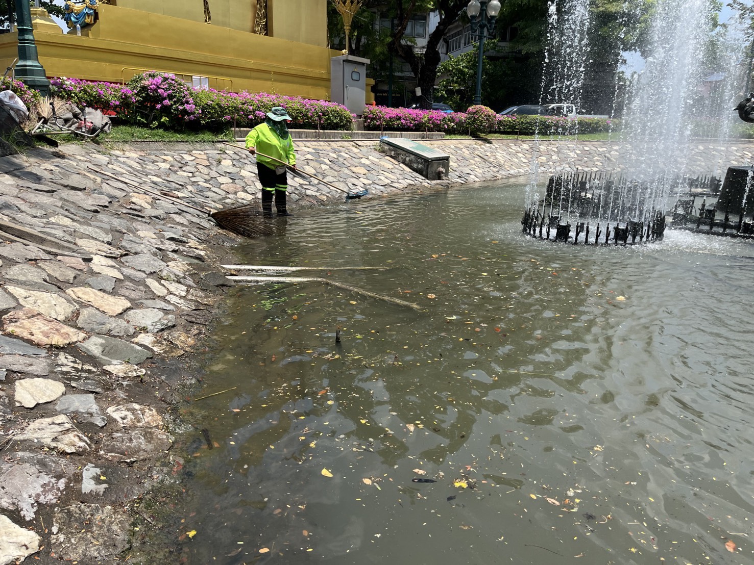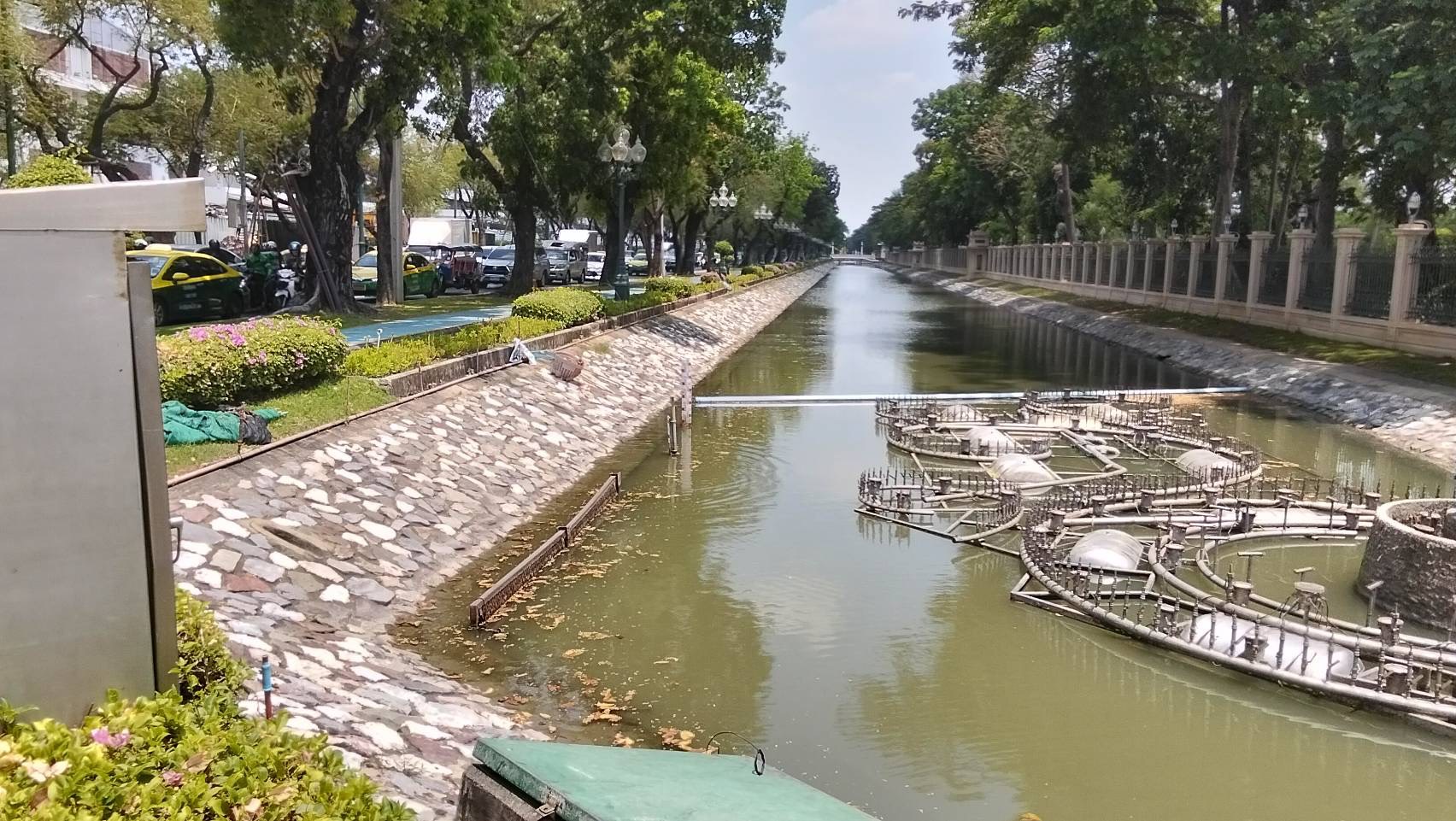 เจ้าหน้าที่ ดำเนินการตักใบไม้กำจัดวัชพืชคูน้ำรอบพระราชวังสวนจิตรลดา พื้นที่เขตดุสิต