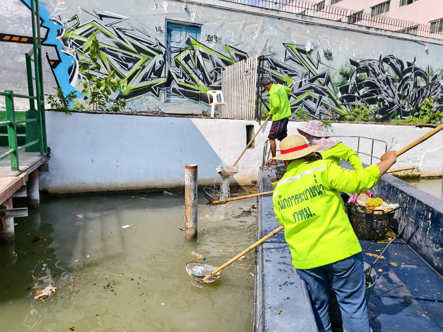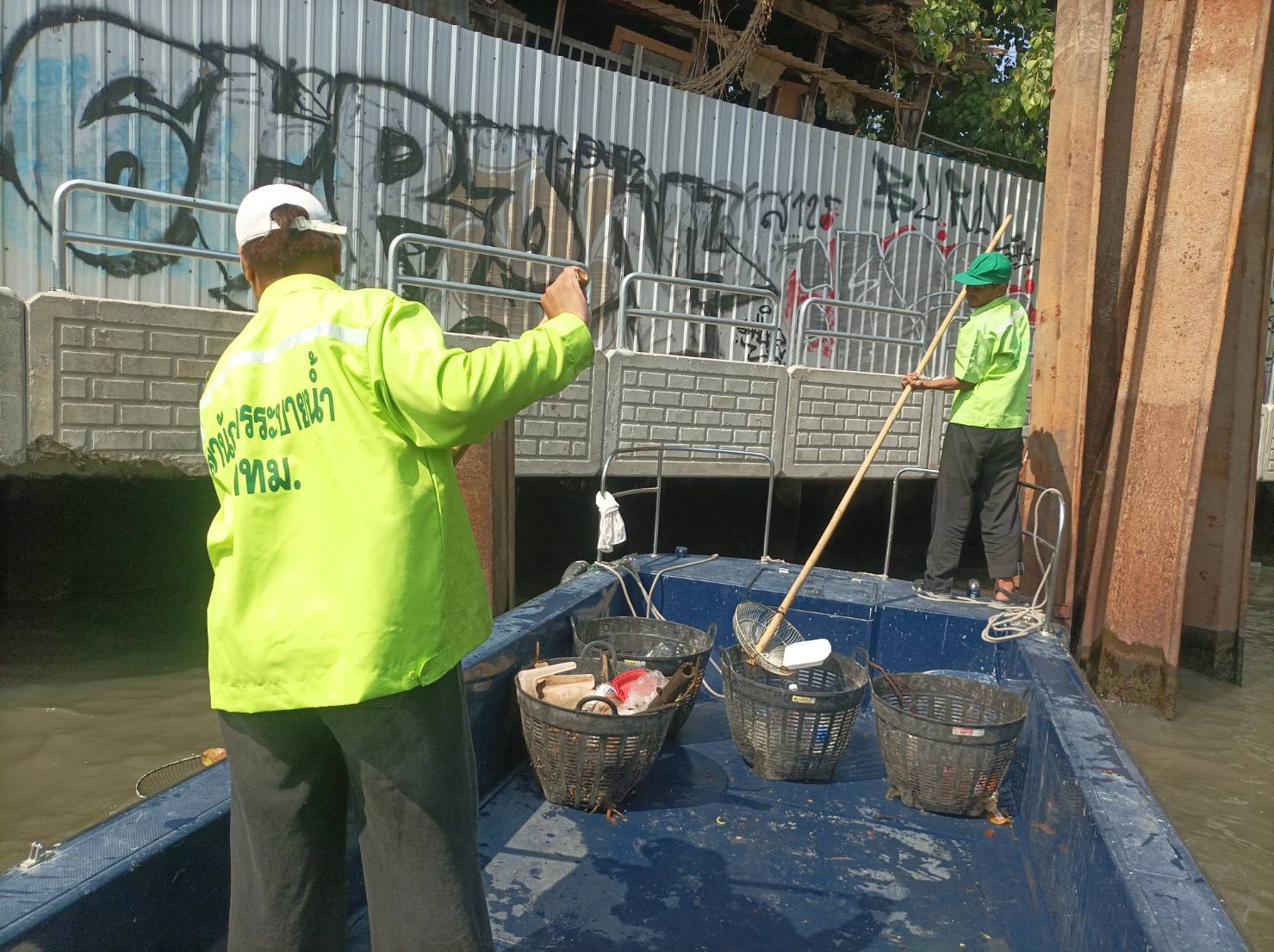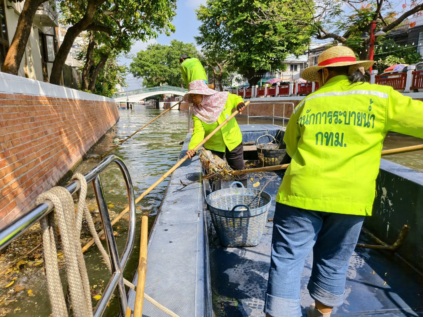 เจ้าหน้าที่ ตักขยะและวัชพืชคลองแสนแสบ ช่วงสี่แยกมหานาคถึงสะพานวิทยุ