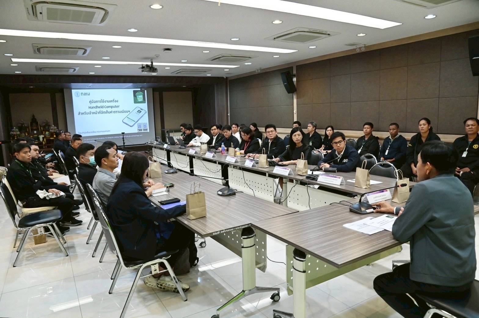 (3 เม.ย. 69) เวลา 09.00 น. นายจักกพันธุ์ ผิวงาม รองผู้ว่าราชการกรุงเทพมหานคร เป็นประธานการประชุมเพิ่มพูนความรู้การใช้งานเครื่อง Handheld Computer แบบพกพา แก่เจ้าหน้าที่จัดเก็บค่าธรรมเนียมขยะ ของสำนักงานเขตในกลุ่มเขตกรุงเทพกลาง ประกอบด้วย เขตพระนคร เขตป้อมปราบศัตรูพ่าย เขตสัมพันธวงศ์ เขตพญาไท เขตห้วยขวาง เขตดุสิต เขตดินแดง เขตราชเทวี และเขตวังทองหลาง เพื่อเพิ่มประสิทธิภาพการปฏิบัติงานการจัดเก็บค่าธรรมเนียมขยะของเจ้าหน้าที่ Handheld เพื่อให้สามารถสื่อสารสร้างความเข้าใจและอำนวยความสะดวกในการจ่ายค่าธรรมเนียมขยะให้แก่ประชาชนในพื้นที่ให้เป็นไปอย่างถูกต้อง รวมถึงเพื่อให้เจ้าหน้าที่สามารถให้คำแนะนำการคัดแยกขยะตามแนวทางไม่เทรวมให้กับประชาชนด้วย โดยมีประเด็นสำคัญต่าง ๆ อาทิ การเตรียมความพร้อมของเครื่อง Handheld Computer แบบพกพา การทดสอบการเชื่อมต่อบลูทูธ การทดสอบ GPS การทดสอบความเร็วอินเตอร์เน็ต และการแก้ไขข้อบกพร่องเบื้องต้นกรณีเครื่อง Handheld Computer ไม่รองรับการให้บริการ ฯลฯ