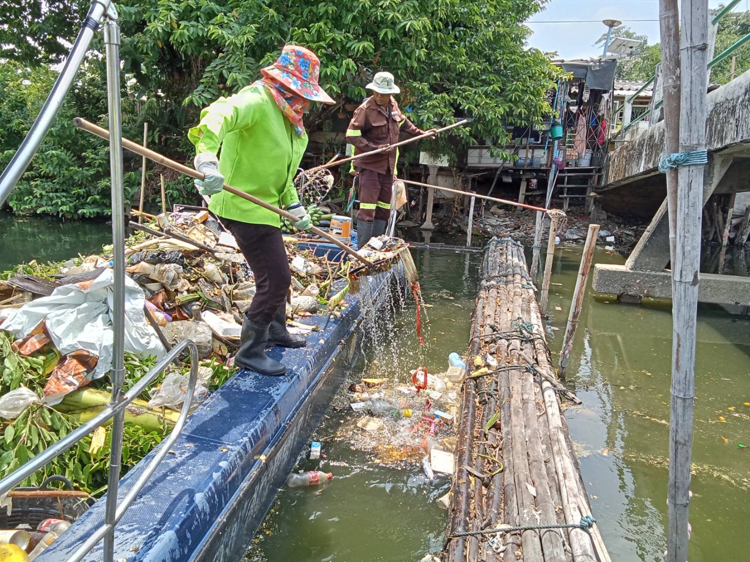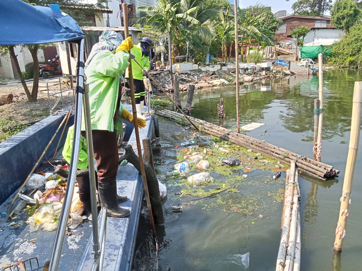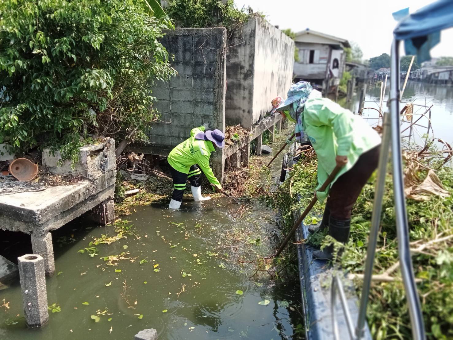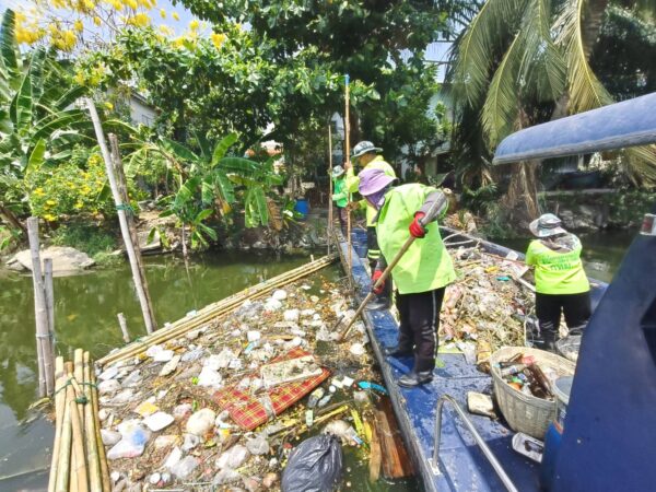 เจ้าหน้าที่ เก็บขยะและวัชพืช คลองสองพื้นที่เขตบางเขน เขตหลักสี่เขตดอนเมือง