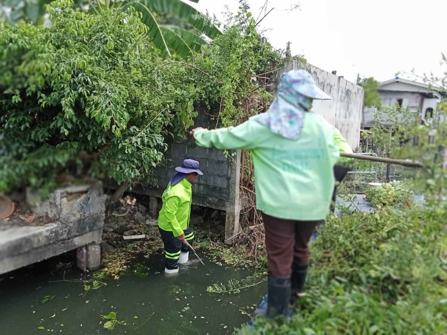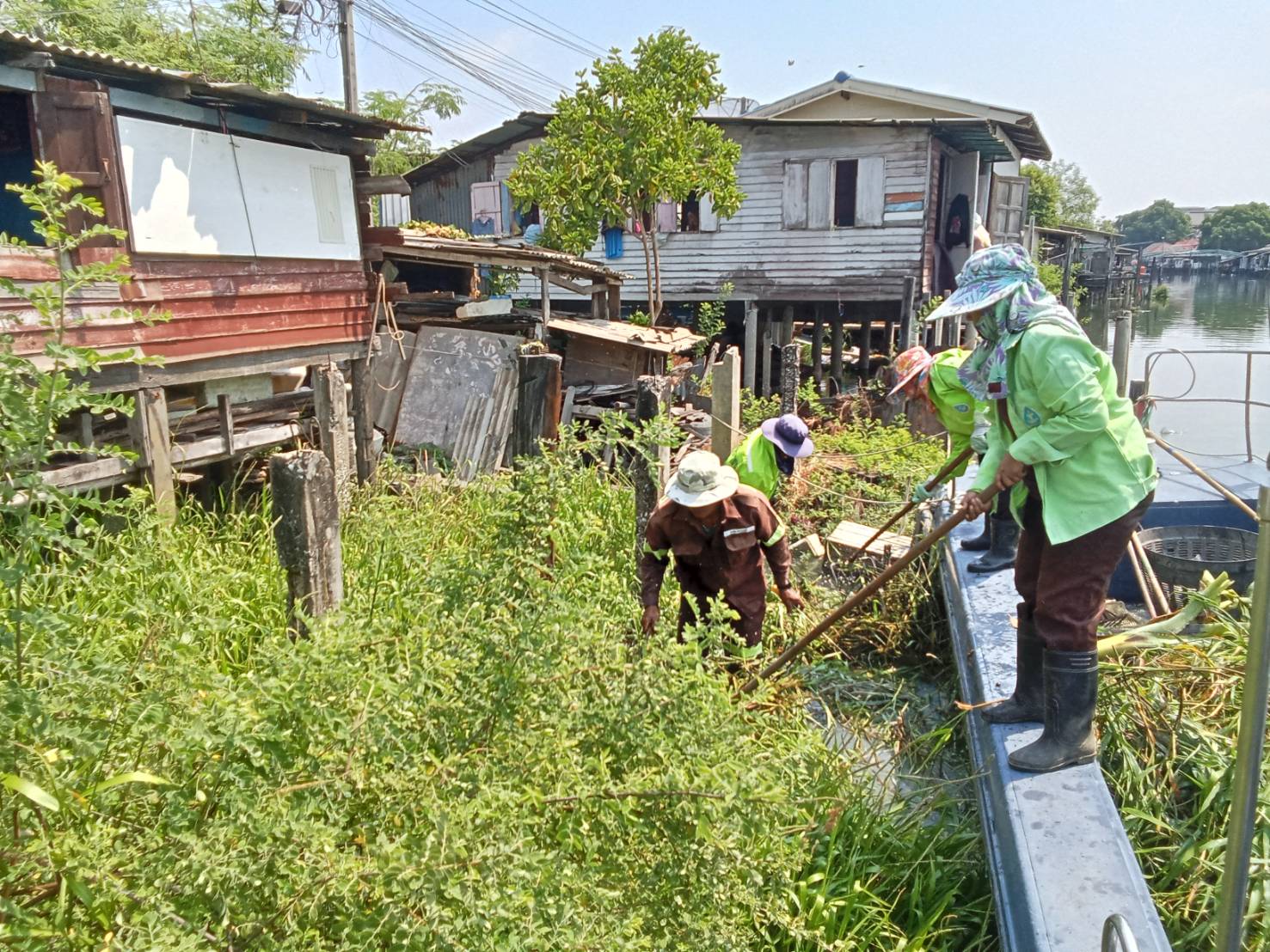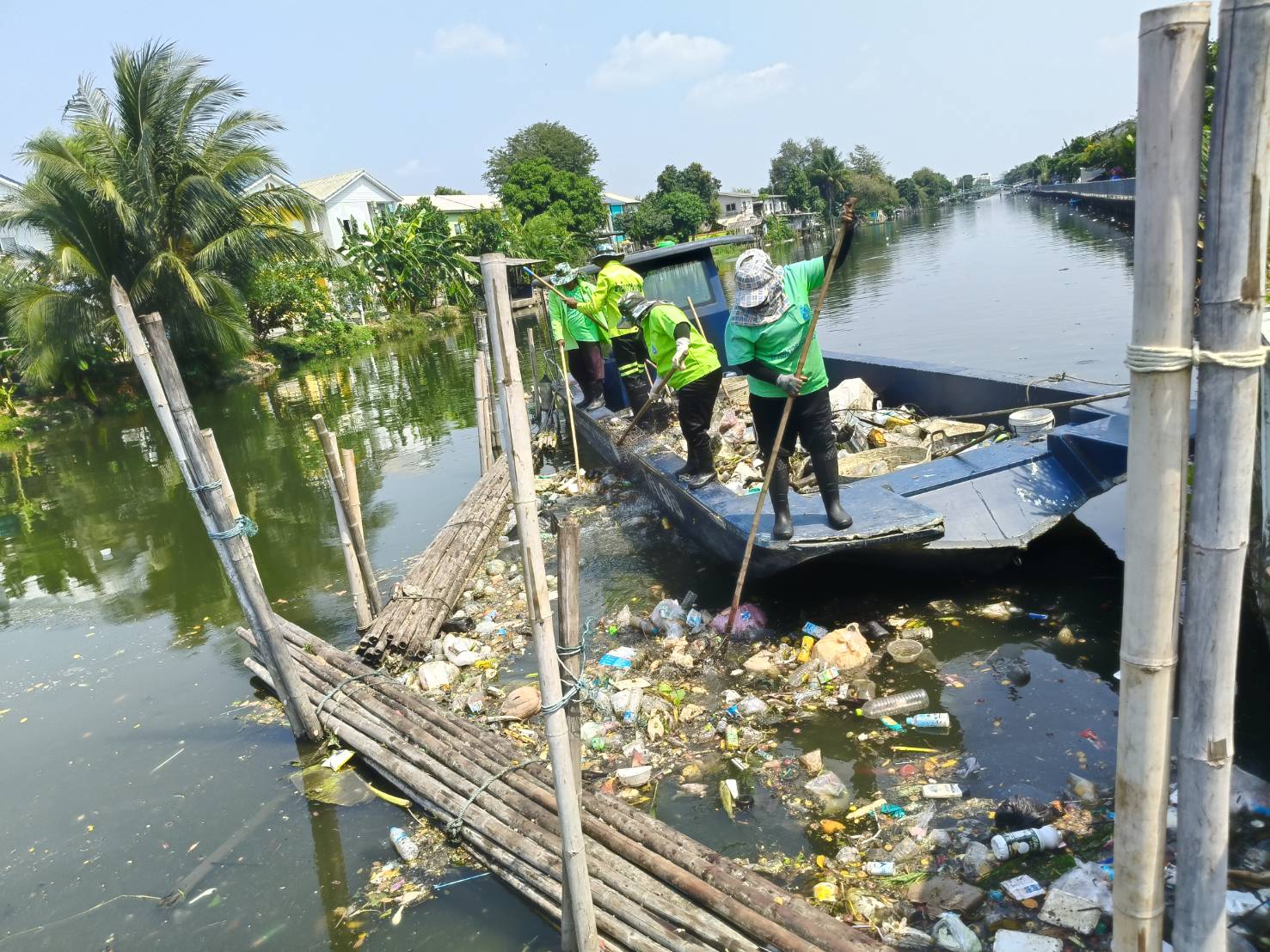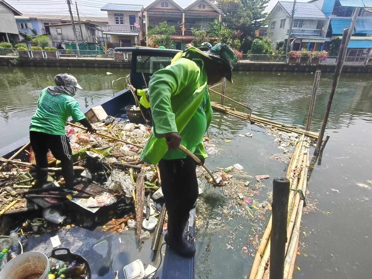 เจ้าหน้าที่ เก็บขยะและวัชพืช คลองสองพื้นที่เขตบางเขน เขตหลักสี่เขตดอนเมือง
