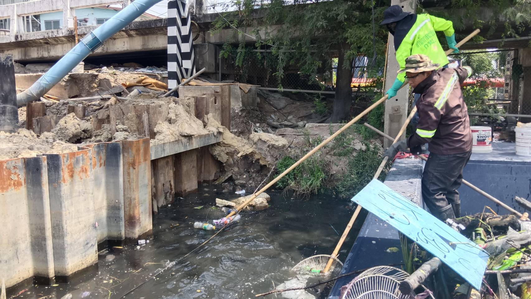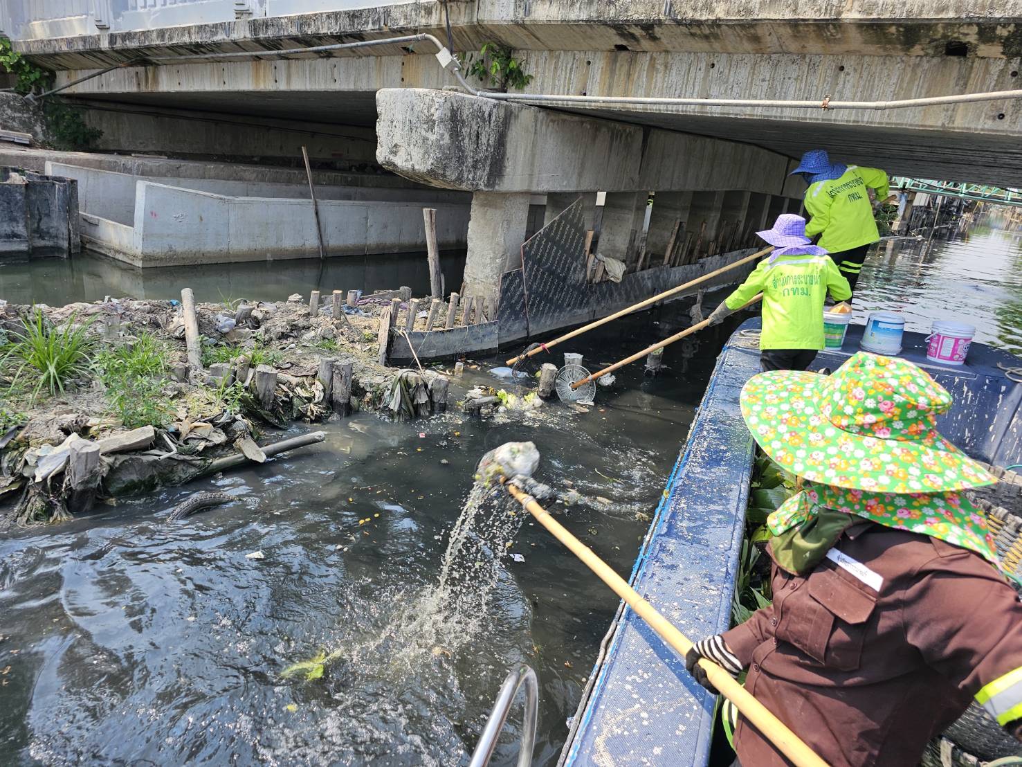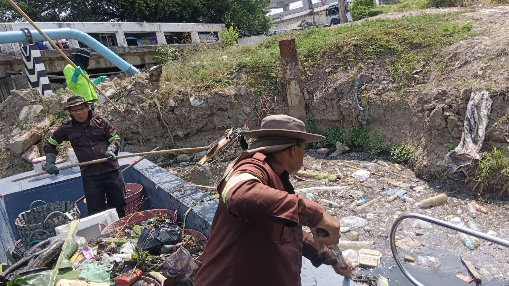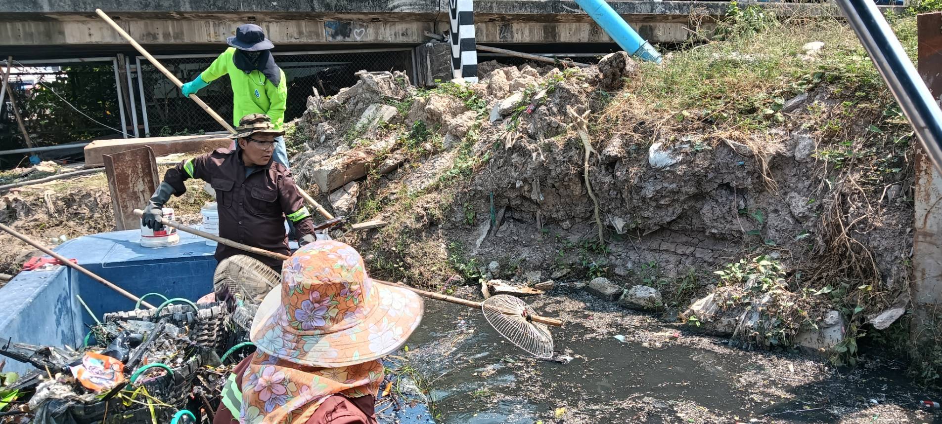 เจ้าหน้าที่ เก็บขยะและวัชพืชคลองเปรมประชากร พื้นที่เขตดอนเมืองและเขตหลักสี่